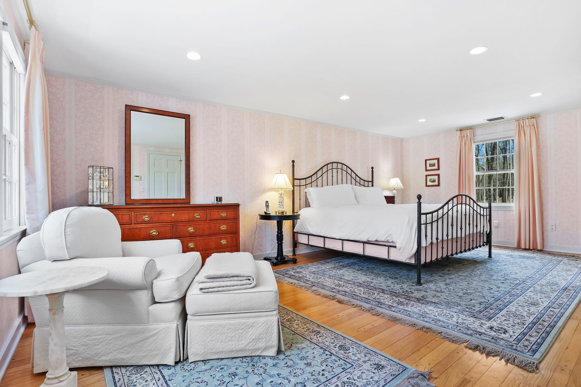 Primary Retreat: Primary bedroom suite with hydro tub, triple closets, its own generous full bath and versatile sitting room - ideal for a nursery or second home office. Two additional bedrooms upstairs share a beautiful Lavorgna-renovated full bath complete with stunning Red Birch cabinetry.
