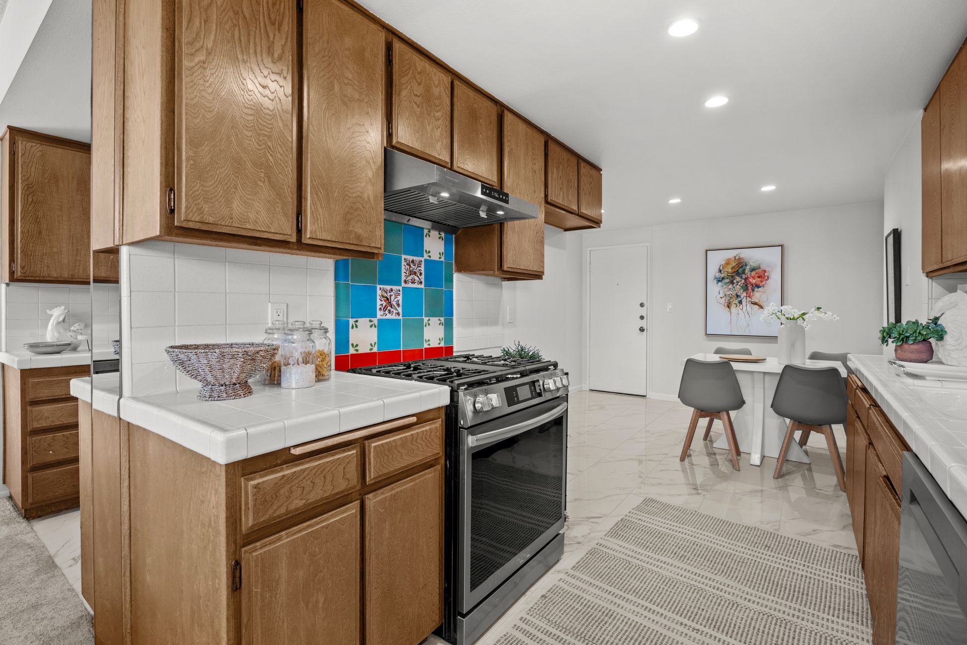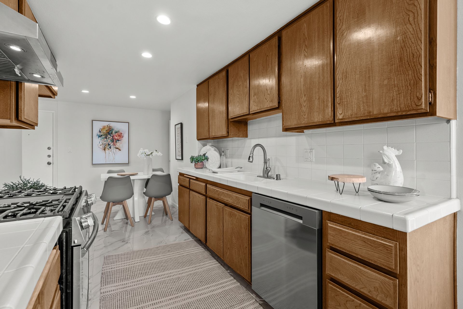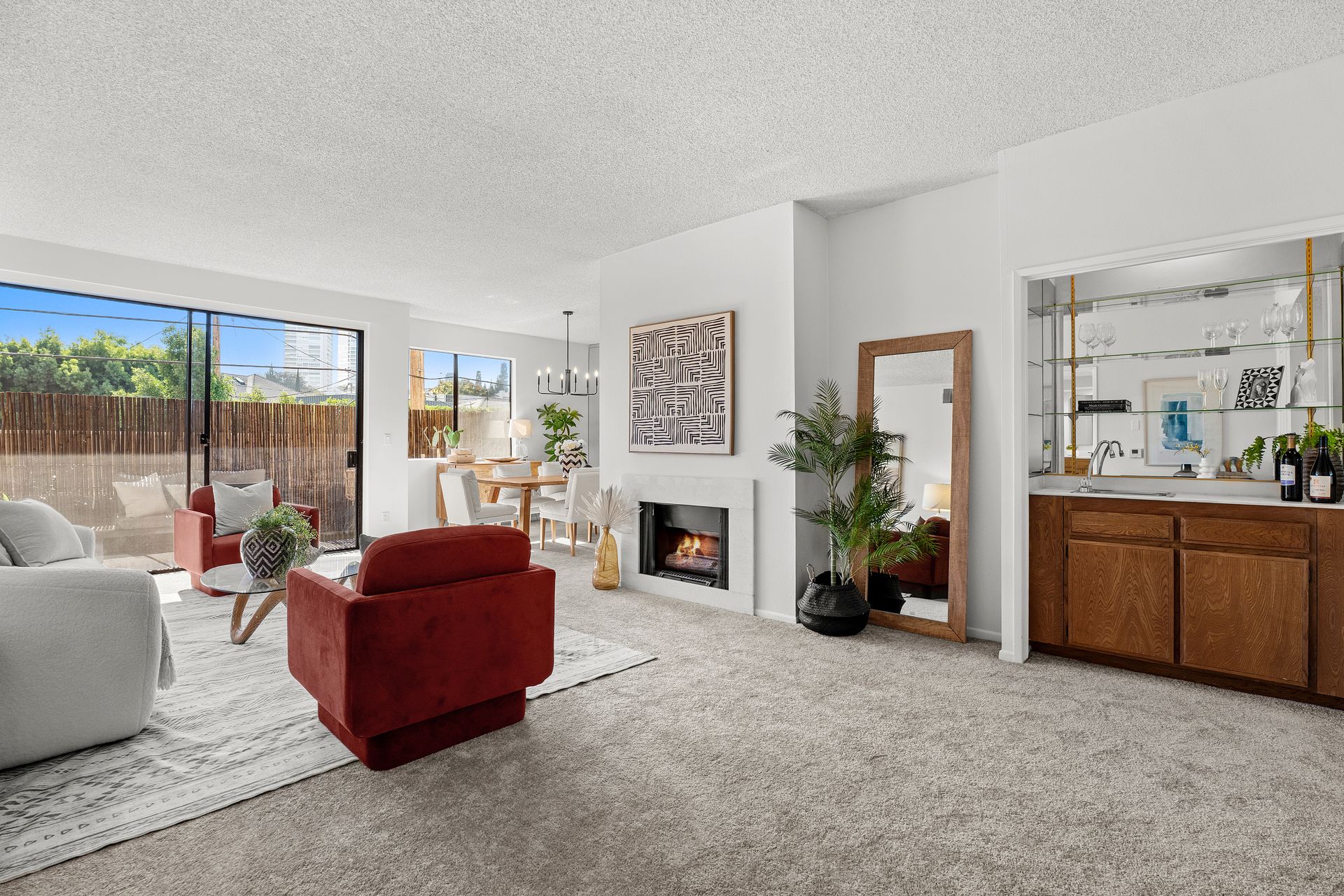 Spacious and bright condo in a prime Beverly Hills adjacent location with an incredibly walkable setting. This 2 bedroom, 2 bath home offers 1,520 square feet of comfortable living space and is located in Unit 106, one floor above ground level for added privacy and security. The oversized balcony is lined with custom cut bamboo, creating a peaceful outdoor retreat ideal for relaxing or entertaining. Inside, you’ll find new flooring throughout, a fireplace, wet bar, and in unit washer and dryer. Recent upgrades include a new dishwasher, gas range, under cabinet range hood, light fixtures, faucets, toilet, and vanities. The smart layout places bedrooms on opposite sides for enhanced privacy, and the second bedroom has its own private entrance. Community amenities include a pool, spa, fitness room, and sauna, with controlled access and two parking spaces in the gated garage on the ground floor, offering direct, step free entry. Central heating and AC provide year round comfort. The location is unbeatable, just moments from Century City, Roxbury Park, Rancho Park, Hillcrest Golf Course, and world famous Beverly Drive. This one truly checks all the boxes