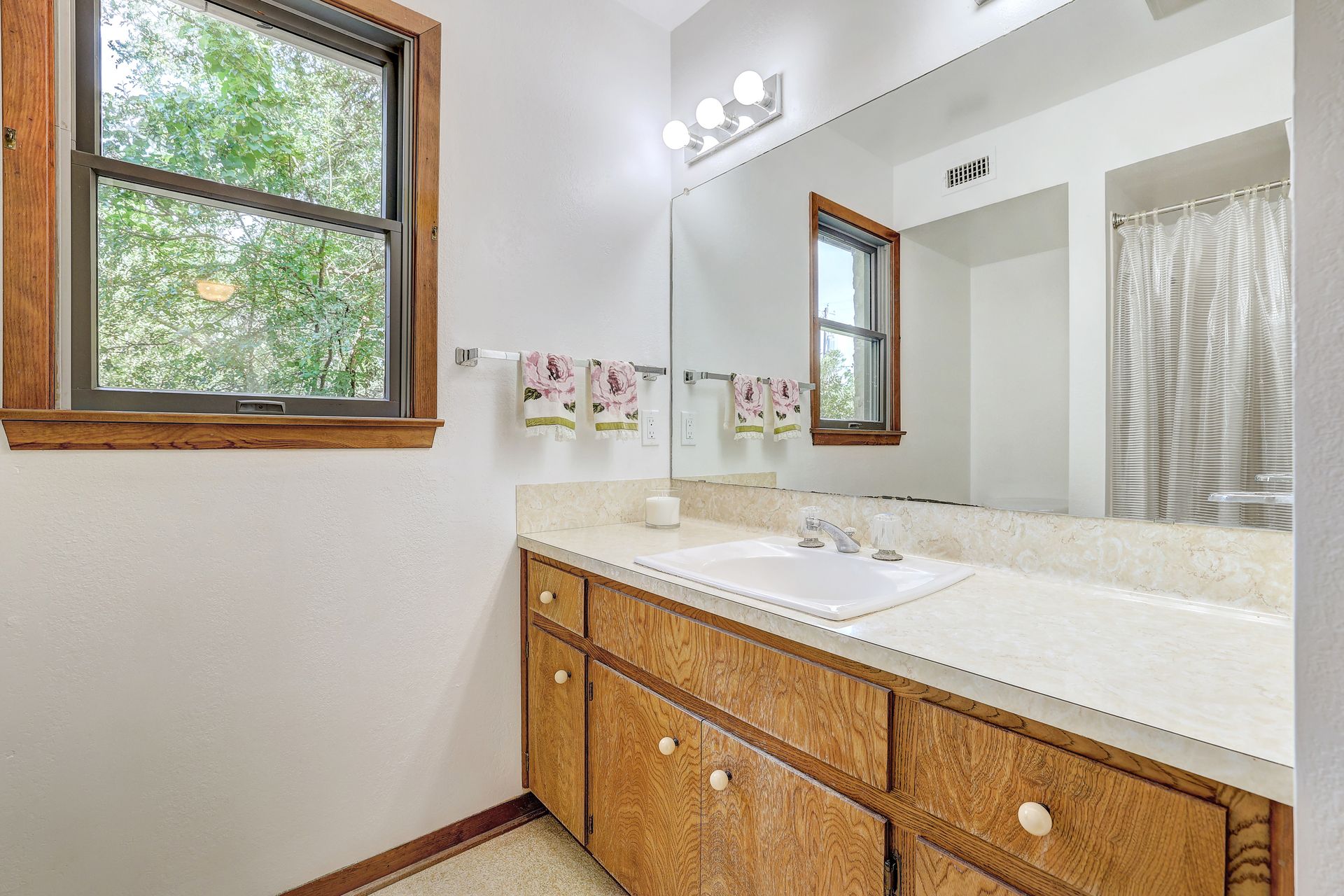 The expansive back deck overlooks a tranquil pond and mature trees, creating a picture-perfect setting for relaxing or entertaining. Whether you’re enjoying the view, exploring the acreage, or simply savoring the quiet, this home offers a rare blend of style, serenity, and location.