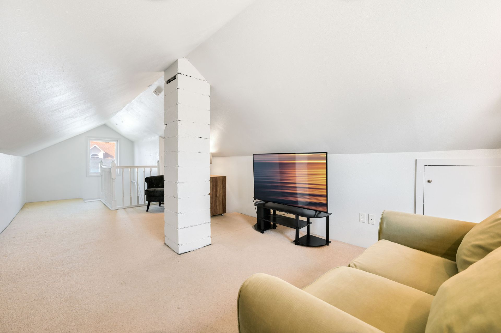 A functional mudroom/laundry area connects the kitchen to the backyard, making hosting gatherings or managing daily life a breeze. Down the hall are two well-sized bedrooms and an elevated, remodeled bathroom featuring abundant built-in storage and closet space. Upstairs, the expansive, finished, loft-style sitting area offers flexible use—ideal for a workout space, playroom, additional sleeping area, or creative retreat.