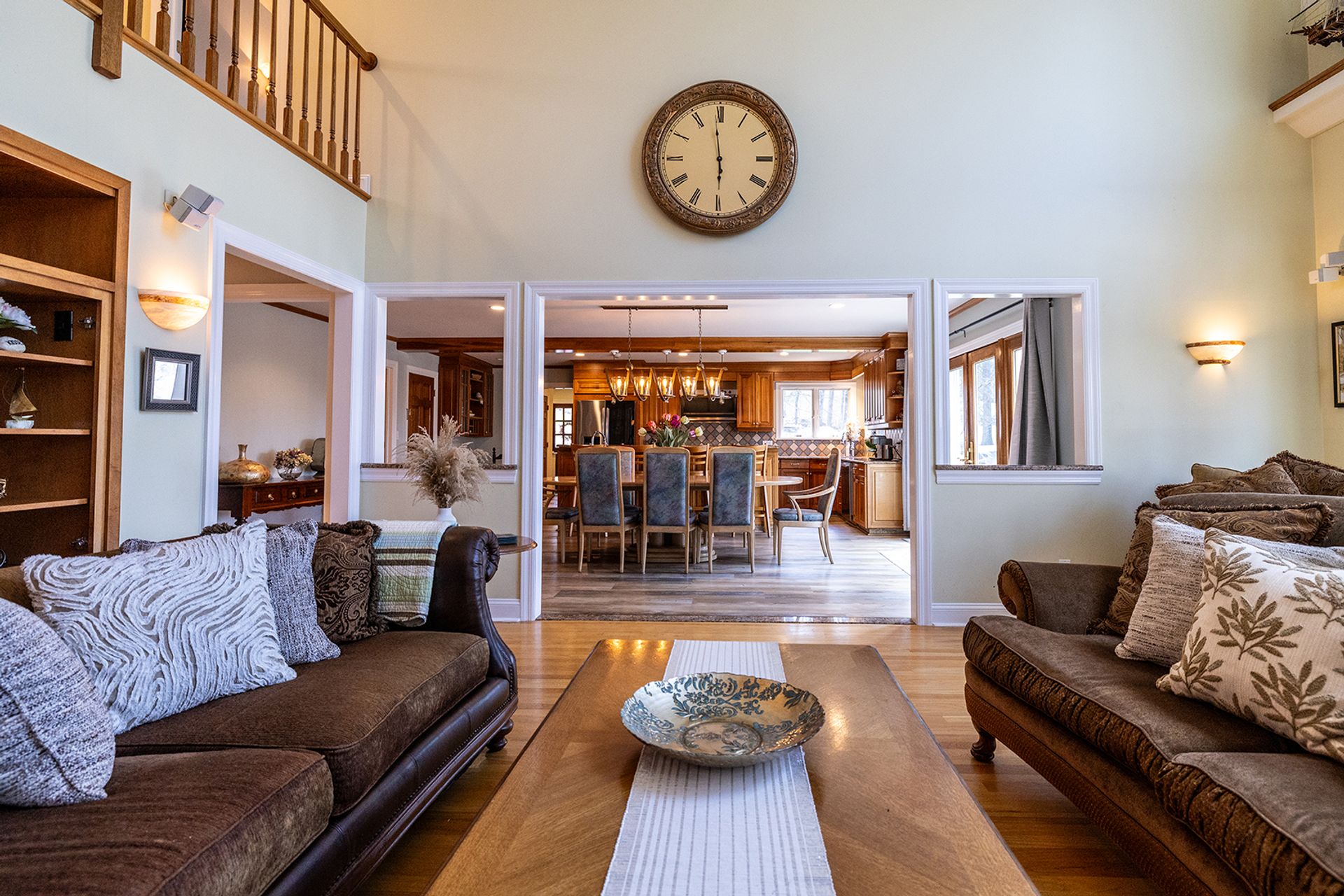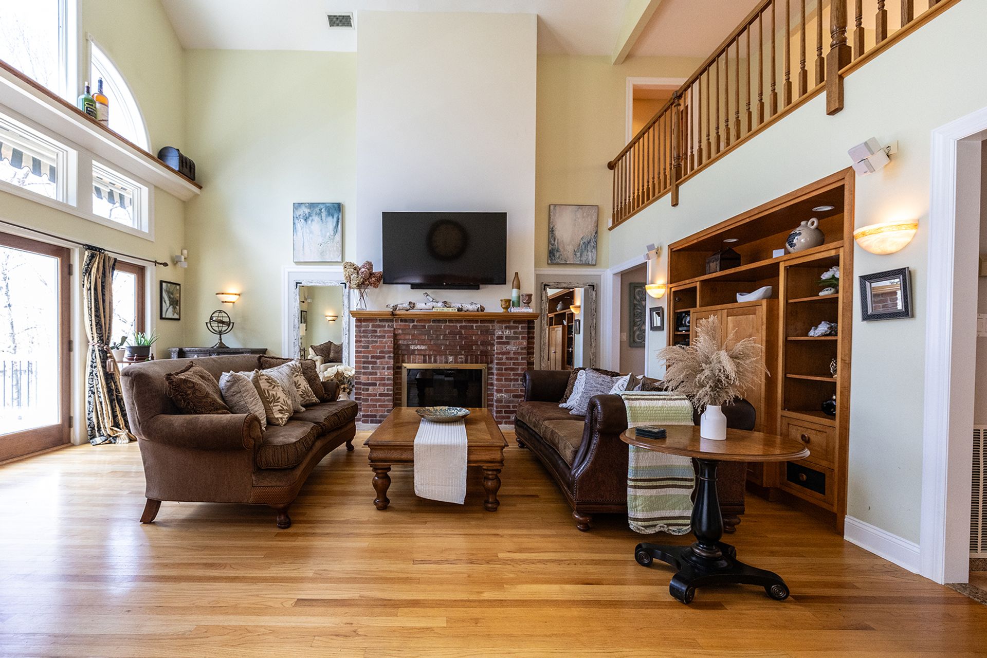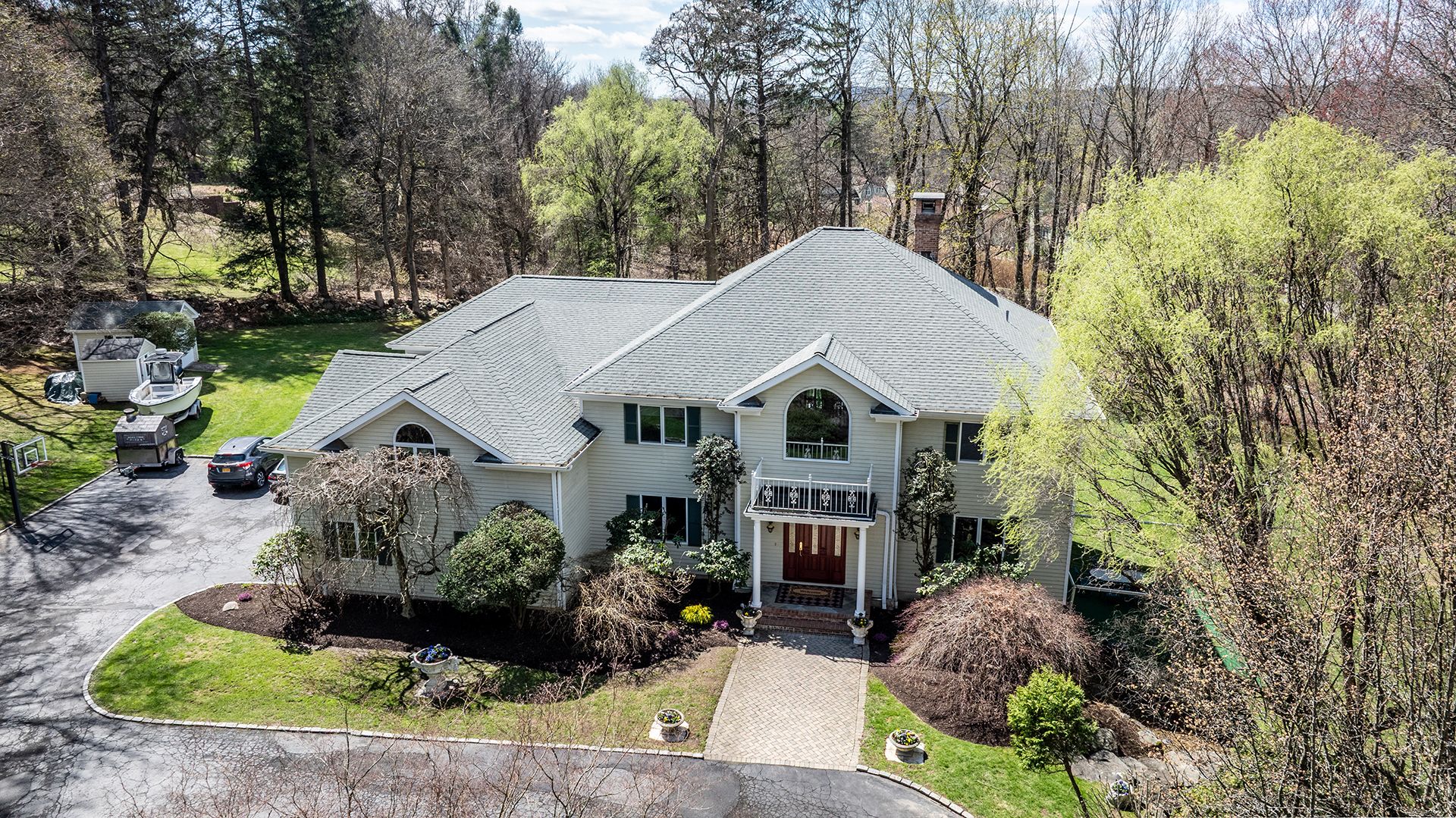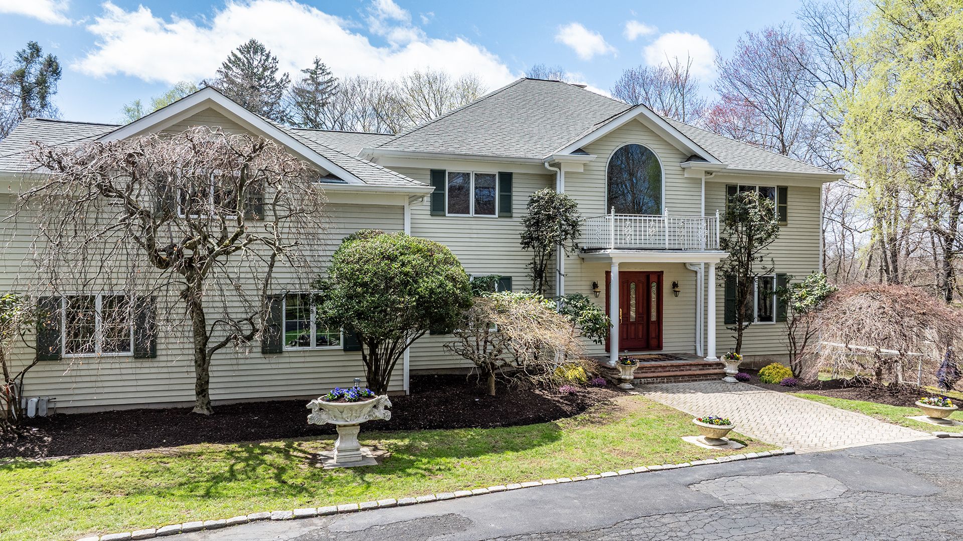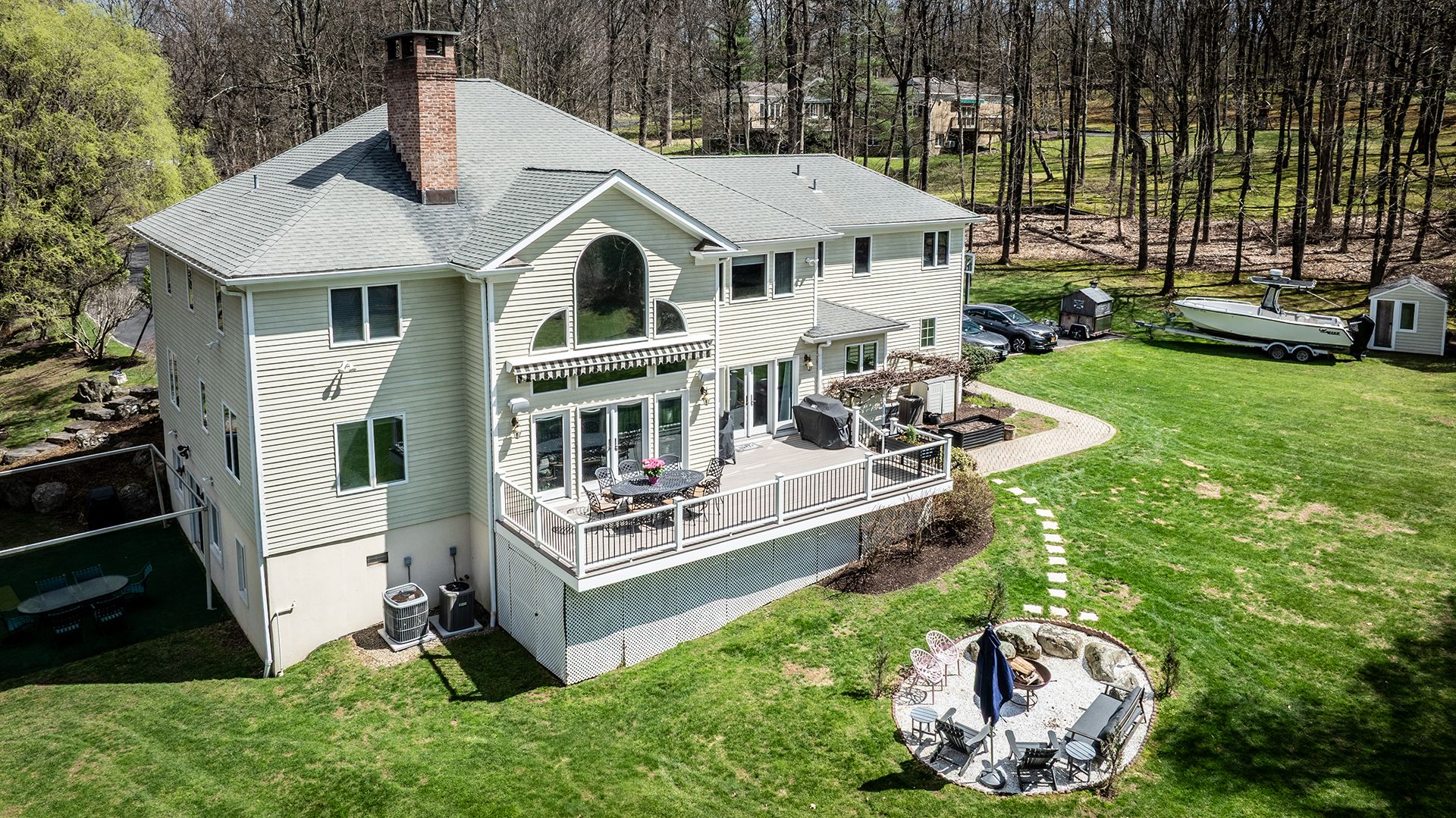 Additional highlights include two fireplaces, wired sound system, circular hot water system, updated well pump and filtration system, holding tank, 40-year roof, new deck, outdoor lighting, professionally landscaped grounds, and oversized attached two-car garage. Level backyard offers exceptional outdoor space. Minutes to town, shopping, dining, and train.
