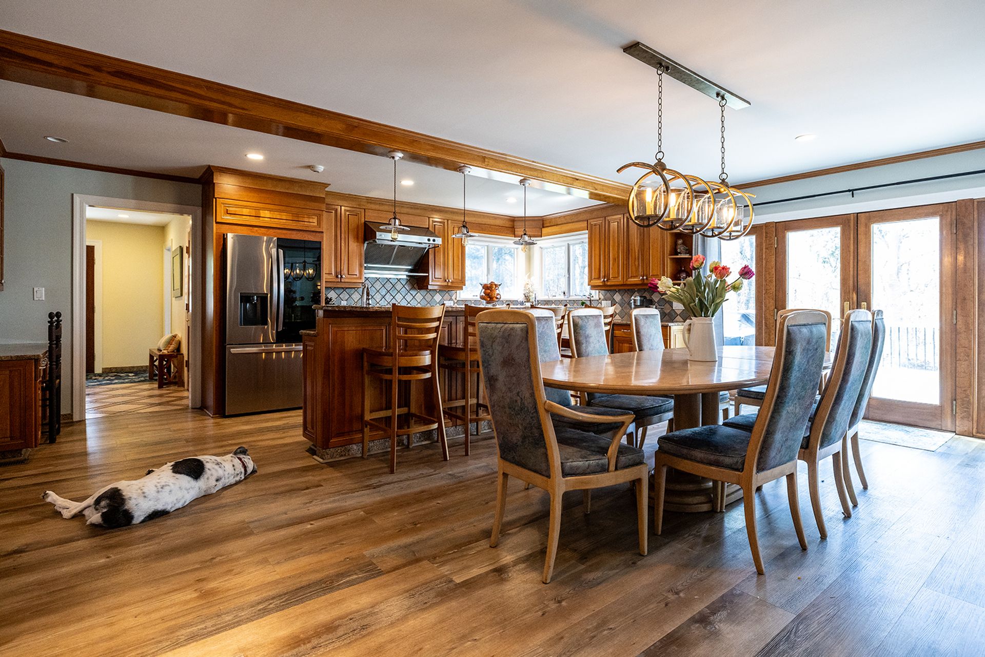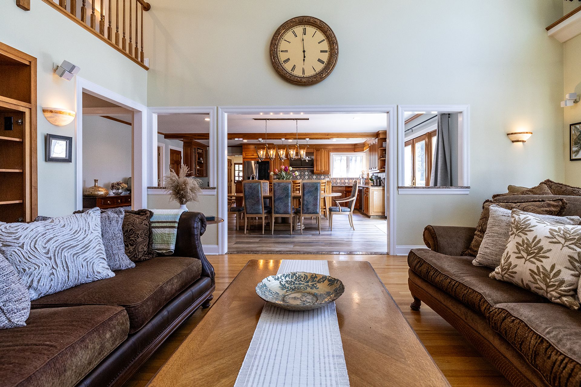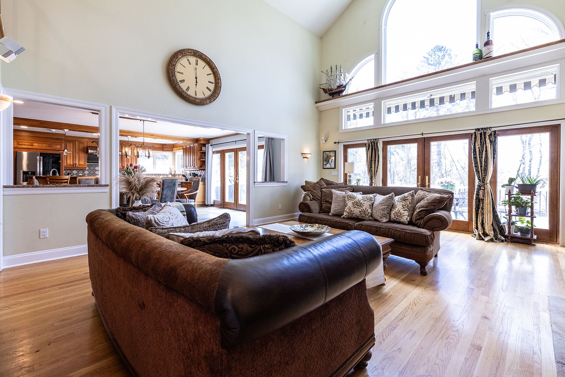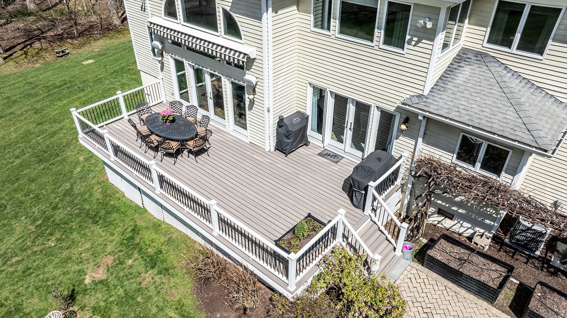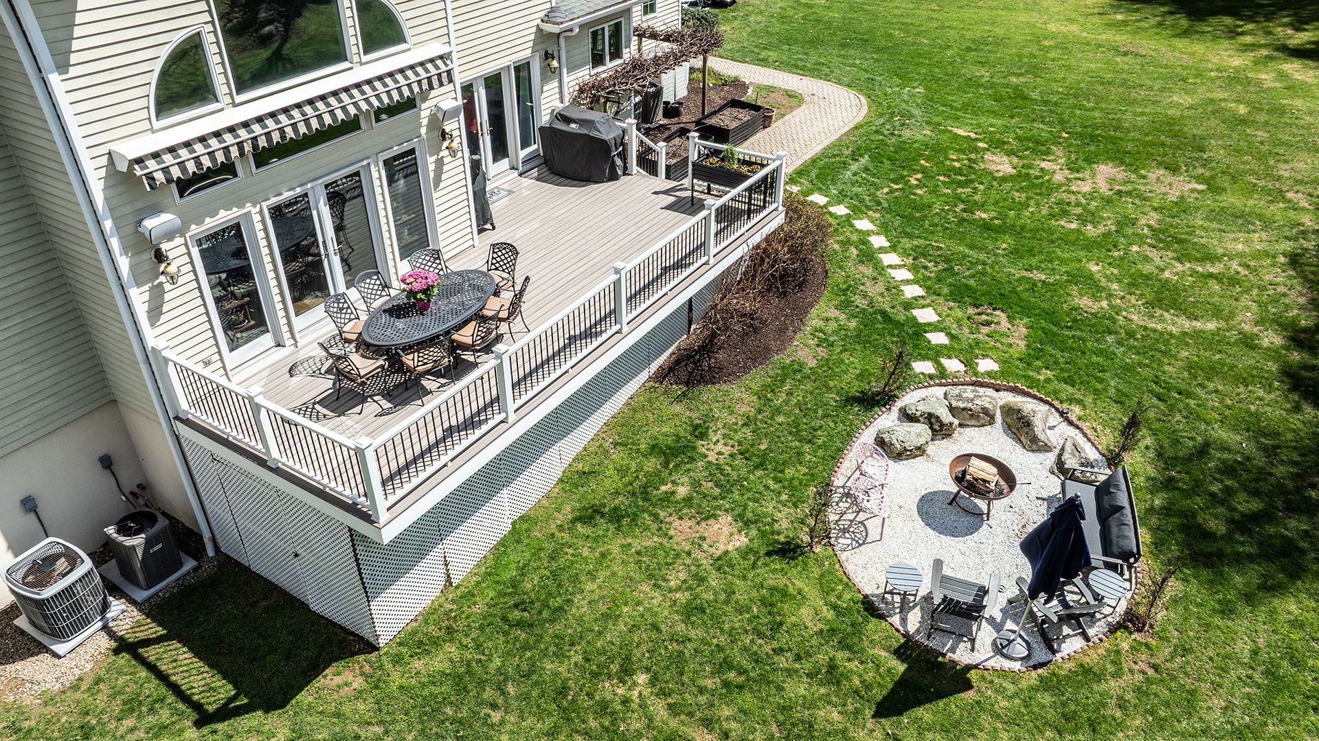 Additional highlights include two fireplaces, wired sound system, circular hot water system, updated well pump and filtration system, holding tank, 40-year roof, new deck, outdoor lighting, professionally landscaped grounds, and oversized attached two-car garage. Level backyard offers exceptional outdoor space. Minutes to town, shopping, dining, and train.