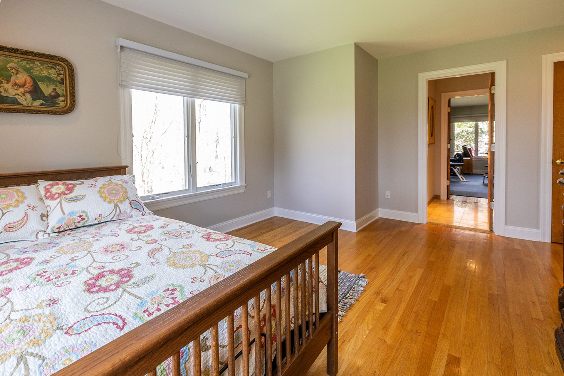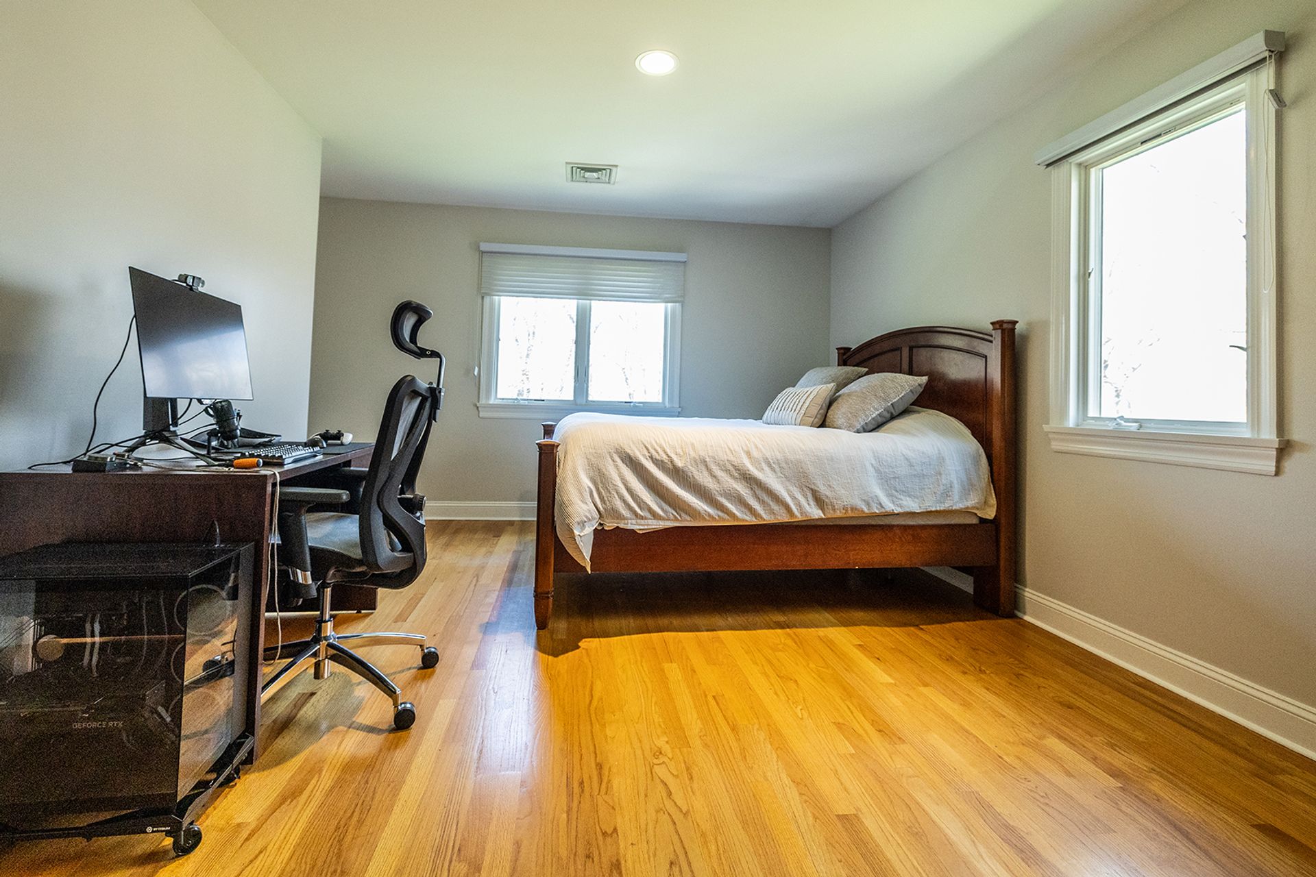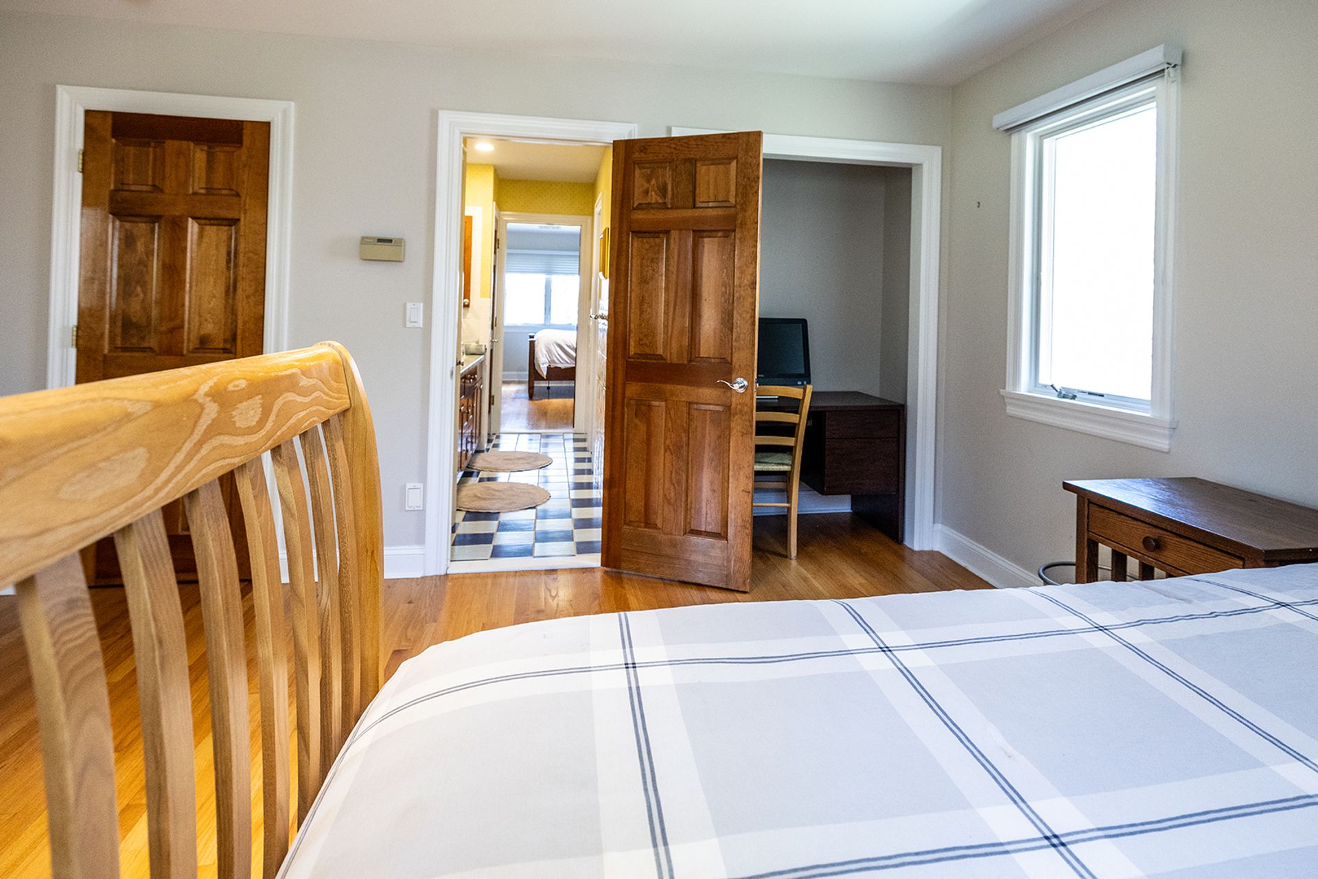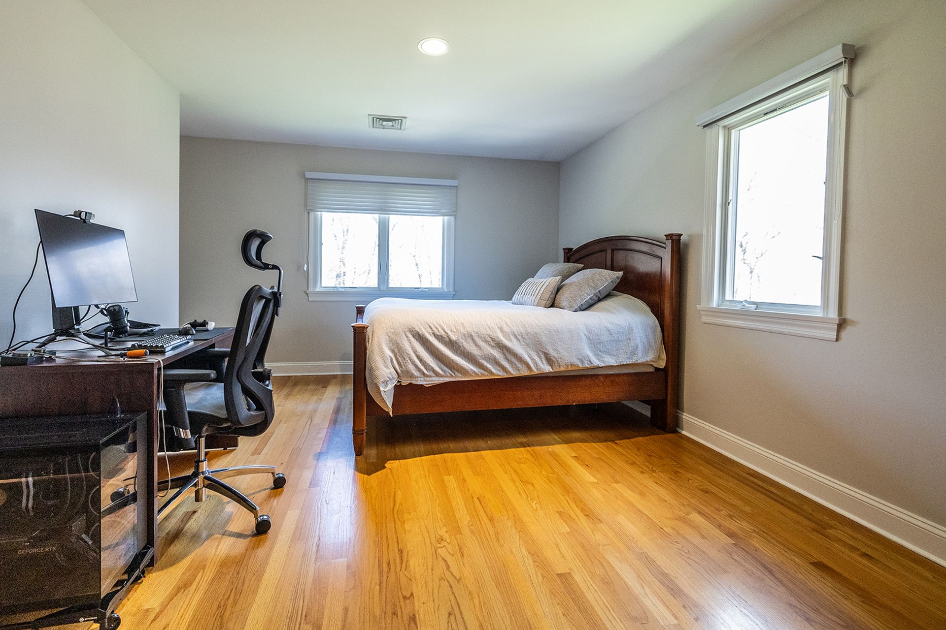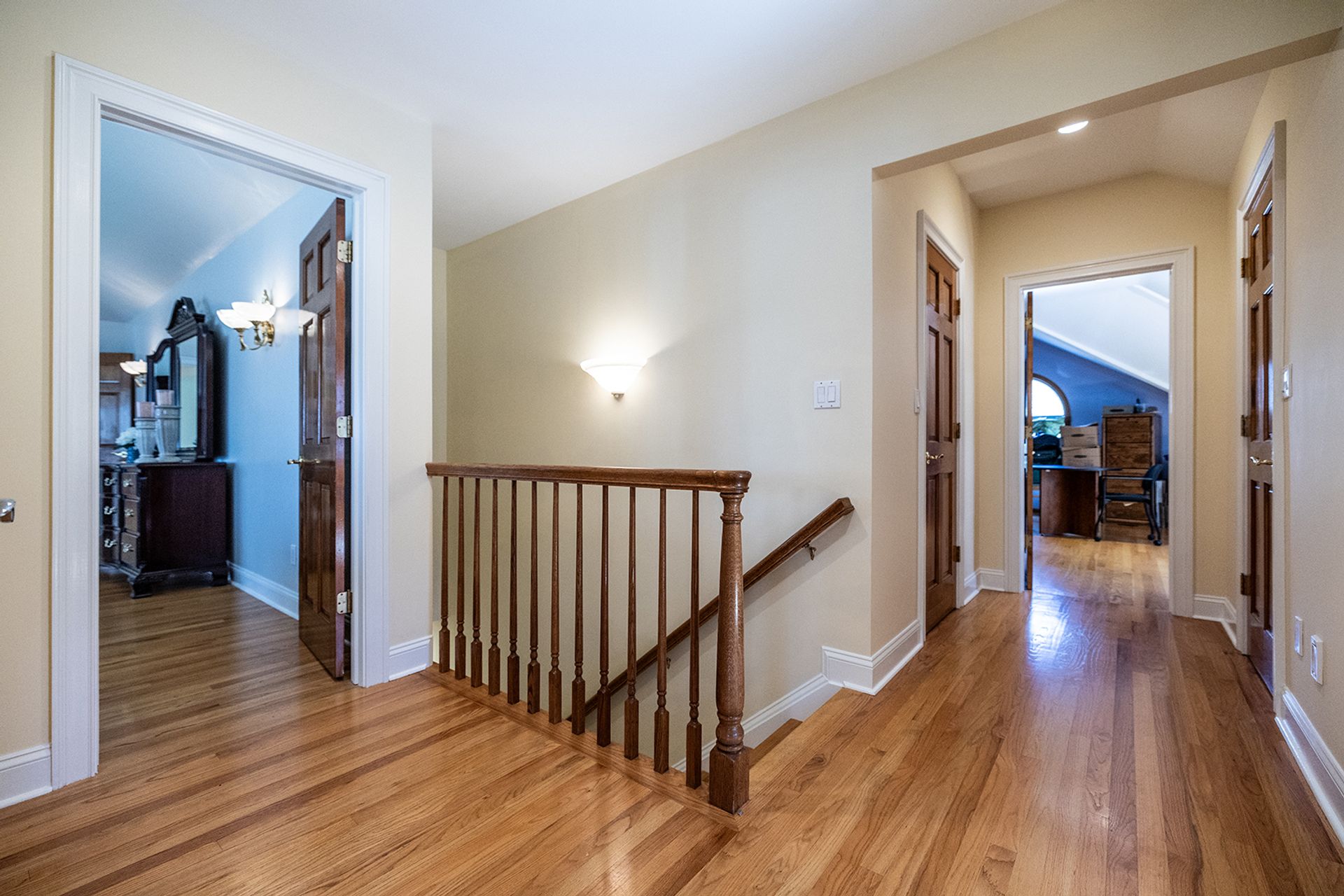 A first-floor bedroom, den or office with adjoining full bath provides ideal guest or work-from-home flexibility.
