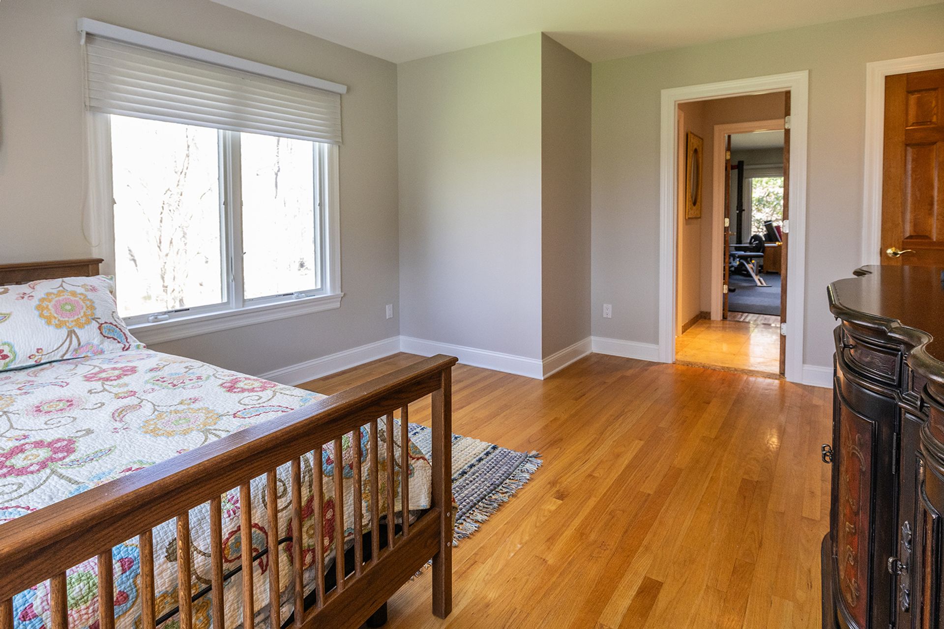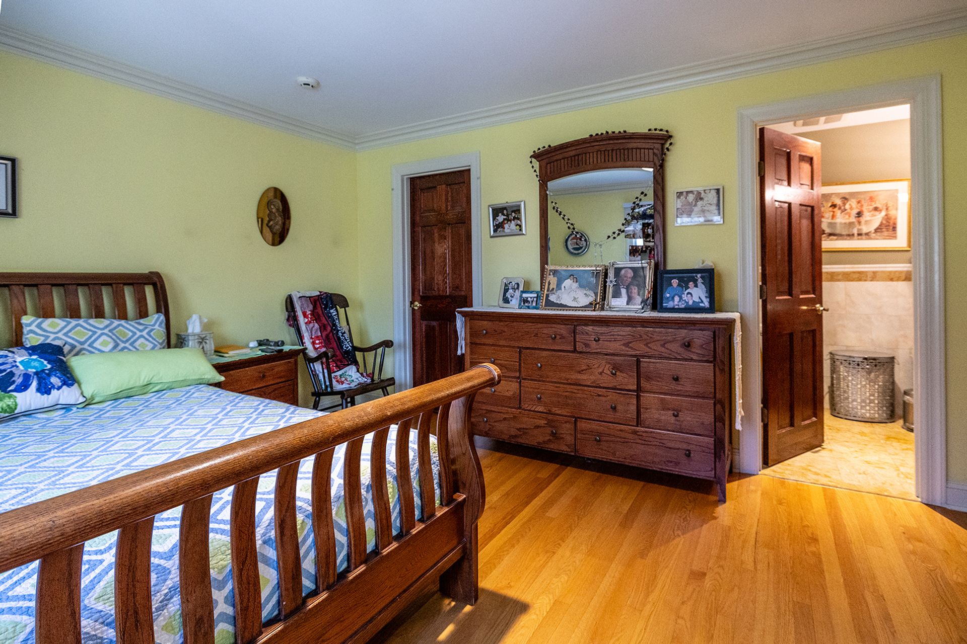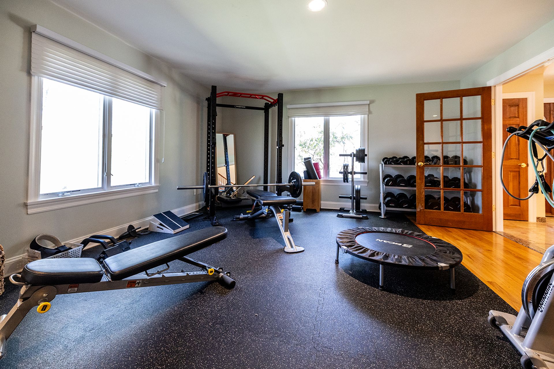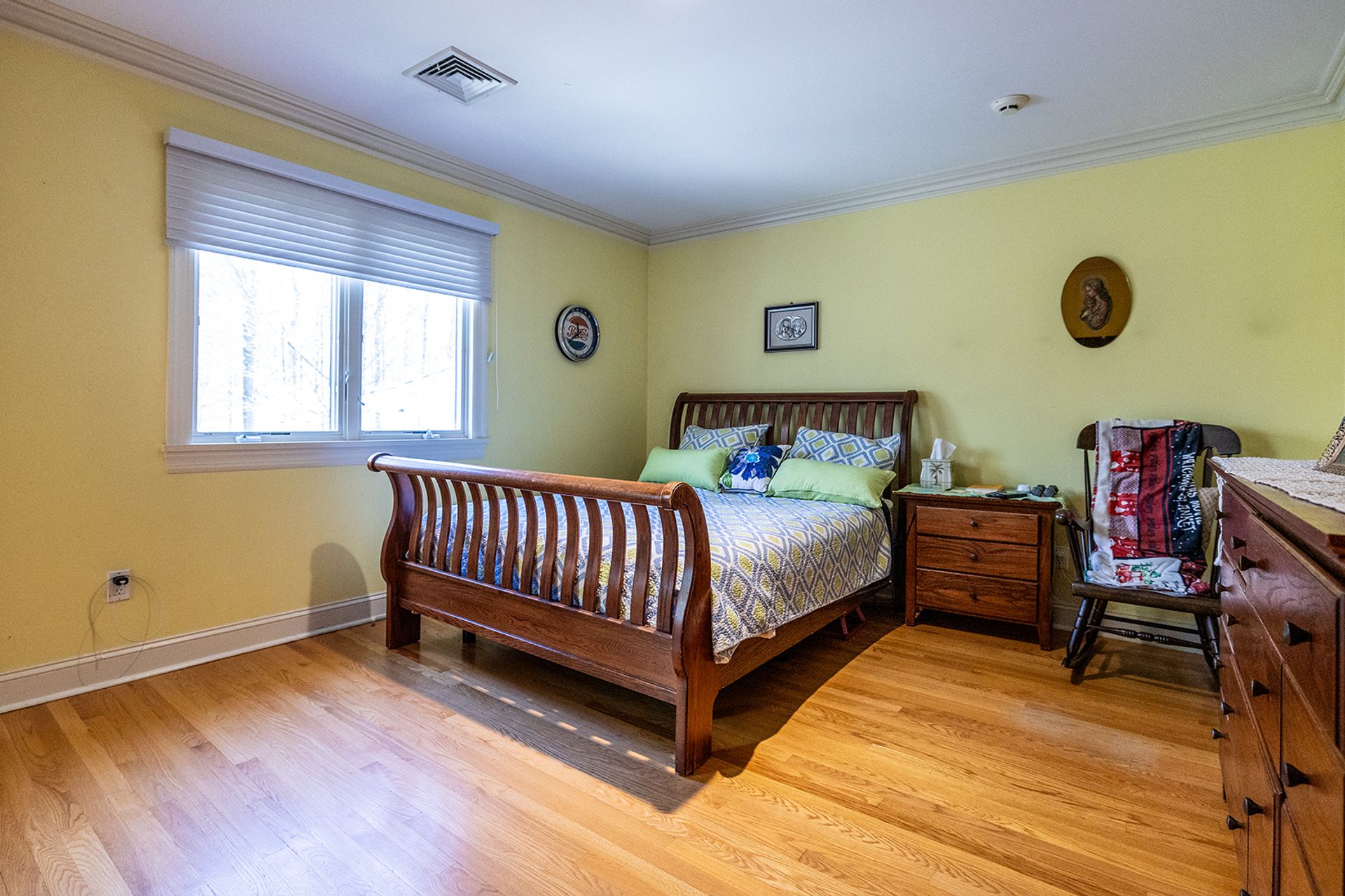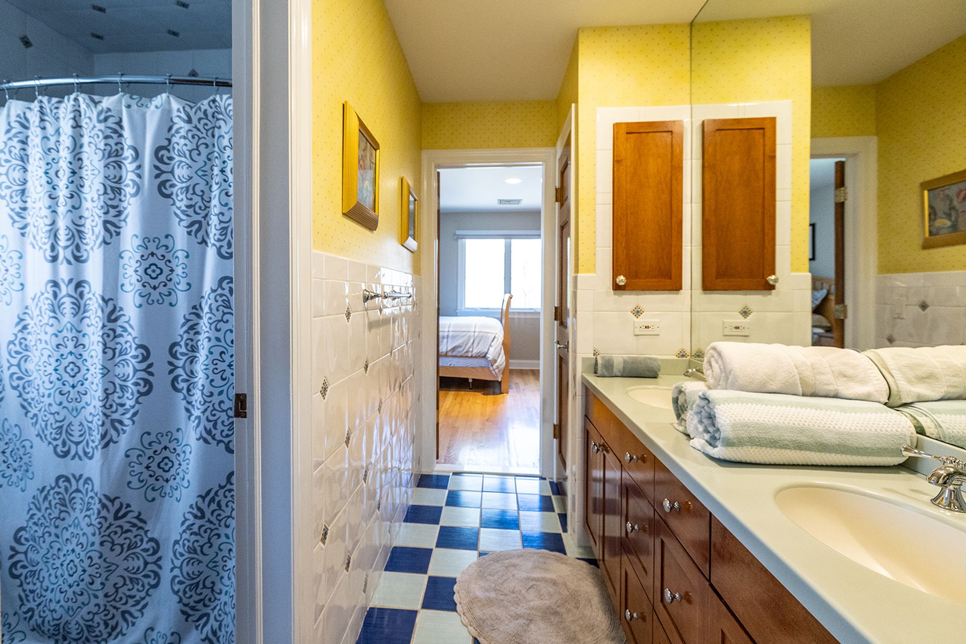 A first-floor bedroom, den or office with adjoining full bath provides ideal guest or work-from-home flexibility.
