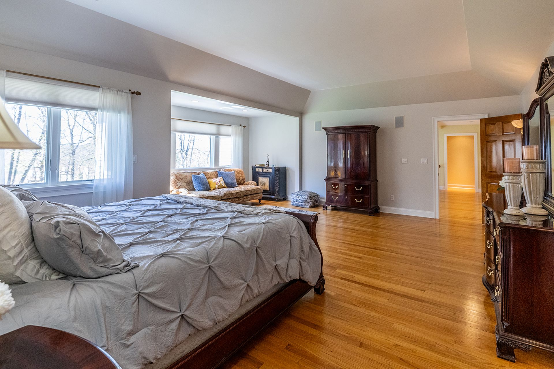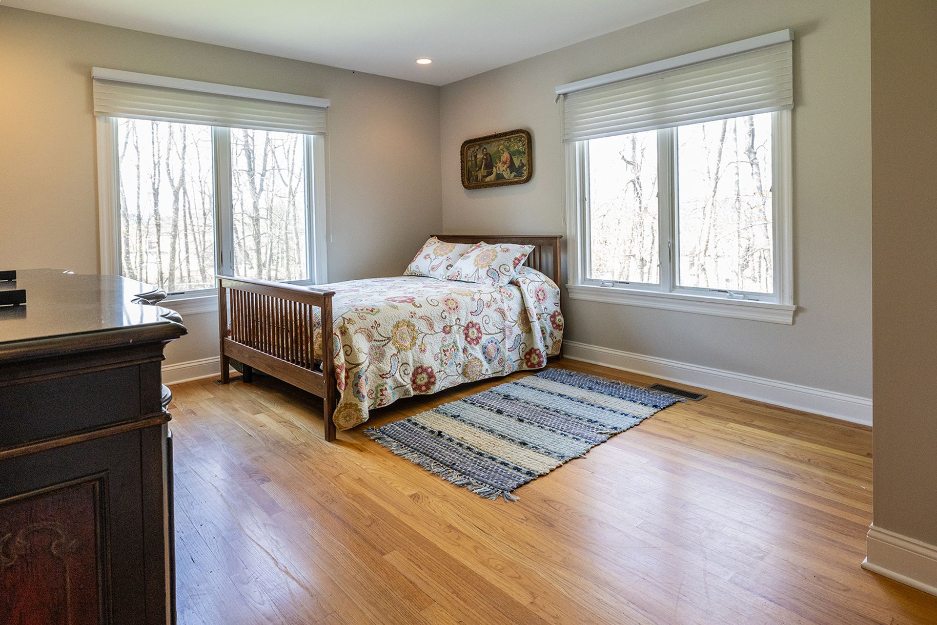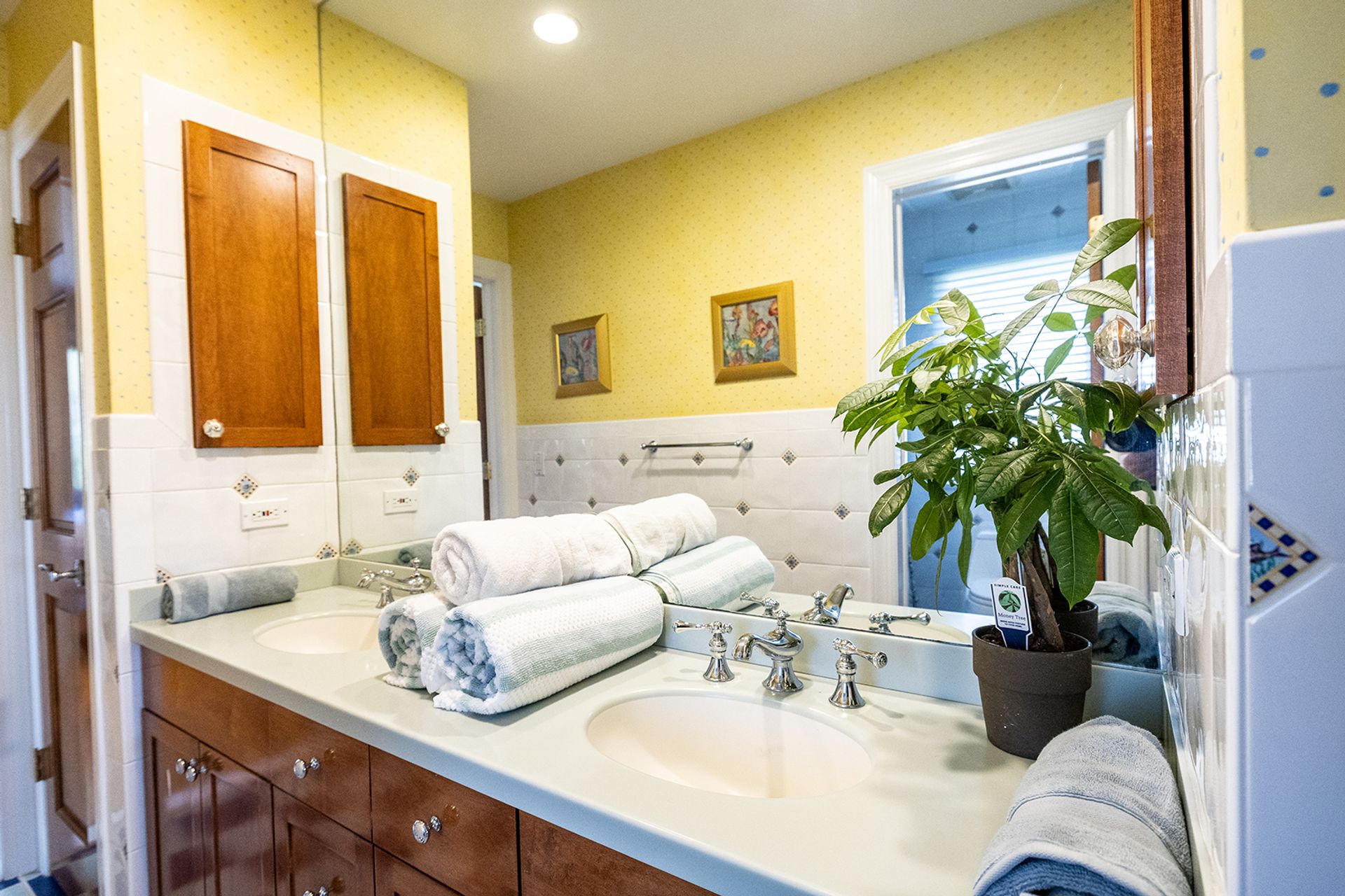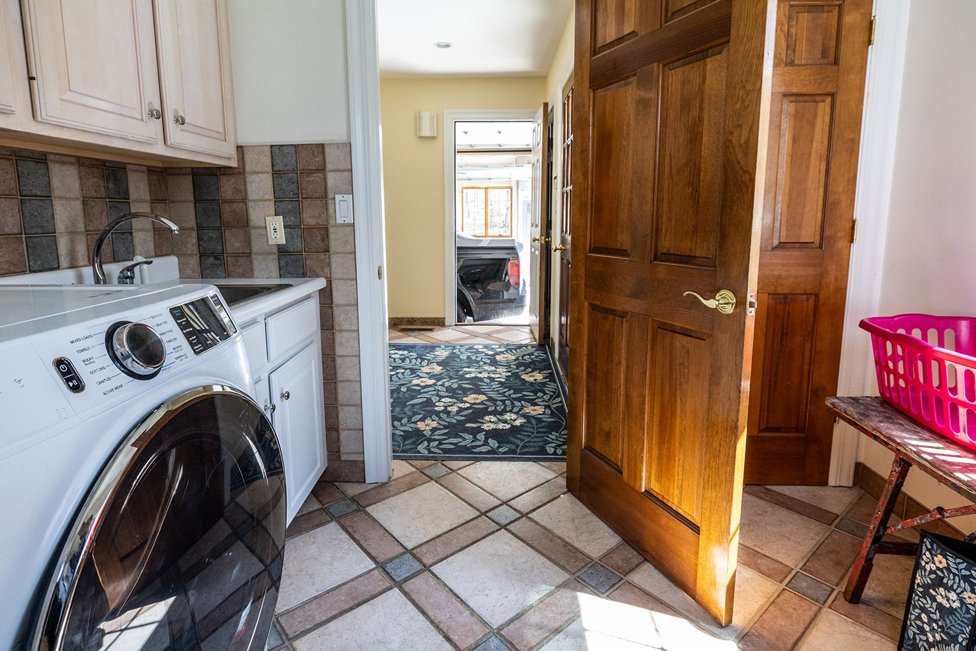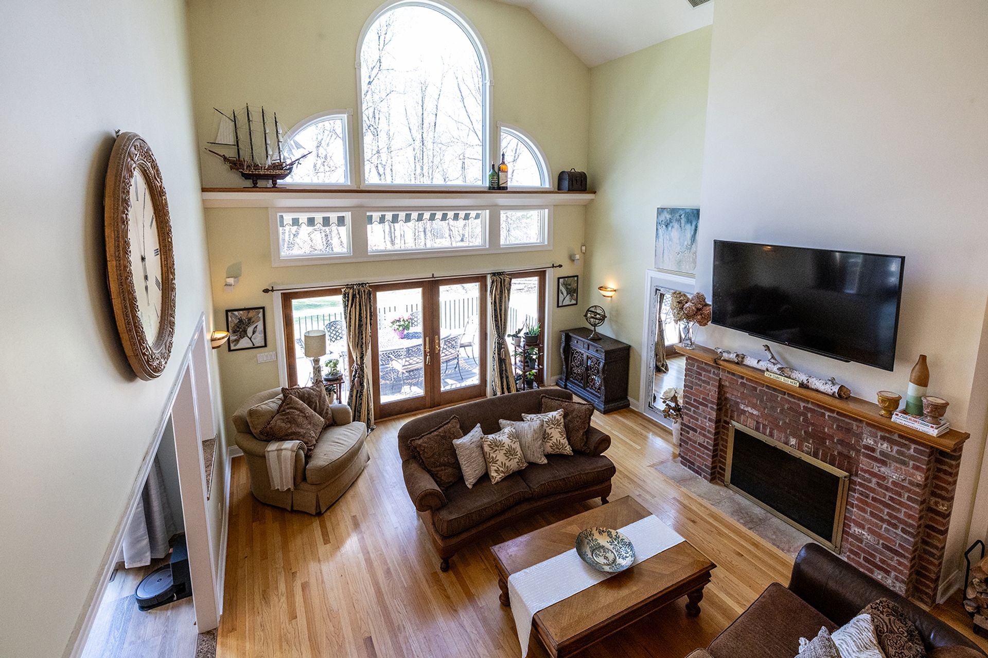 A first-floor bedroom, den or office with adjoining full bath provides ideal guest or work-from-home flexibility.