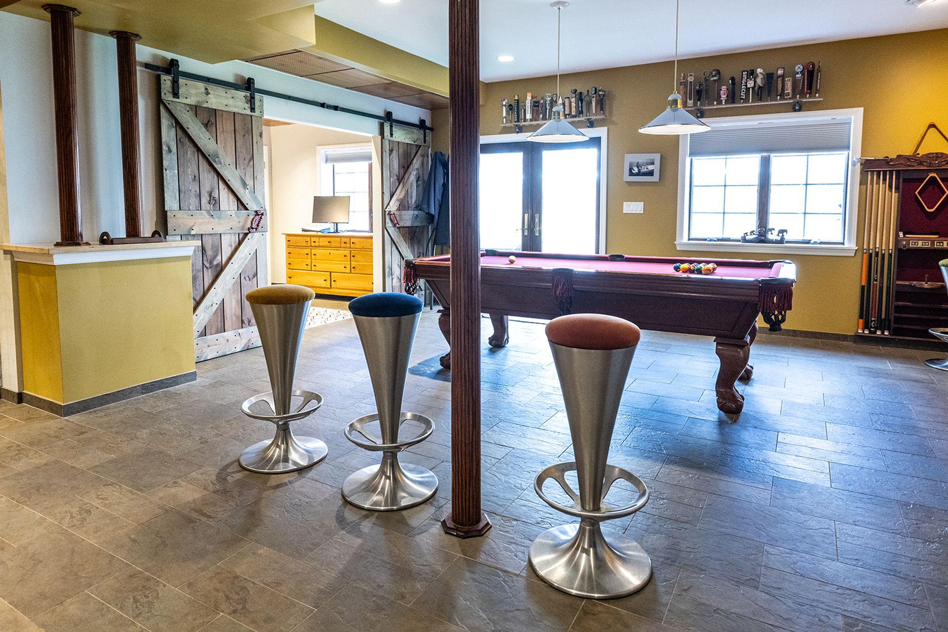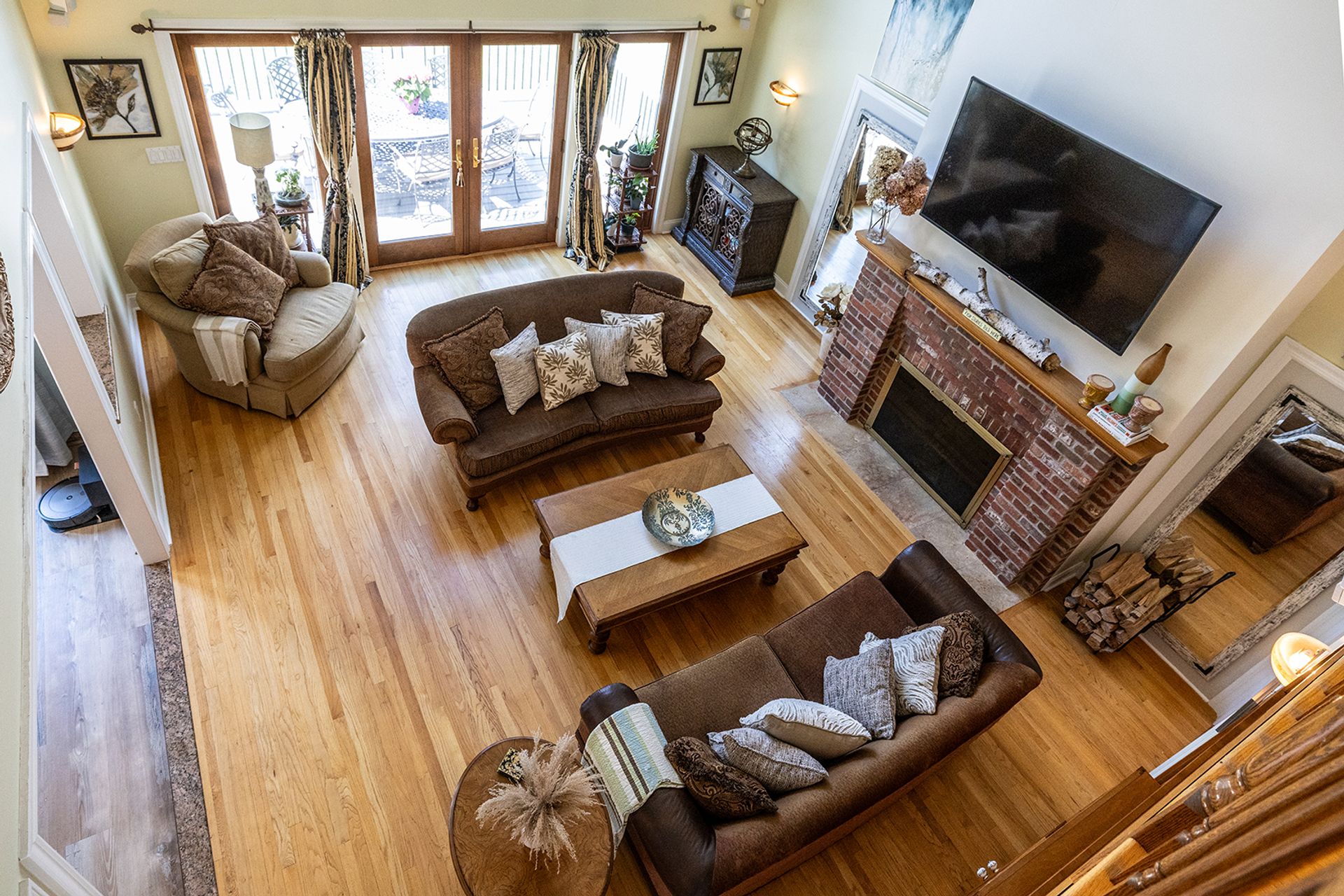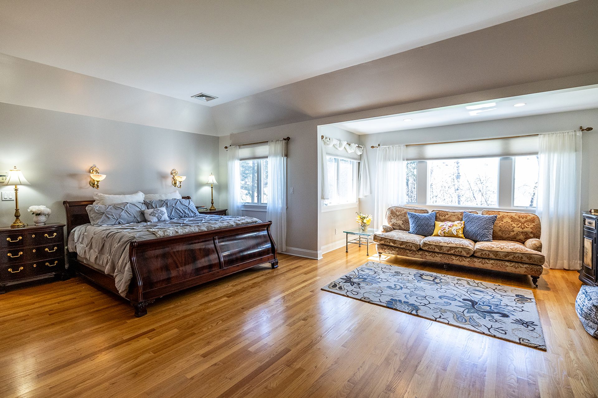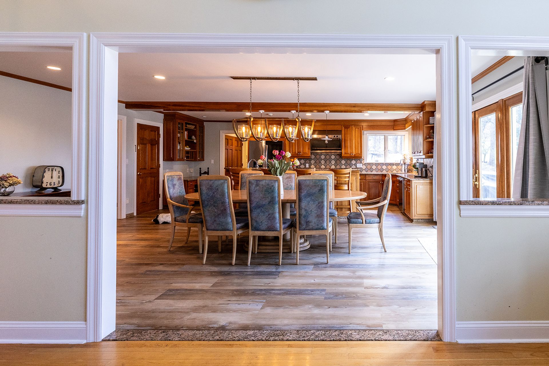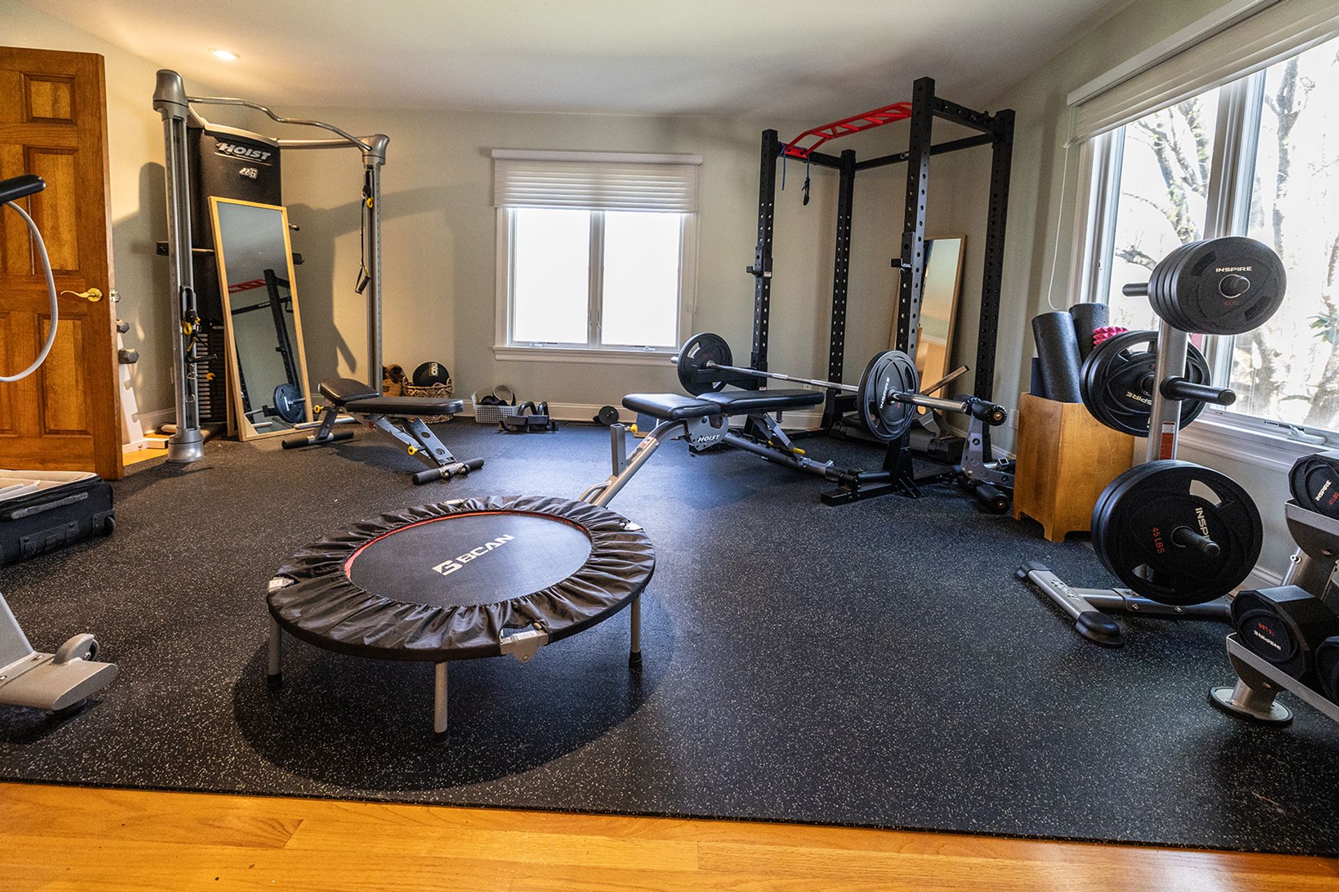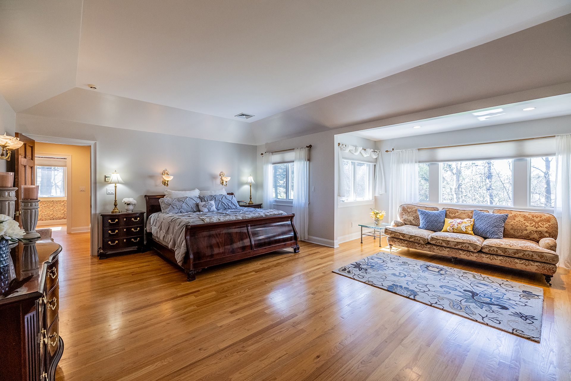 A first-floor bedroom, den or office with adjoining full bath provides ideal guest or work-from-home flexibility.