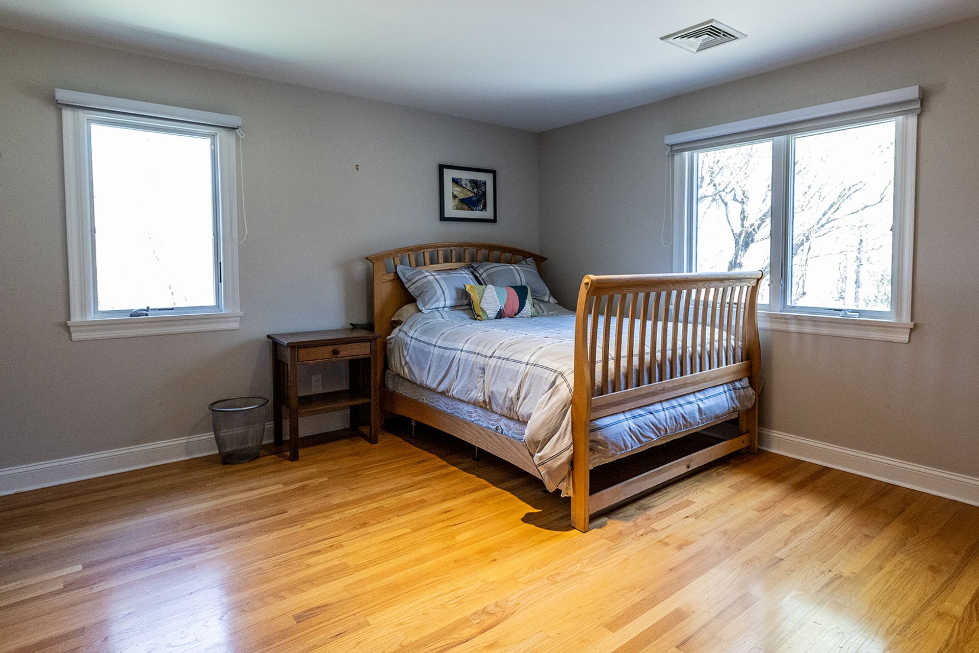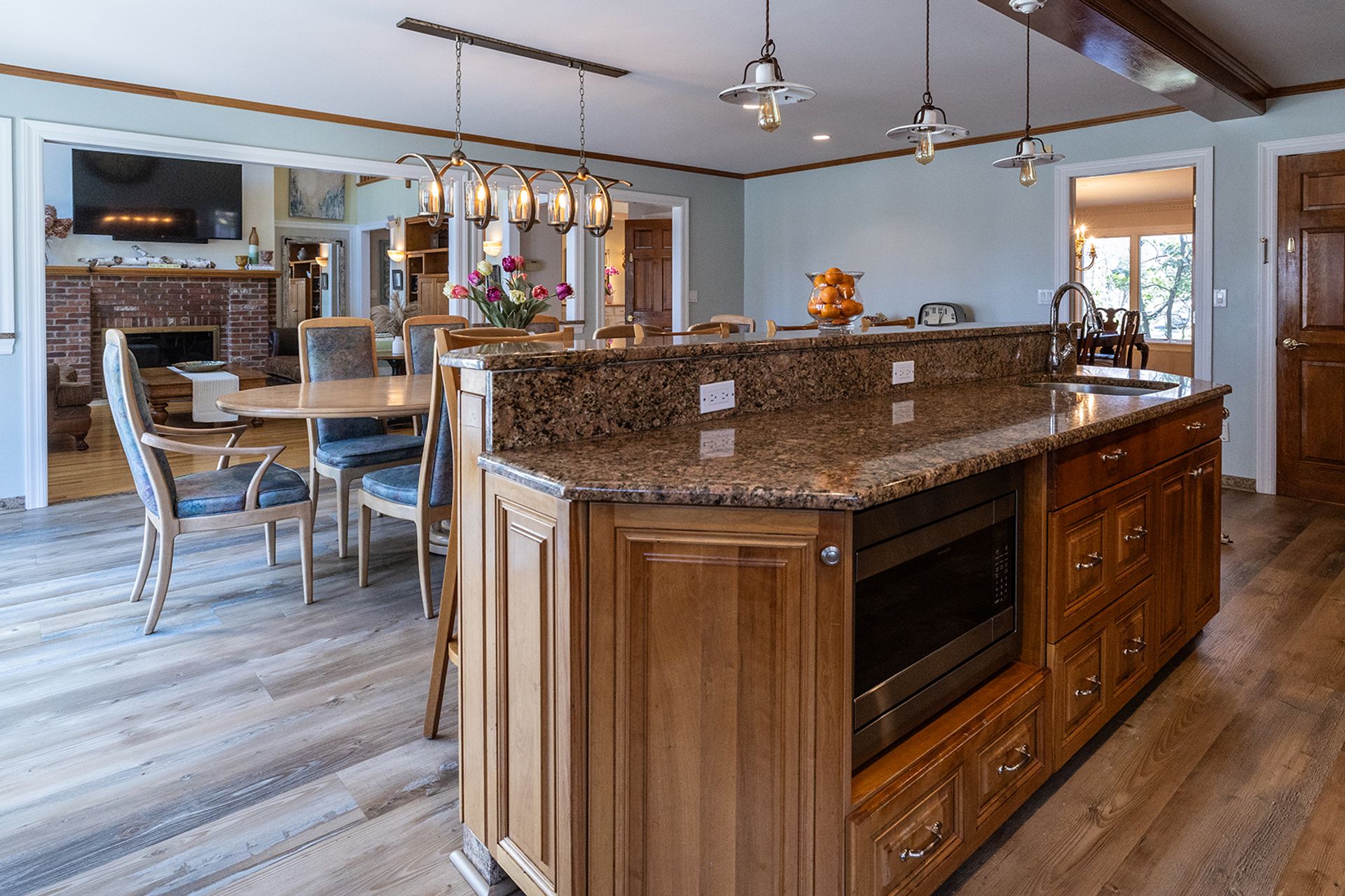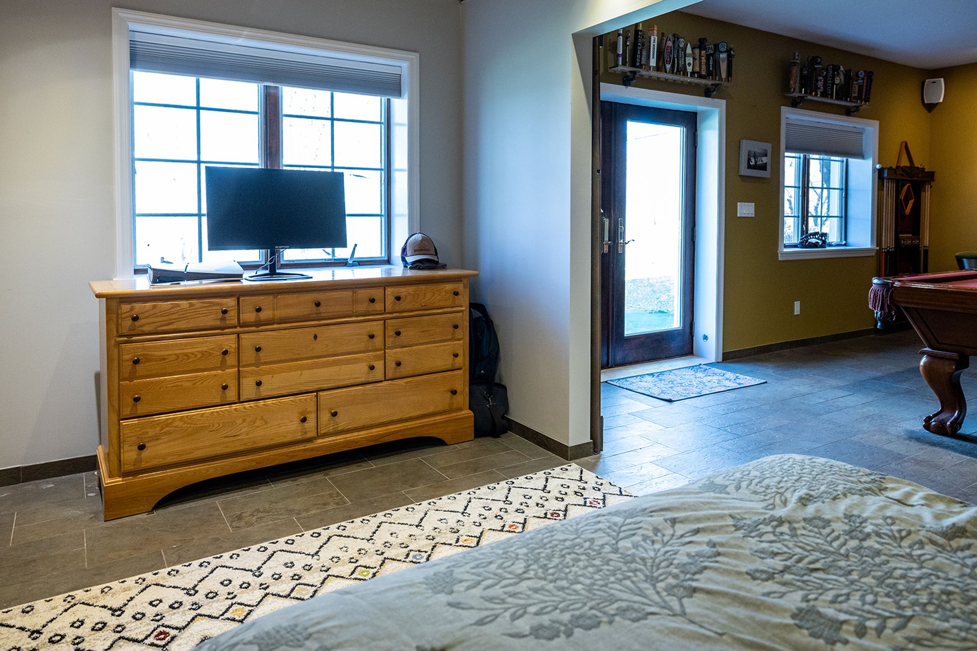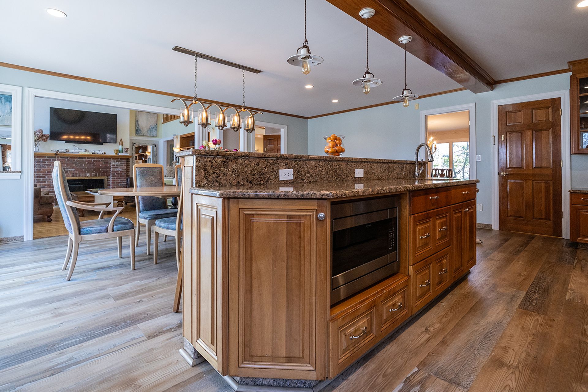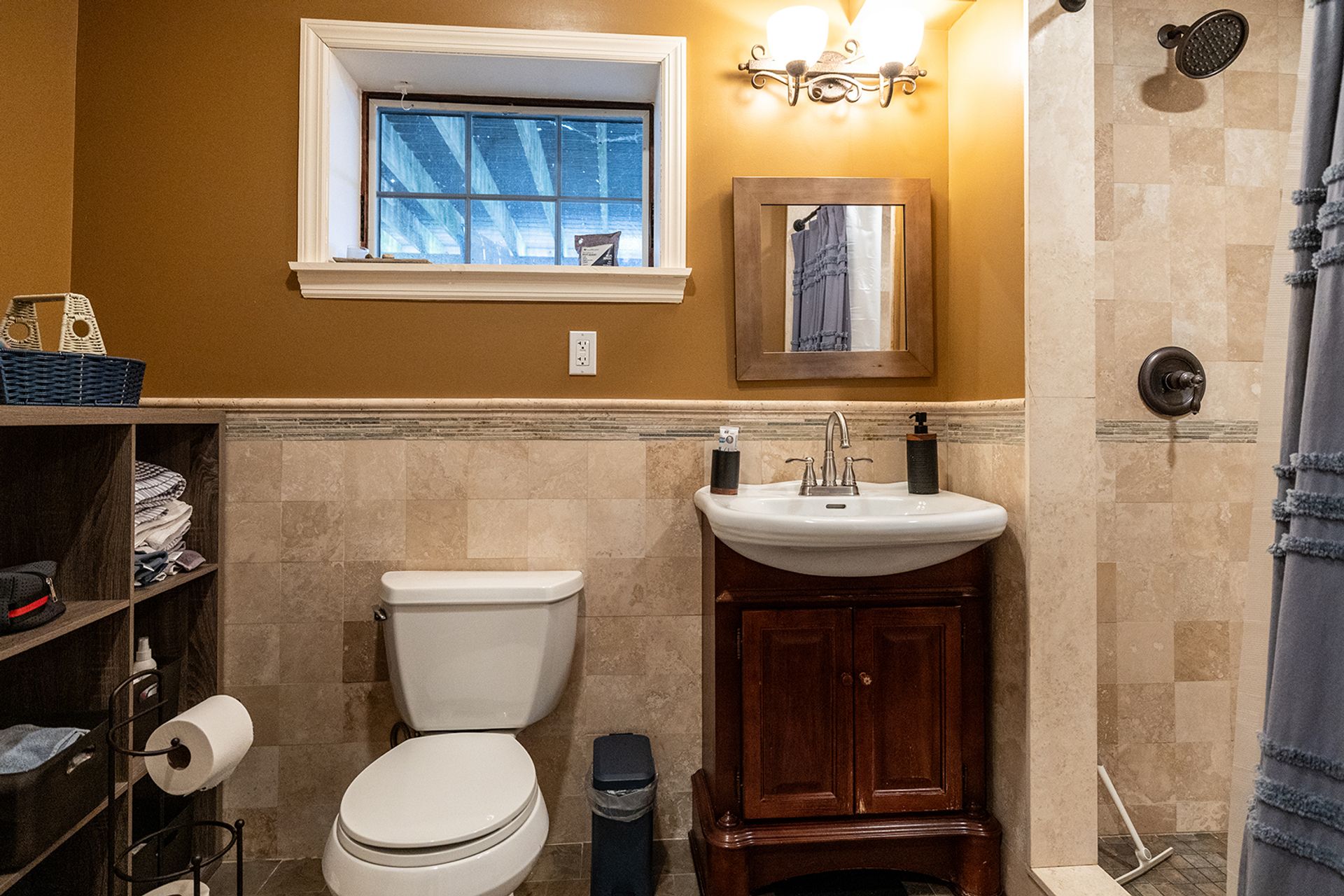 A first-floor bedroom, den or office with adjoining full bath provides ideal guest or work-from-home flexibility.