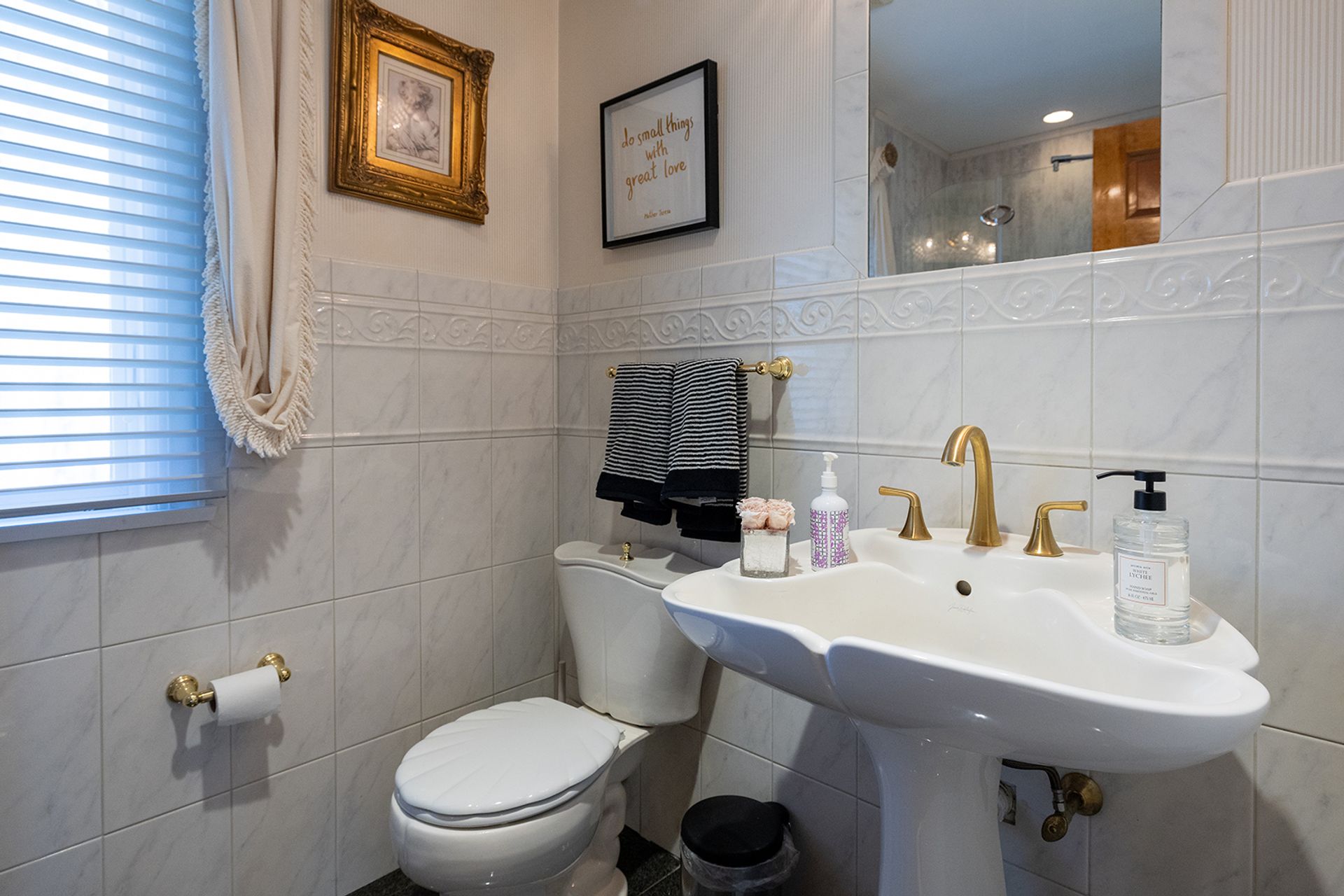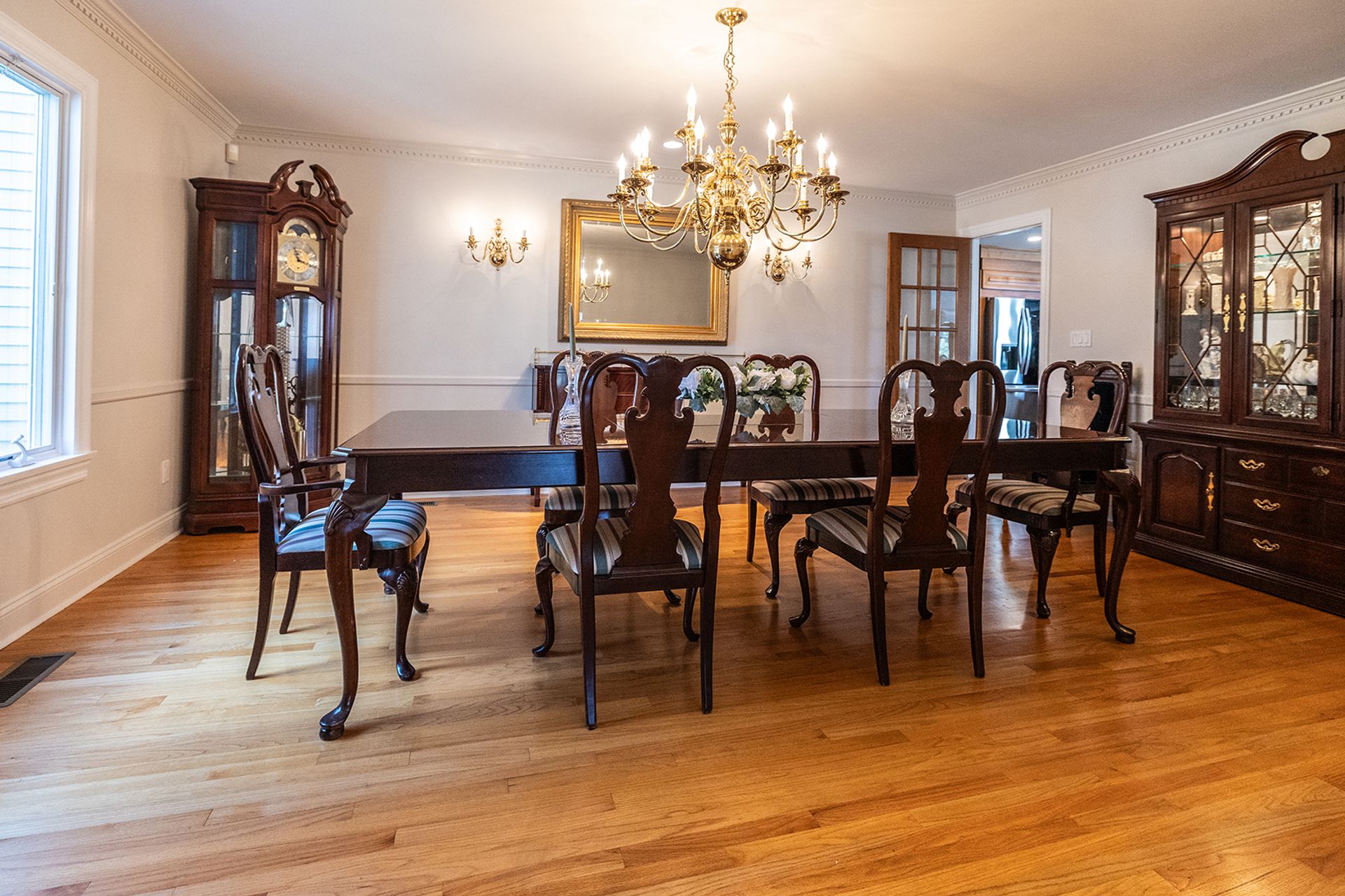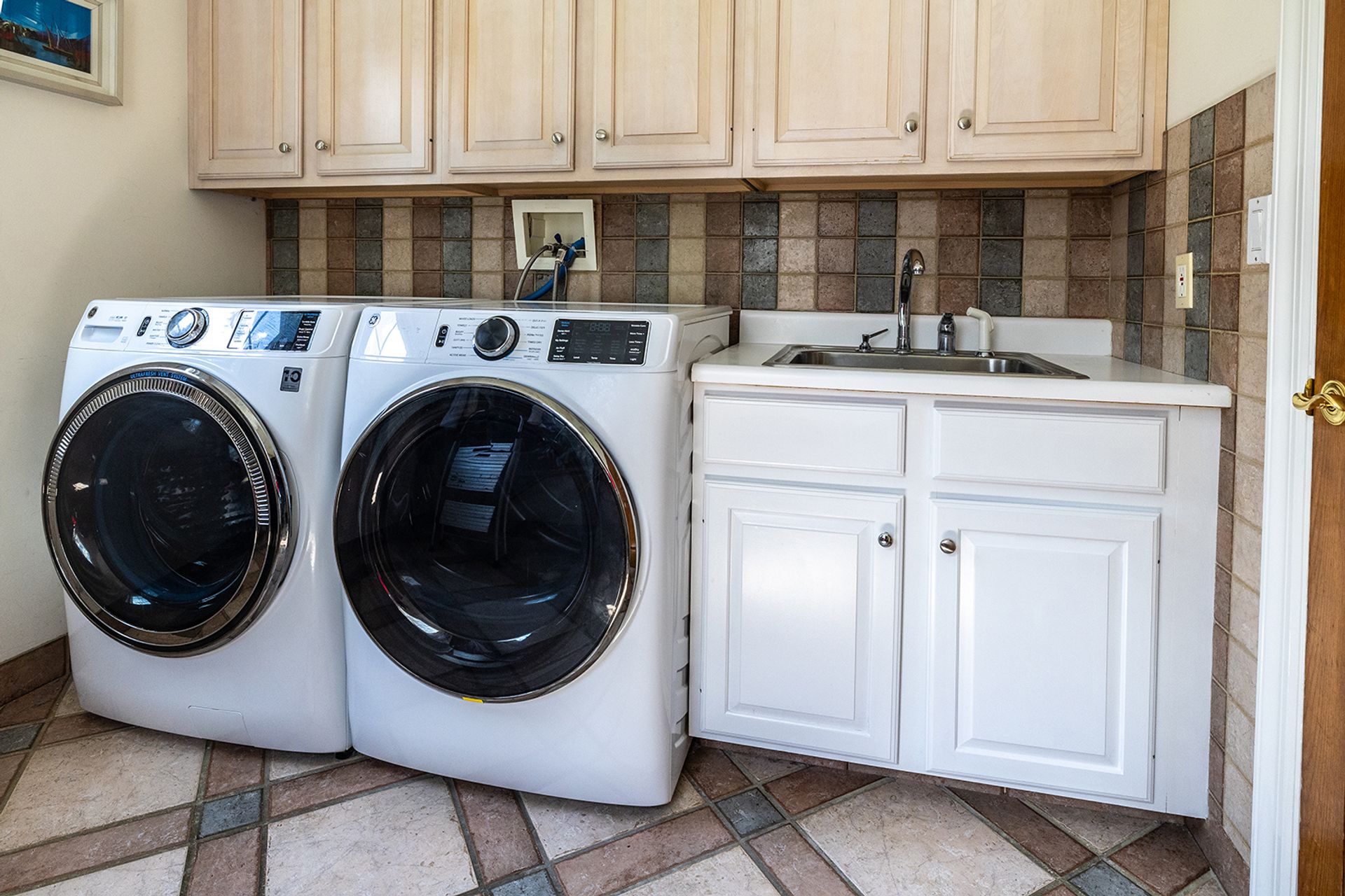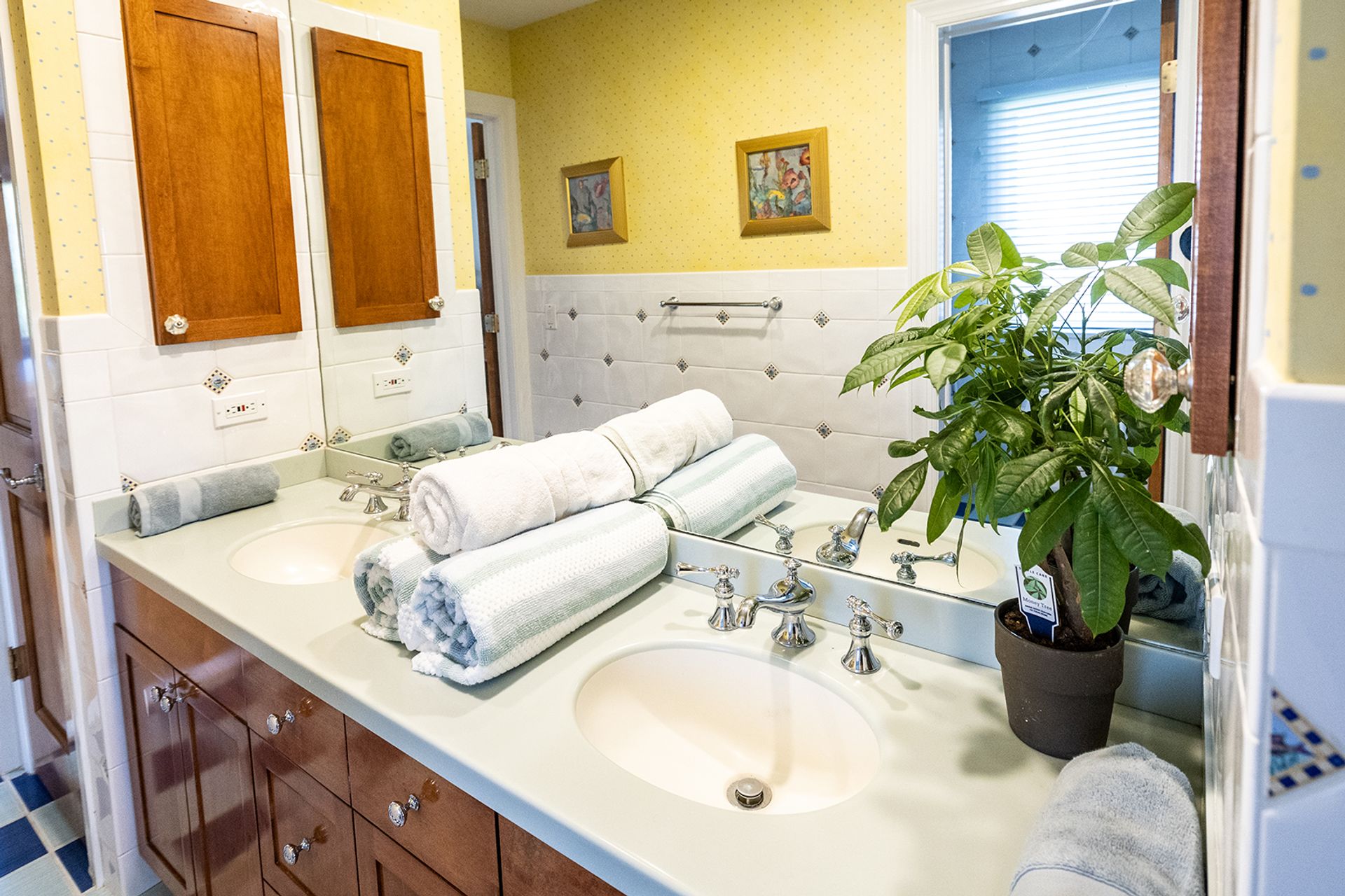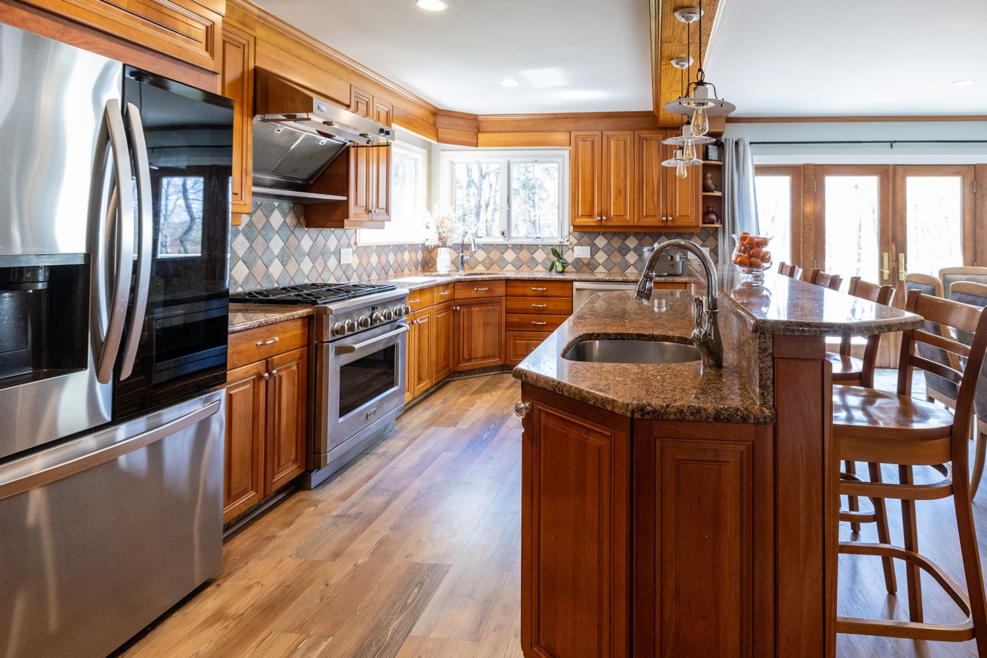 A first-floor bedroom, den or office with adjoining full bath provides ideal guest or work-from-home flexibility.