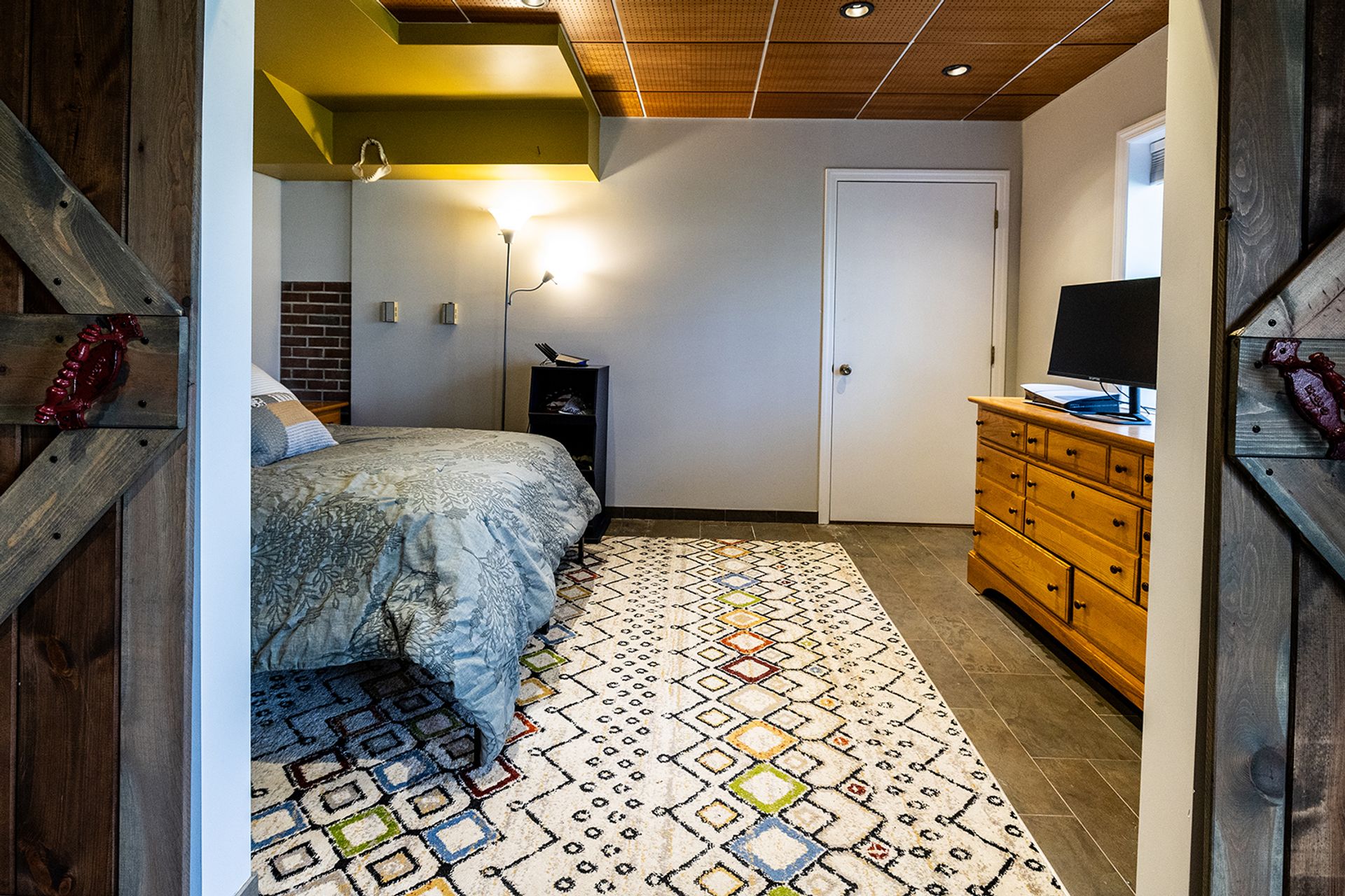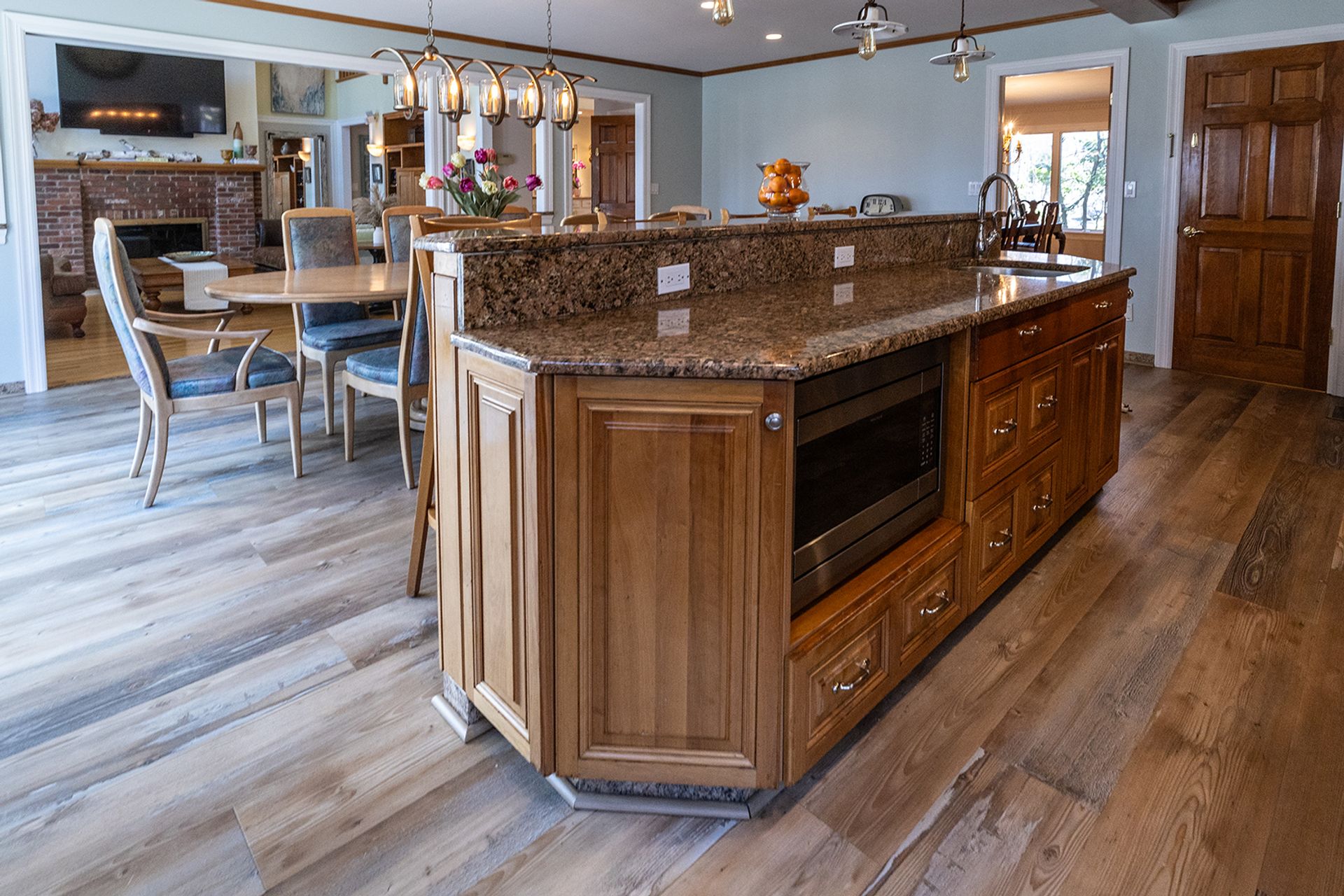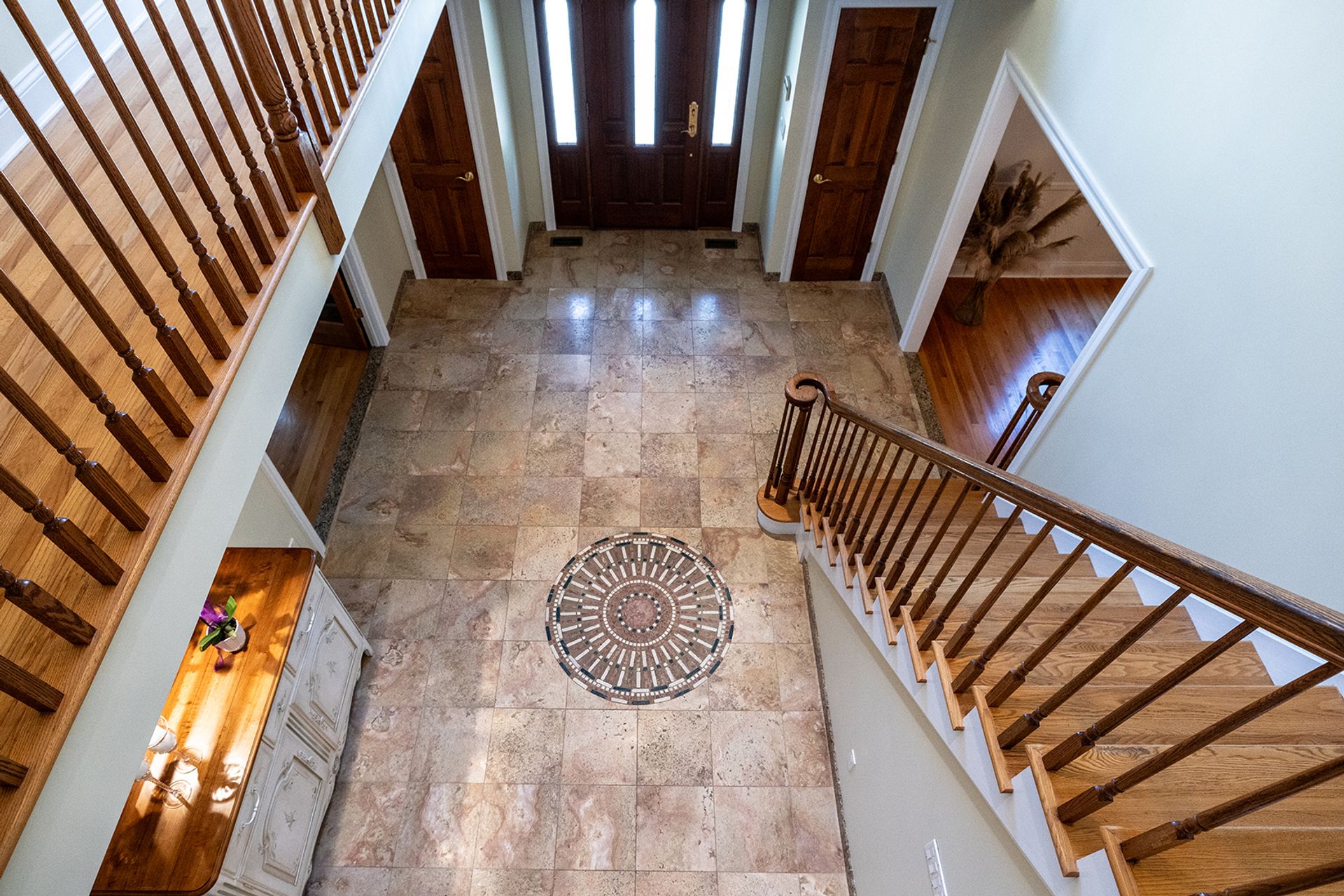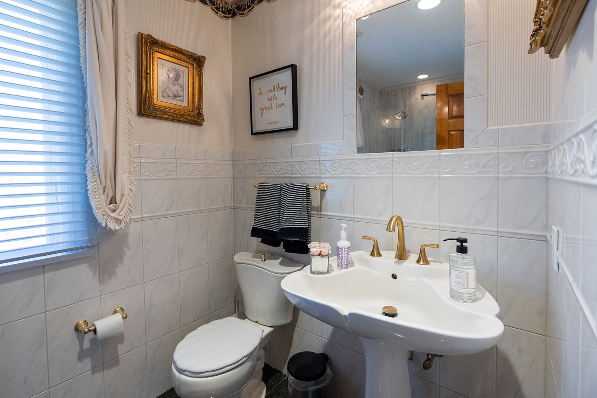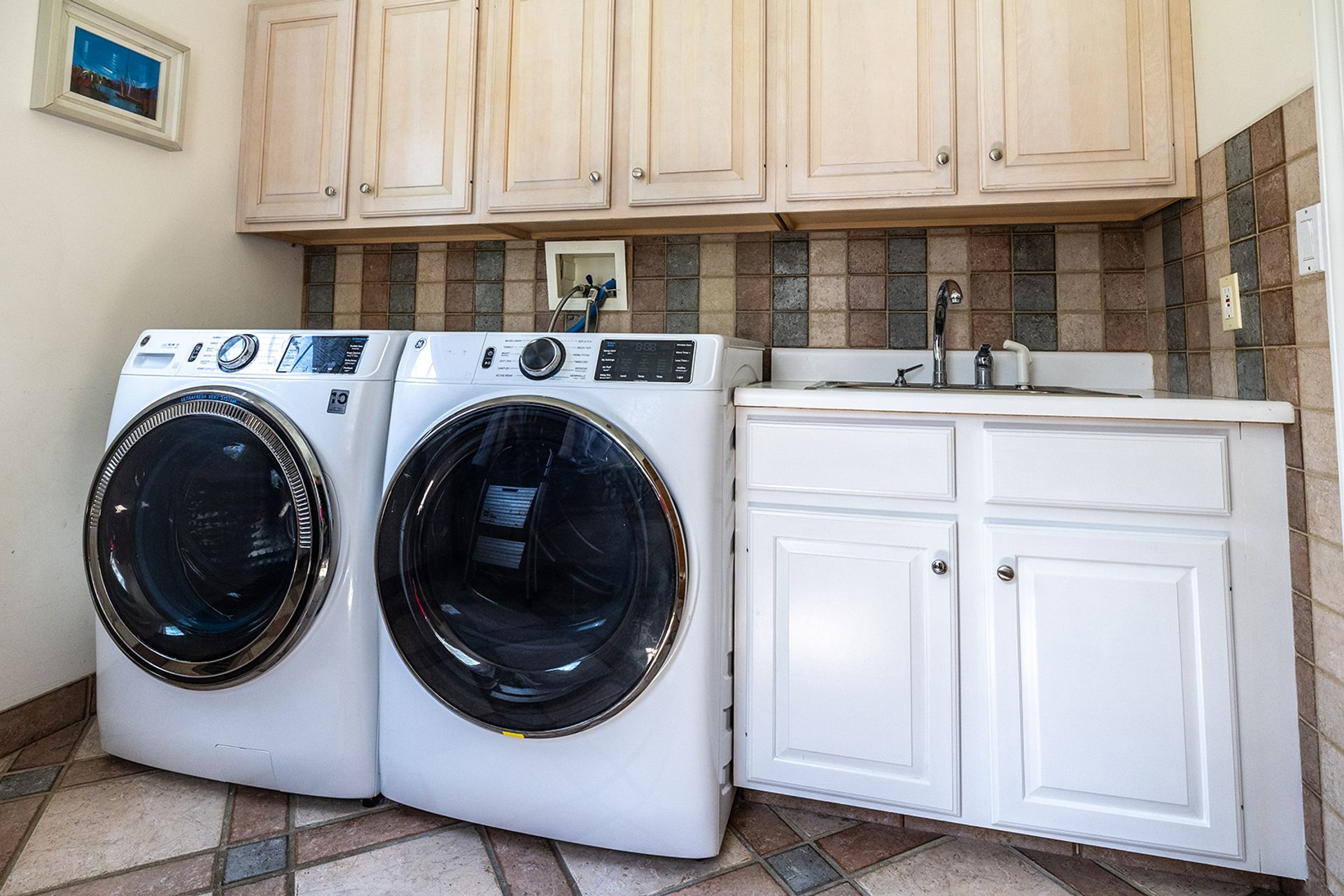 A first-floor bedroom, den or office with adjoining full bath provides ideal guest or work-from-home flexibility.