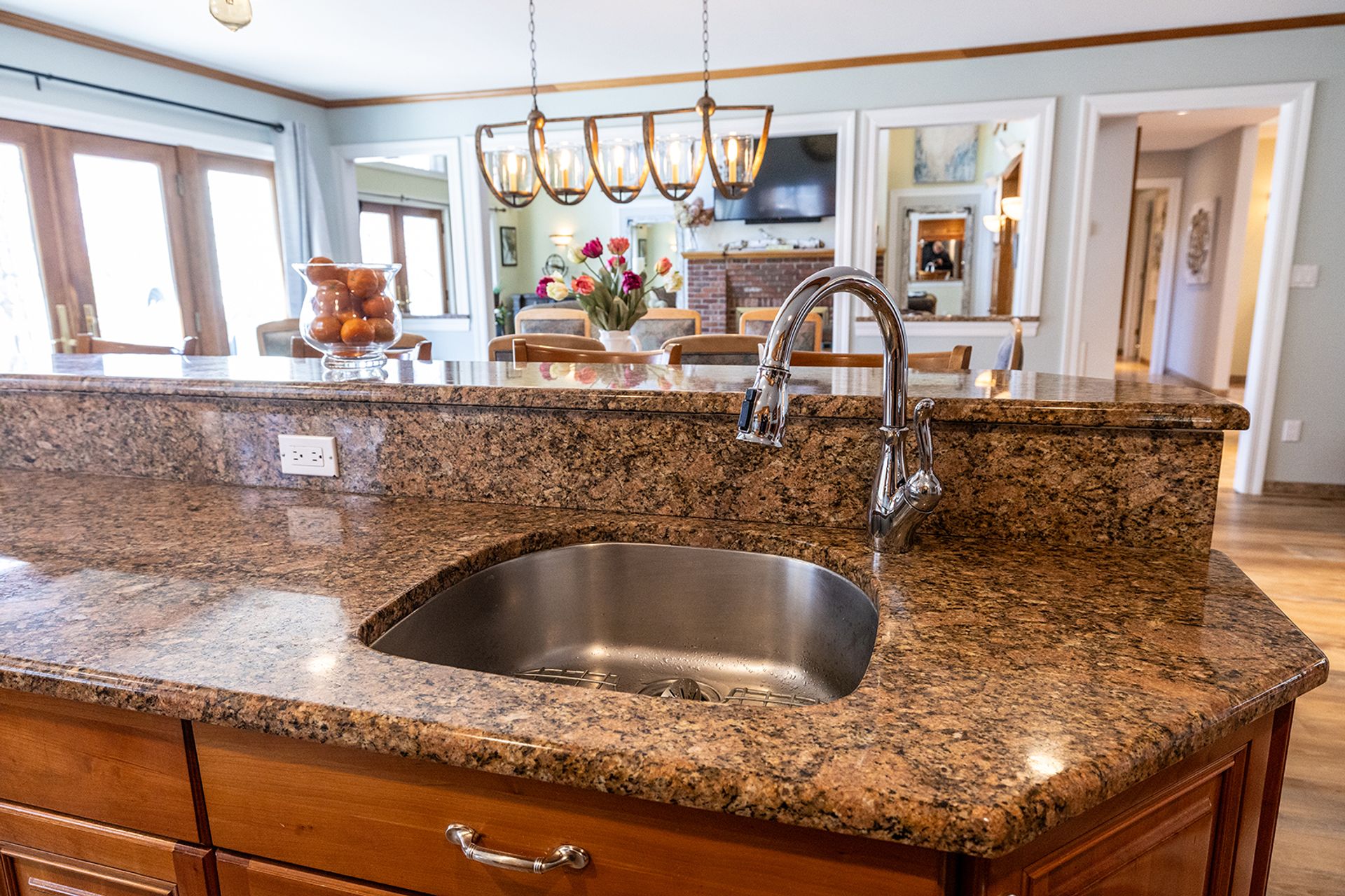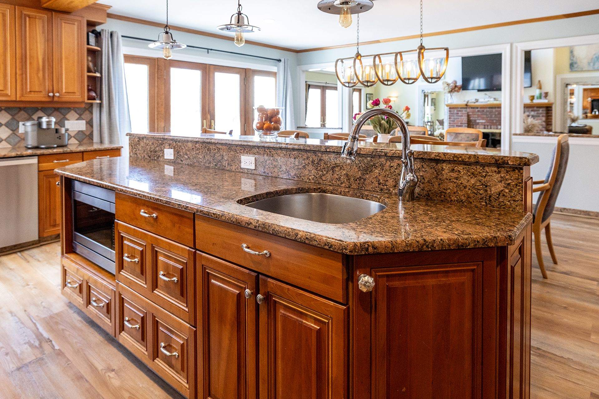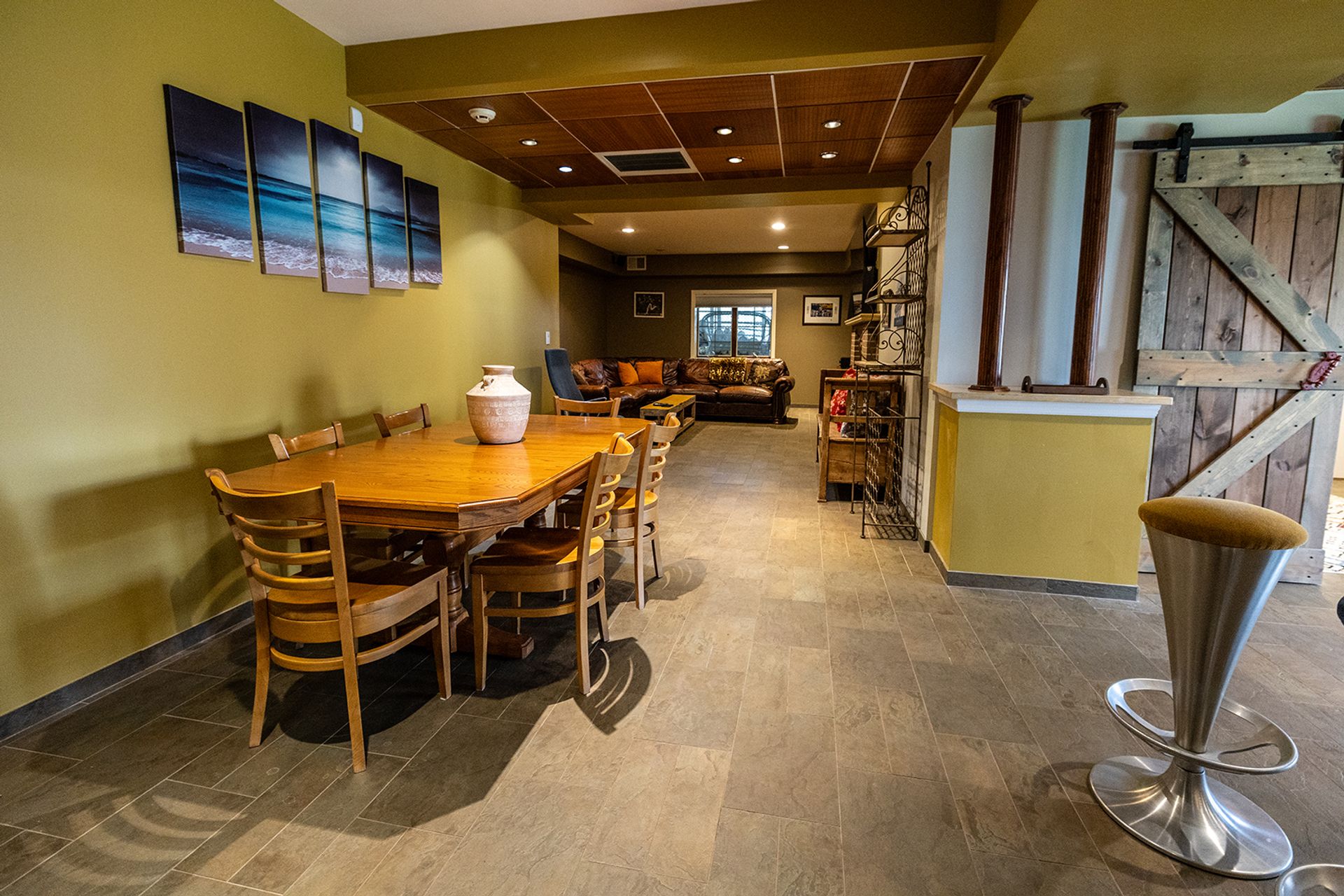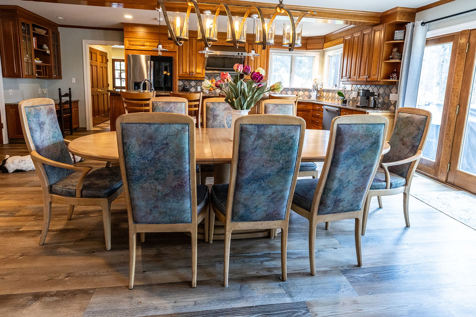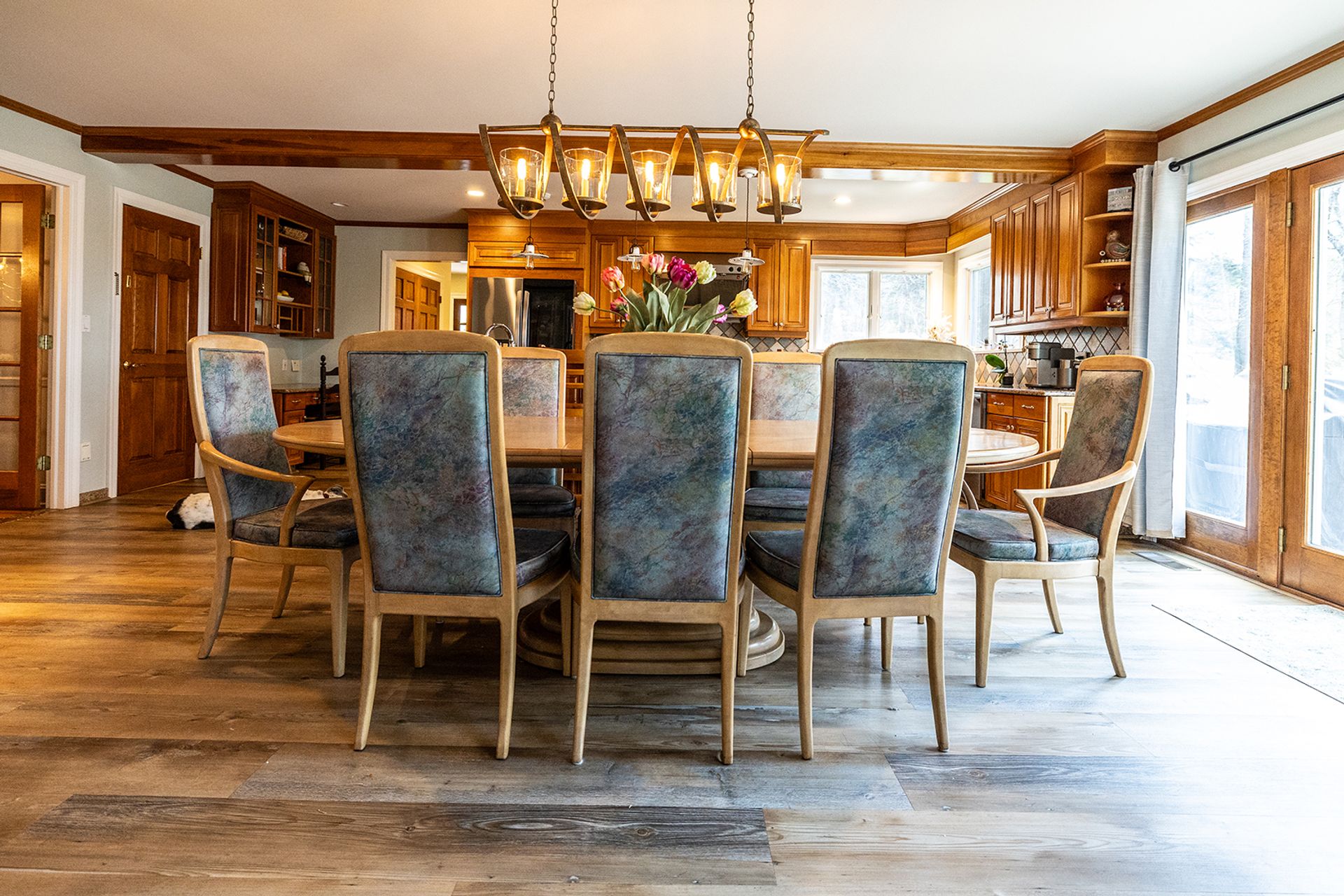 A first-floor bedroom, den or office with adjoining full bath provides ideal guest or work-from-home flexibility.