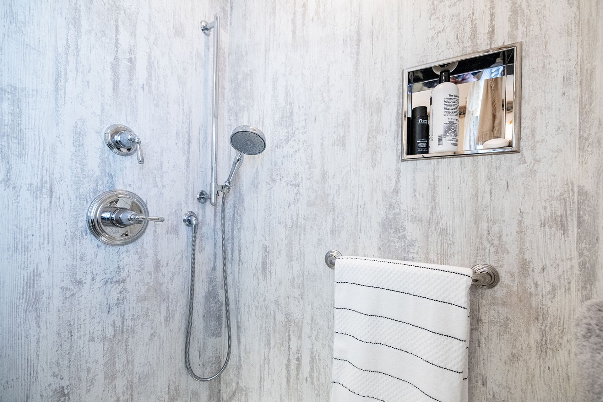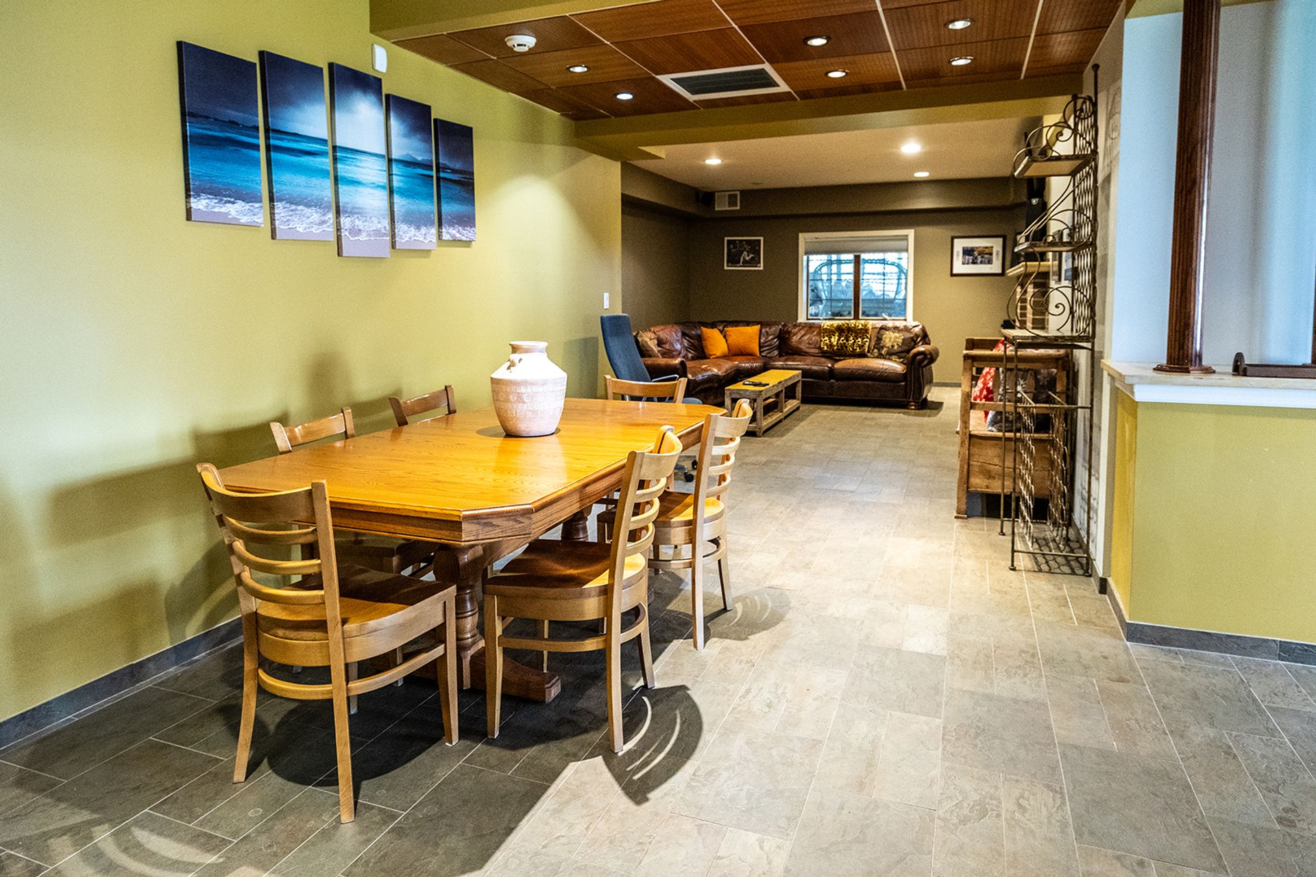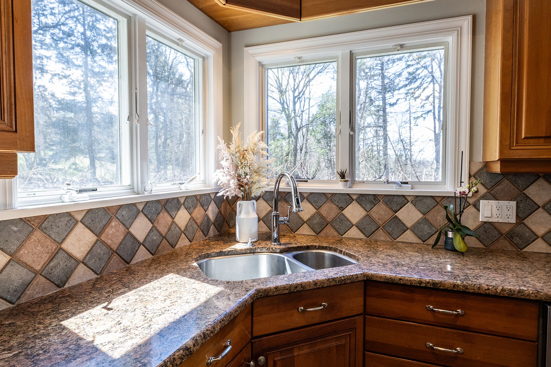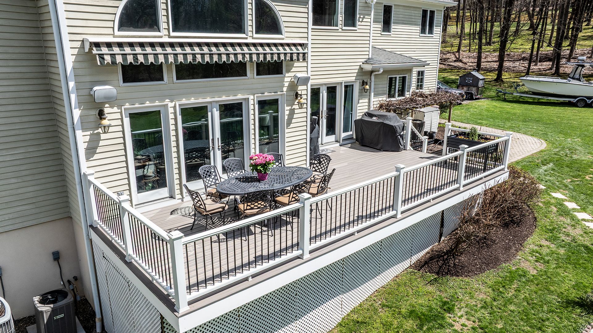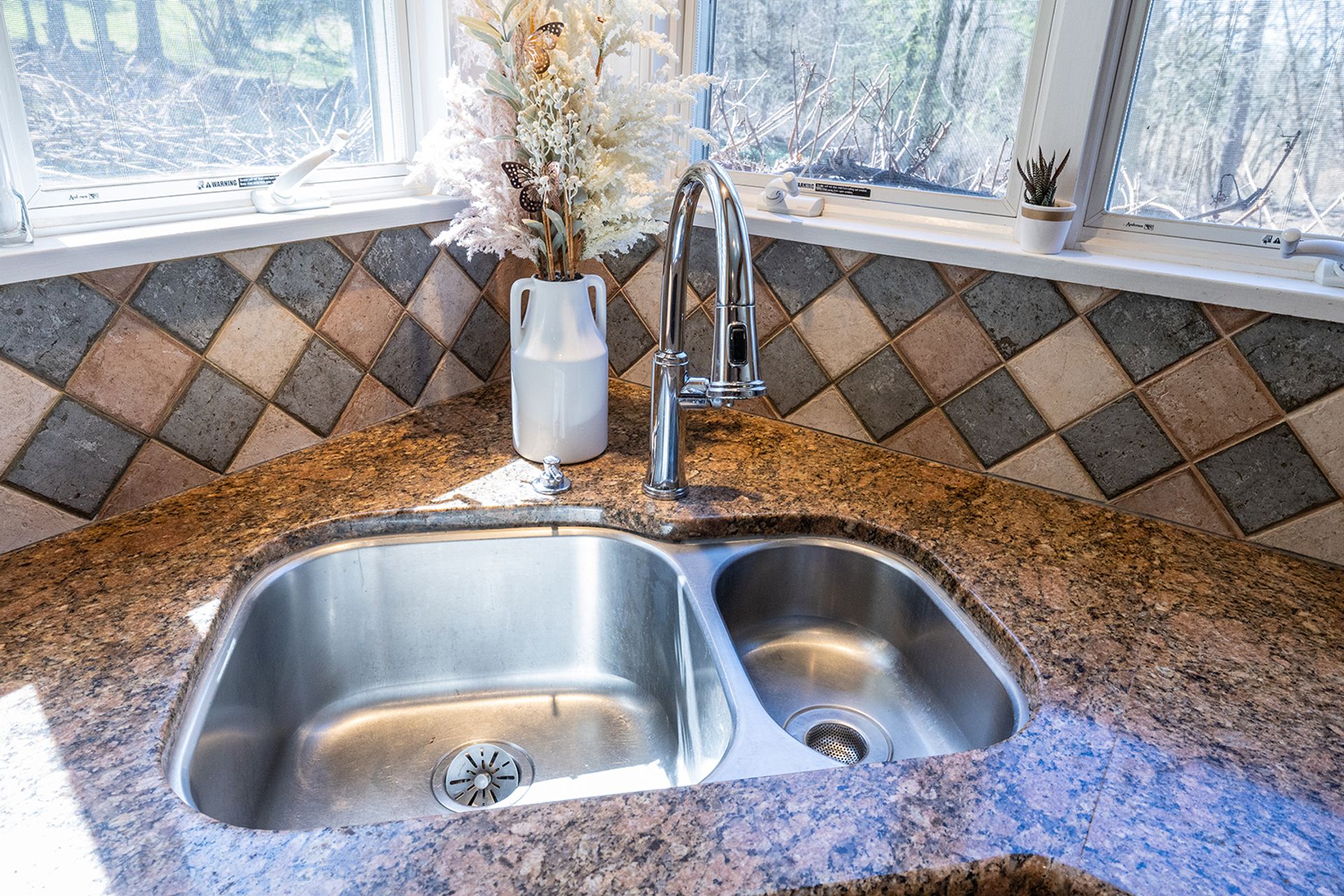 A first-floor bedroom, den or office with adjoining full bath provides ideal guest or work-from-home flexibility.