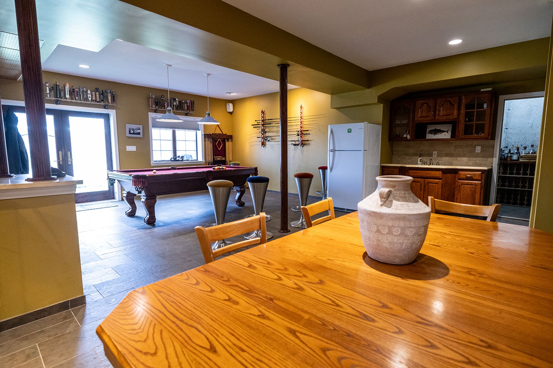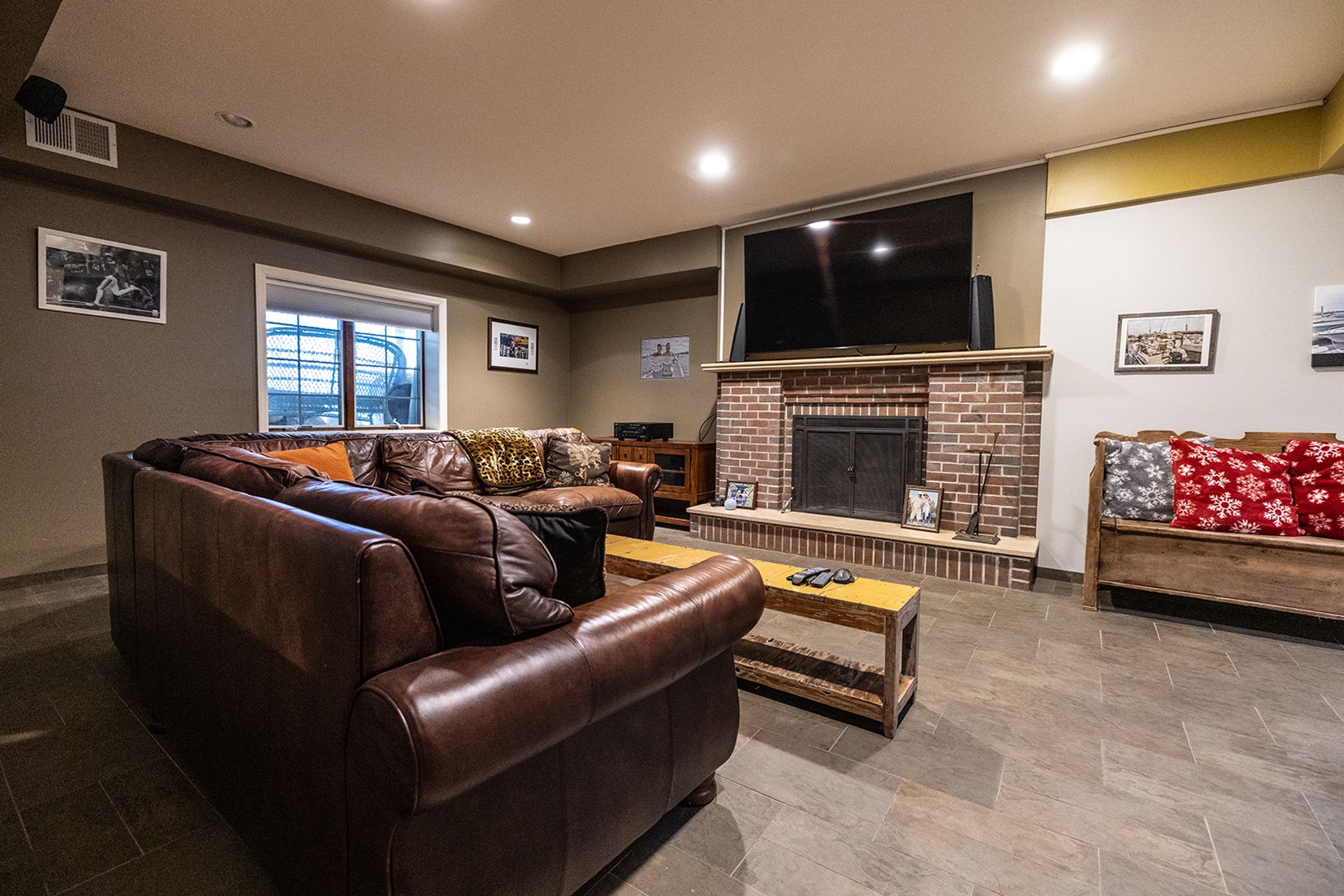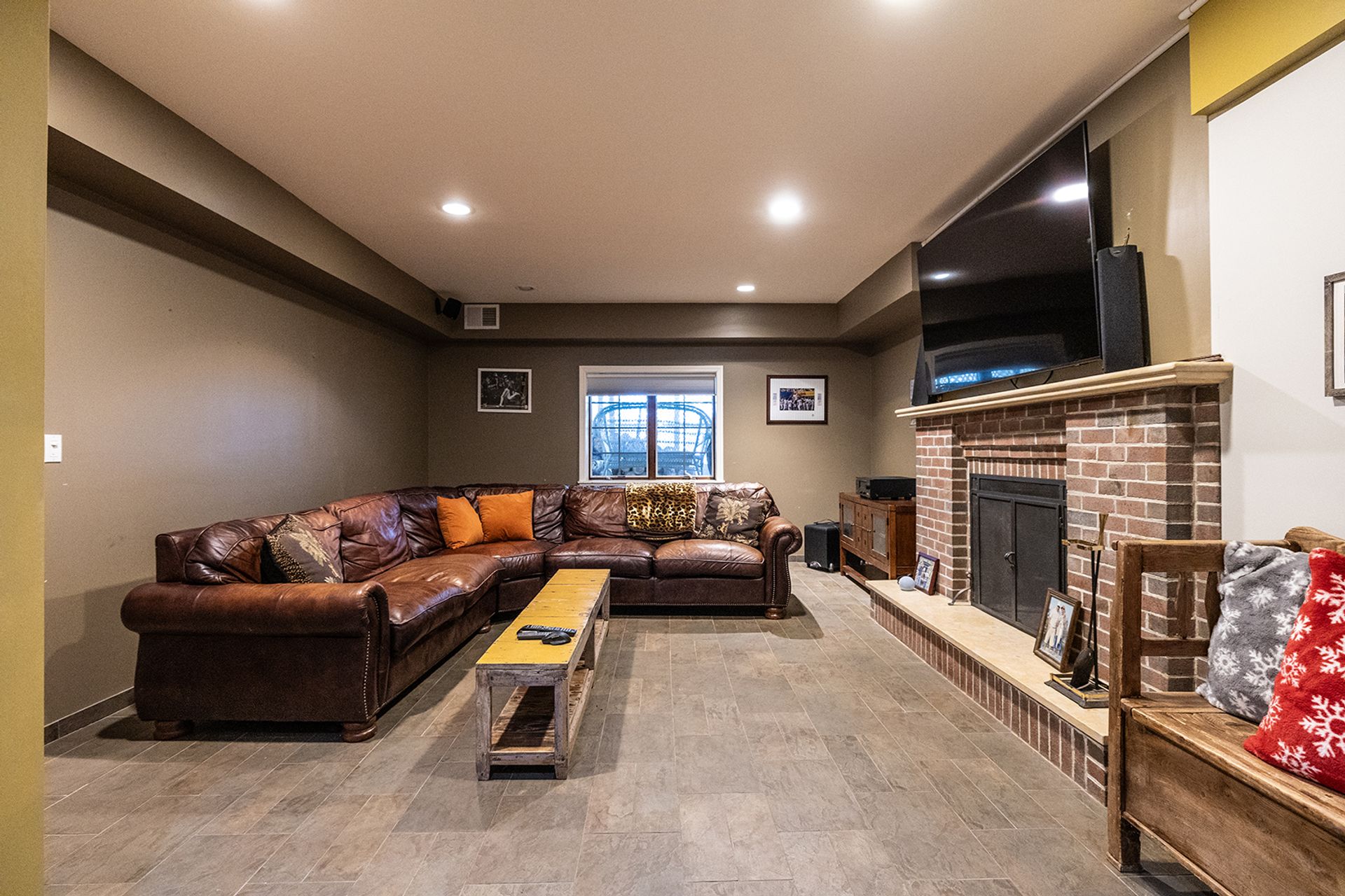 The finished lower level offers approximately 1,200 square feet with second family room and fireplace, game area, wet bar, wine cellar, full bath, possible additional bedroom, and abundant storage.