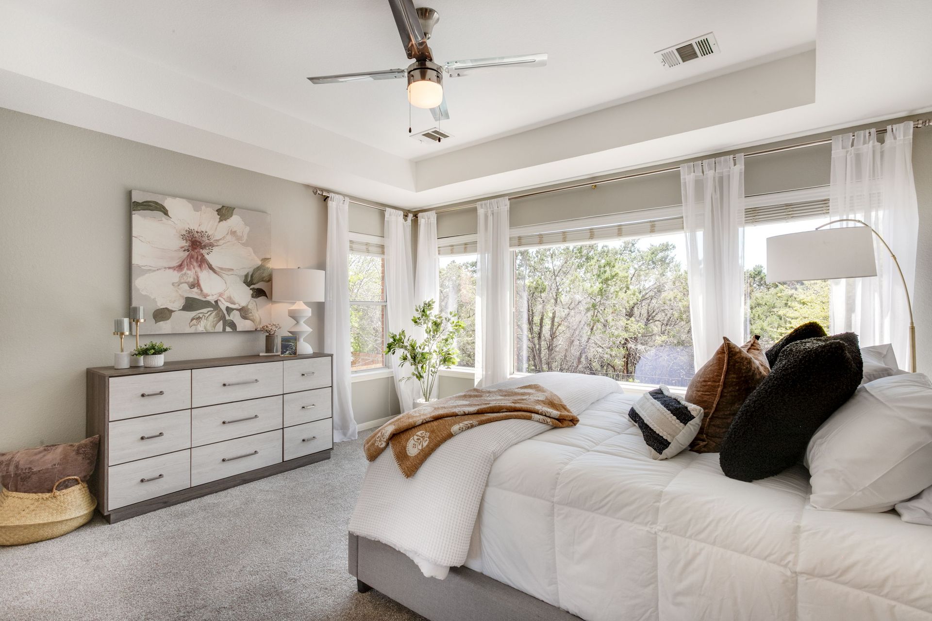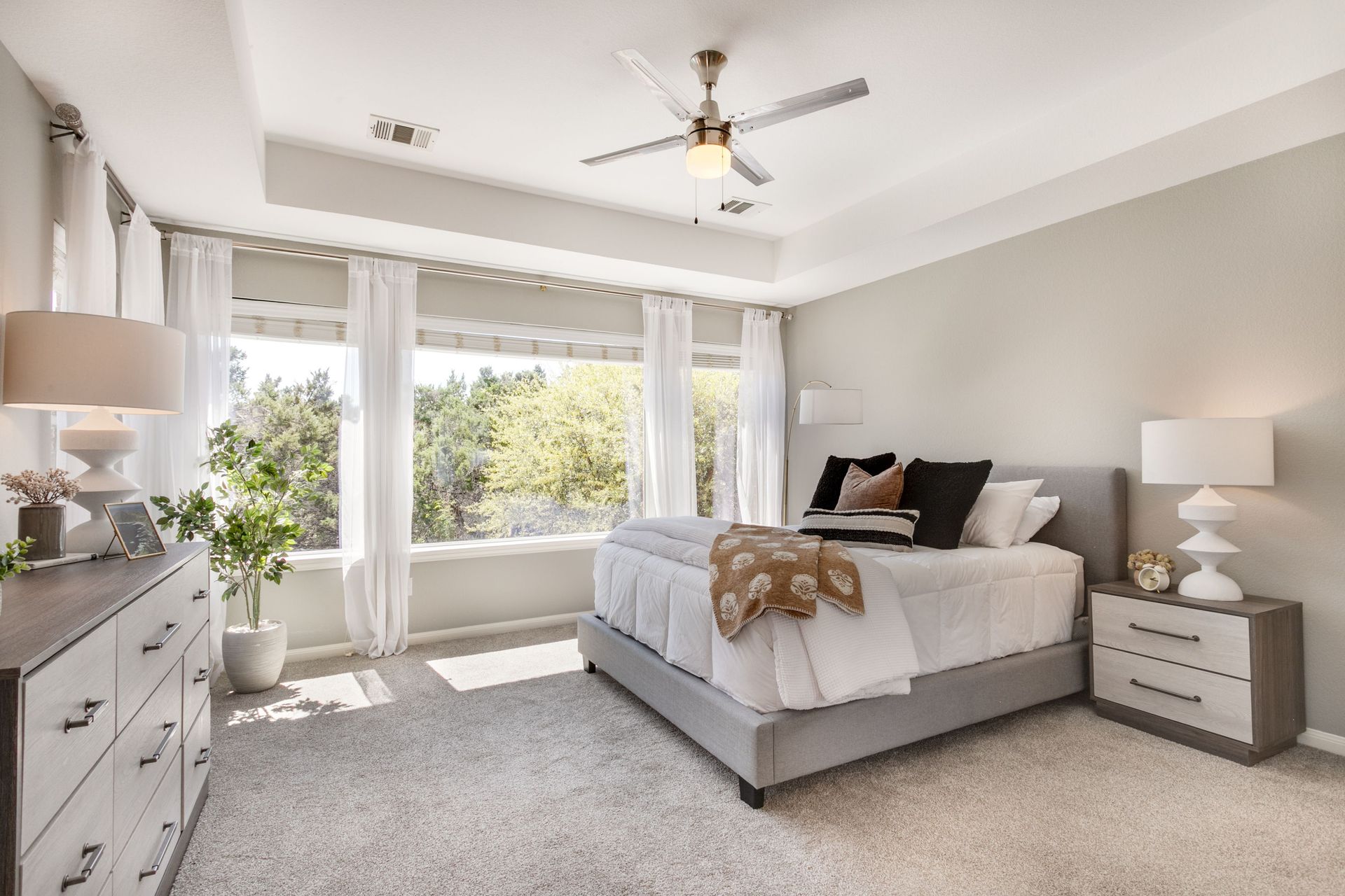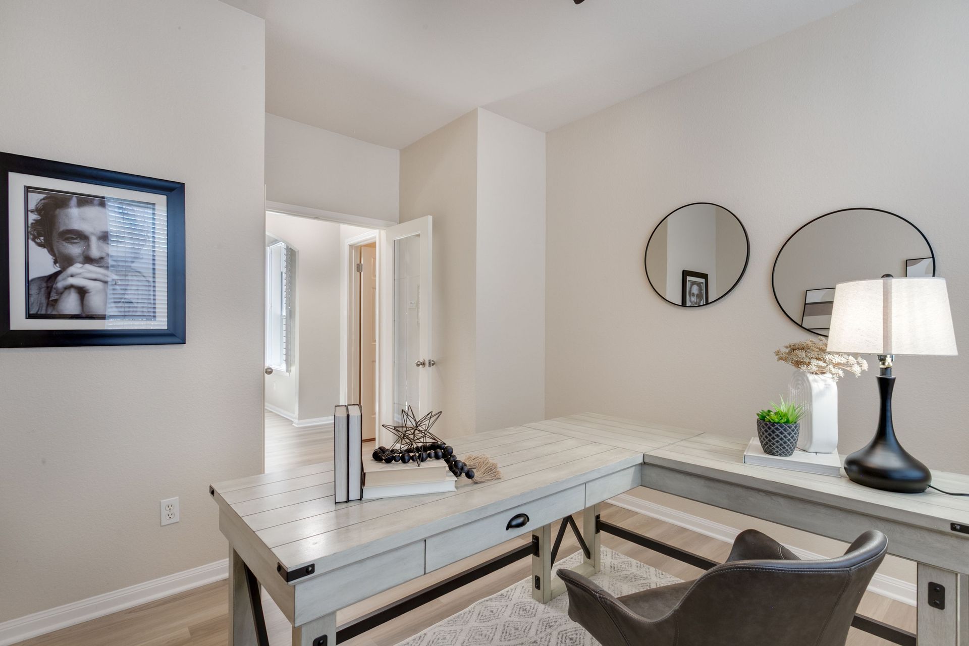 The home features four generously sized bedrooms, including a main-level primary suite, along with two full bathrooms and one half bath. Soaring ceilings and abundant natural light enhance the open feel throughout. A dedicated downstairs office with French doors provides a quiet and functional workspace, while multiple storage areas add everyday convenience. Upstairs, a spacious game room offers flexibility for a media room, play area, or secondary living space.