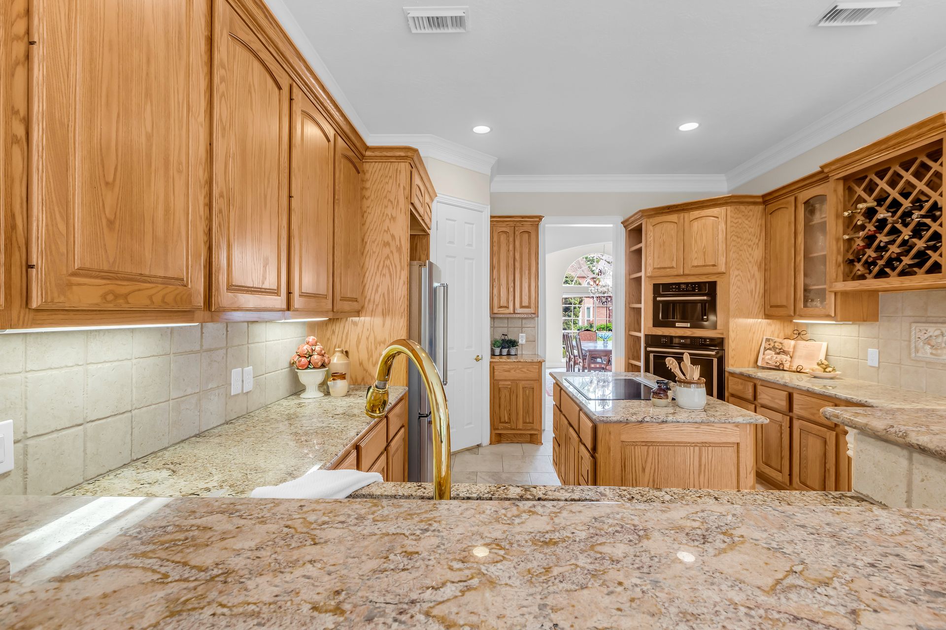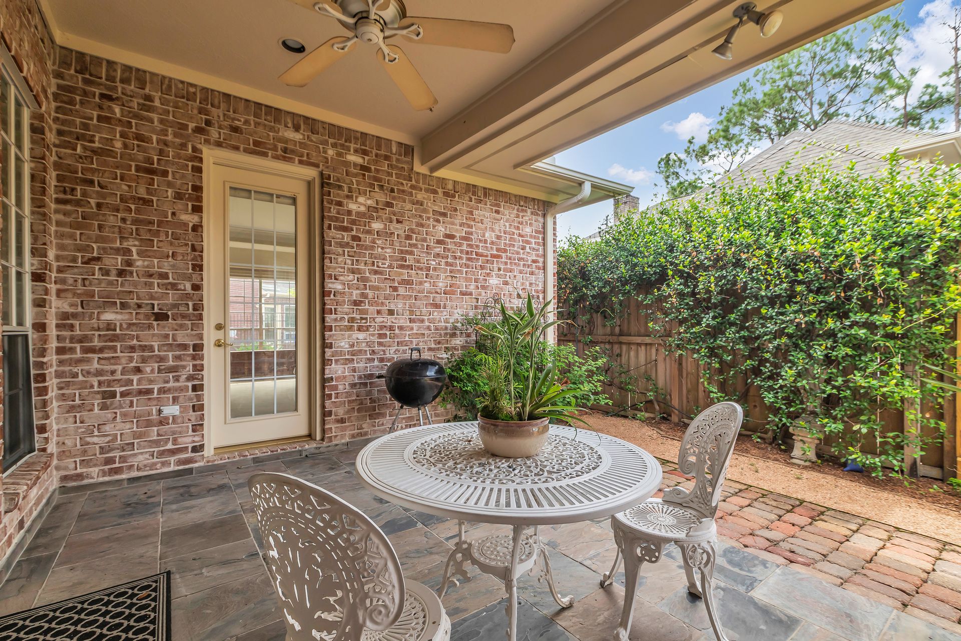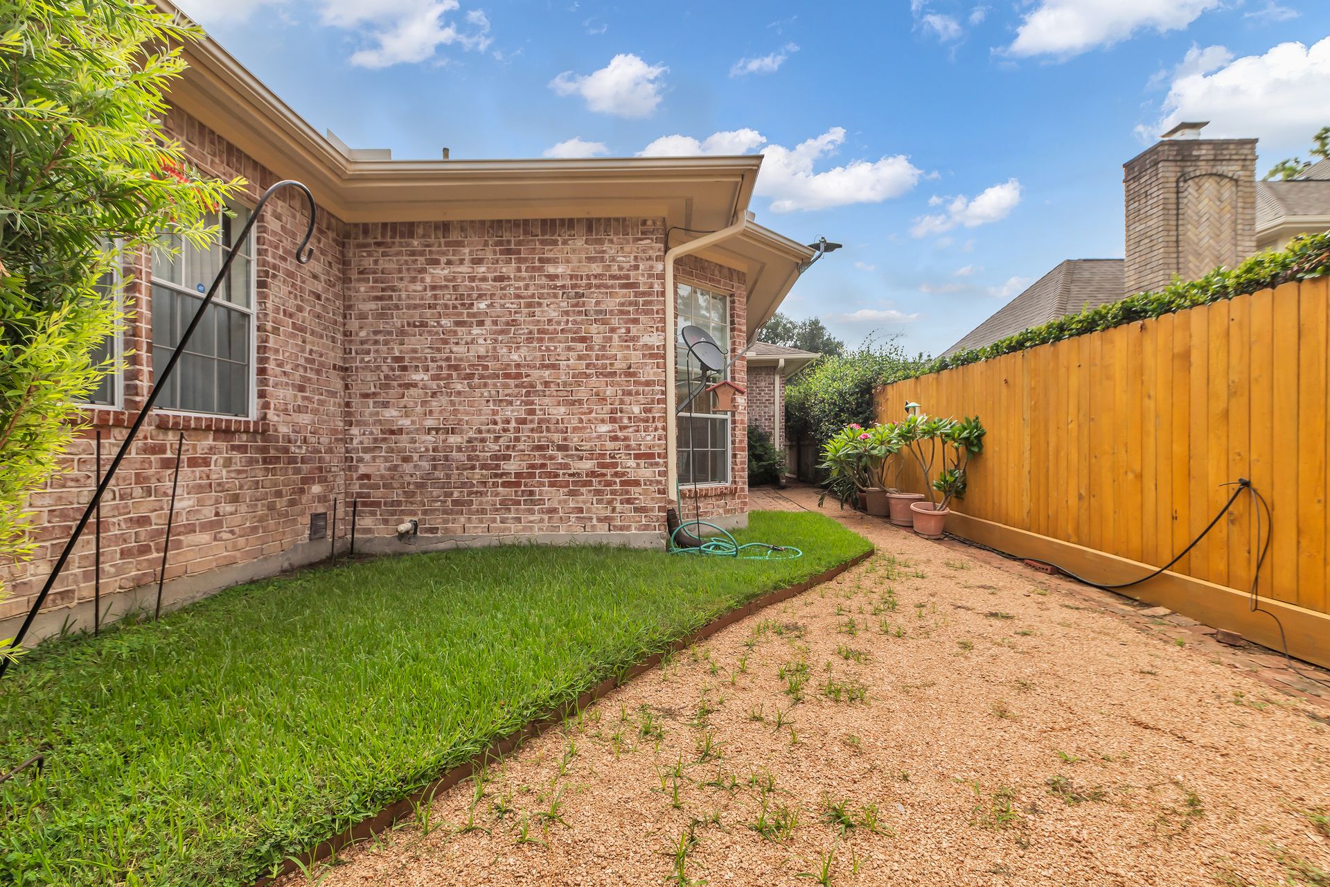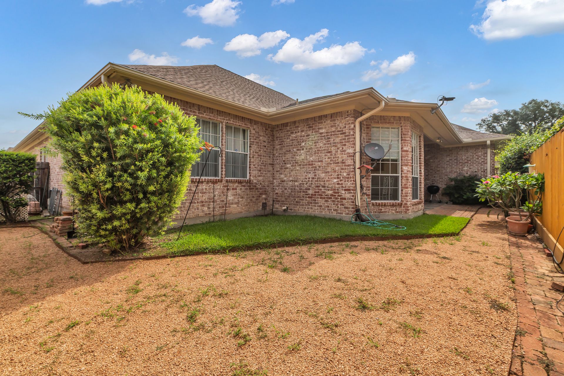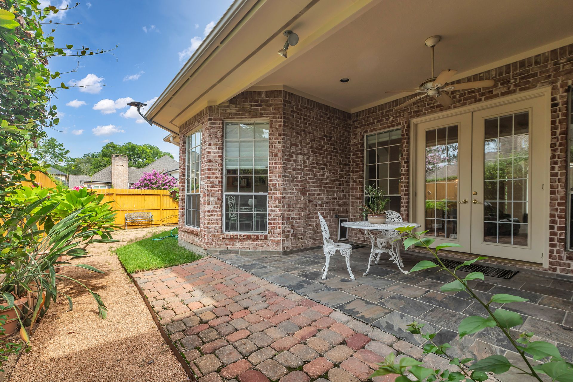 Experience refined one-story living in this custom-built all-brick home with stone cladding, ideally positioned on a corner cul-de-sac lot for both space and privacy. This three-bed, three-bath home features a flexible layout with a den and private study, perfect for work or relaxation. The open-concept design is accentuated by soaring ceilings, creating a light and airy ambiance in the entry, living, and dining areas. The guest suite to the left of the entry, with its en-suite bath, offers comfort and seclusion. The hall leading from the dining area provides privacy for the third bedroom, full bath, and den area. The expansive primary suite is a true retreat, boasting dual walk-in closets with custom-built-ins, a luxurious Jacuzzi tub, a separate shower, and a spacious vanity area. The double-car garage features three large closets and built-ins. Enjoy year-round relaxation on the covered back porch. A side yard includes a generator. This home is just a short distance from the Terry Hershey Trails.