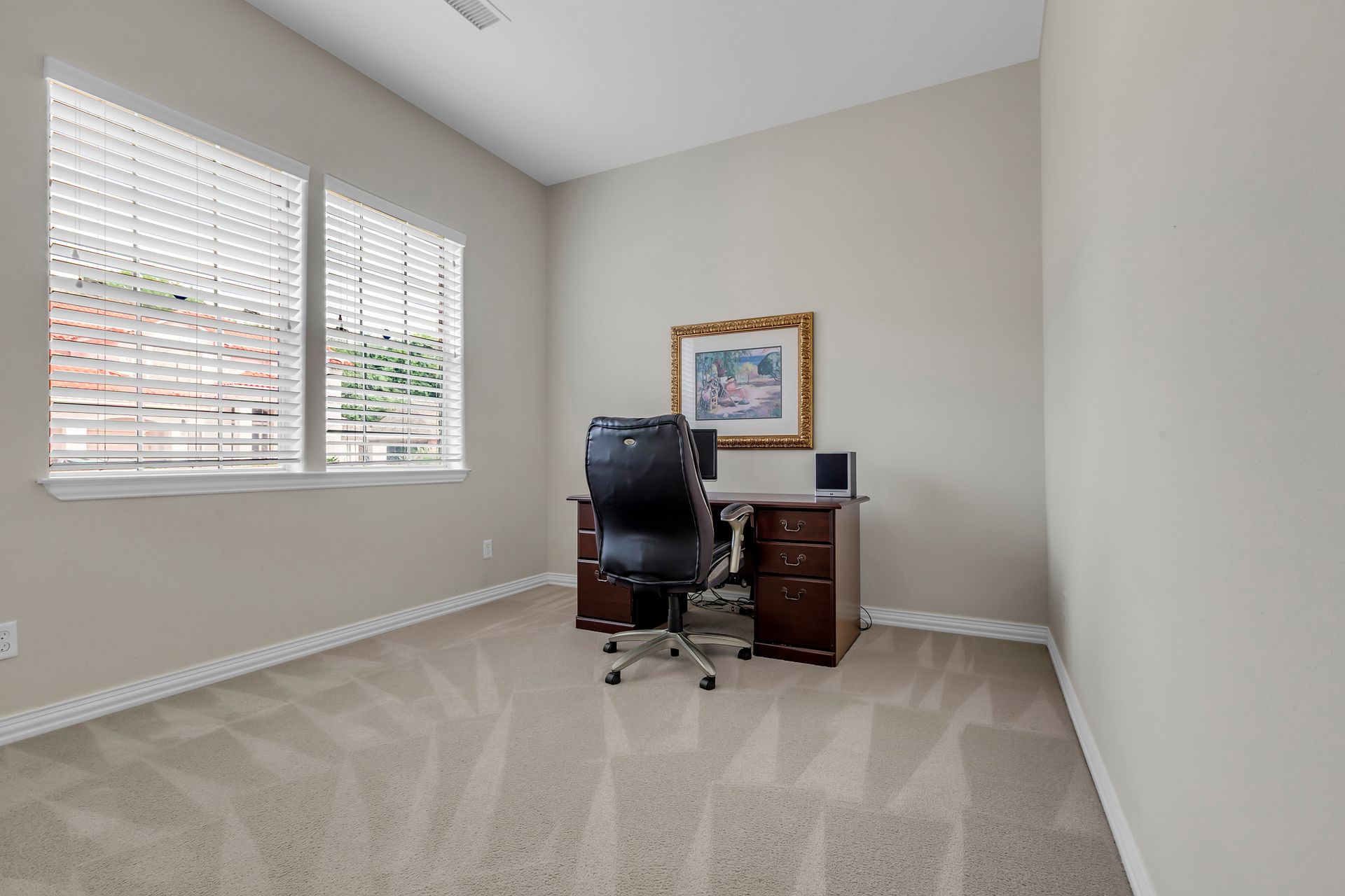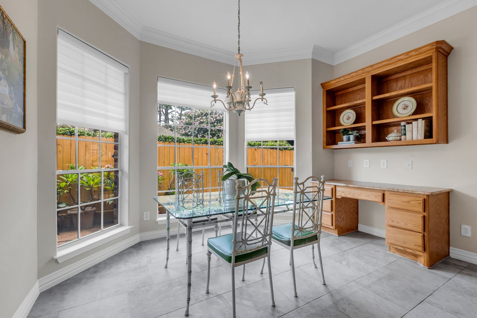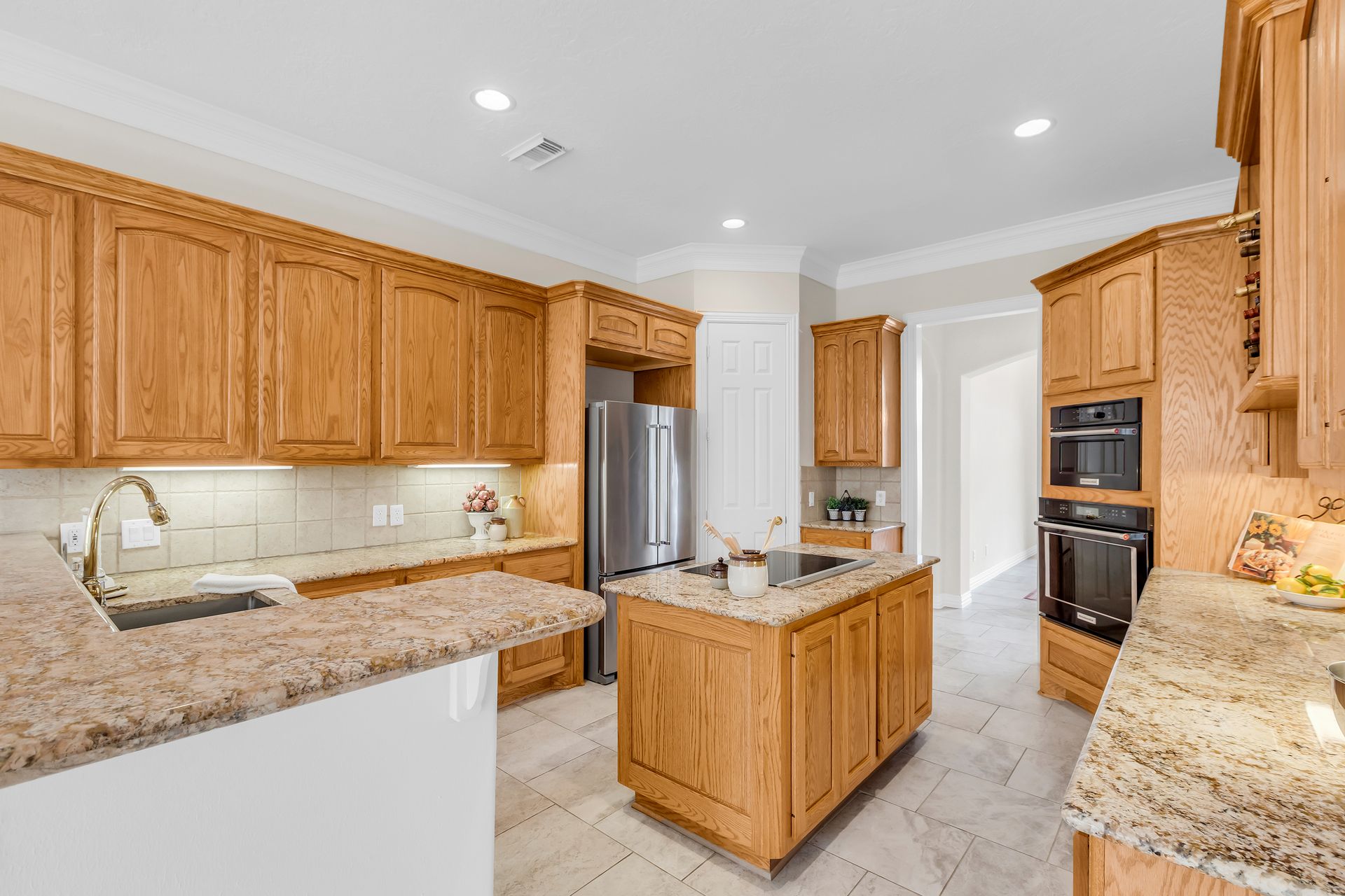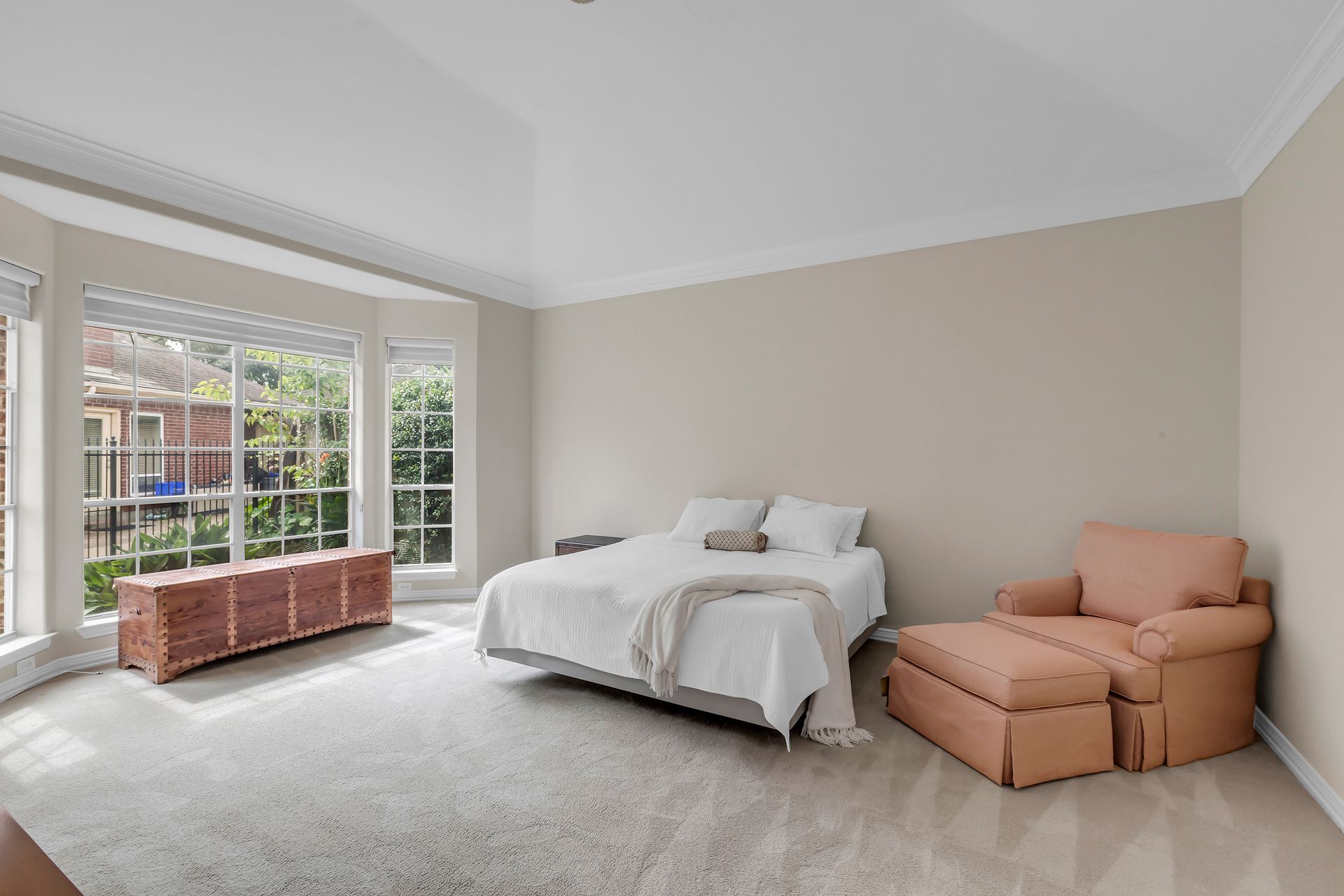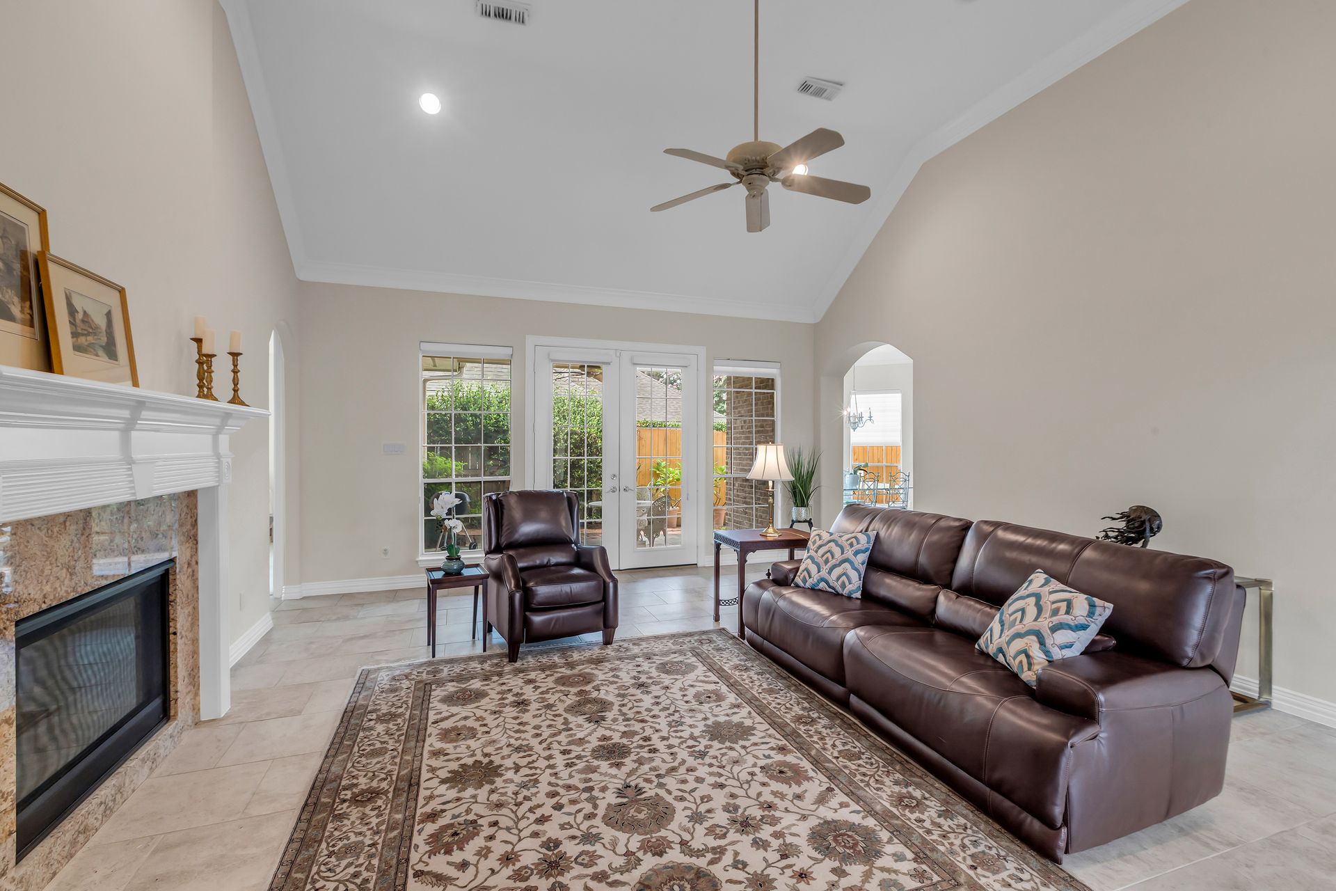 Experience refined one-story living in this custom-built all-brick home with stone cladding, ideally positioned on a corner cul-de-sac lot for both space and privacy. This three-bed, three-bath home features a flexible layout with a den and private study, perfect for work or relaxation. The open-concept design is accentuated by soaring ceilings, creating a light and airy ambiance in the entry, living, and dining areas. The guest suite to the left of the entry, with its en-suite bath, offers comfort and seclusion. The hall leading from the dining area provides privacy for the third bedroom, full bath, and den area. The expansive primary suite is a true retreat, boasting dual walk-in closets with custom-built-ins, a luxurious Jacuzzi tub, a separate shower, and a spacious vanity area. The double-car garage features three large closets and built-ins. Enjoy year-round relaxation on the covered back porch. A side yard includes a generator. This home is just a short distance from the Terry Hershey Trails.