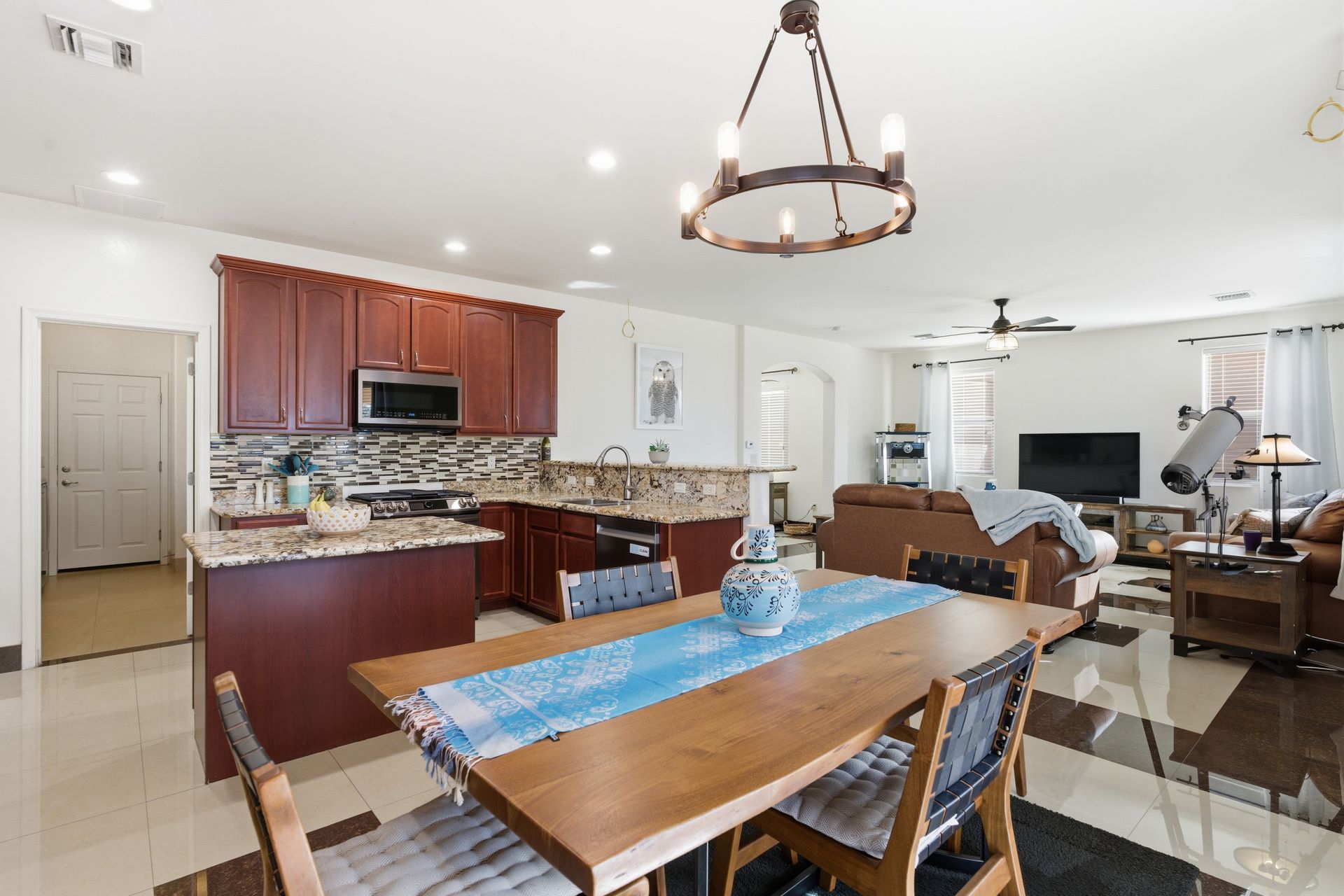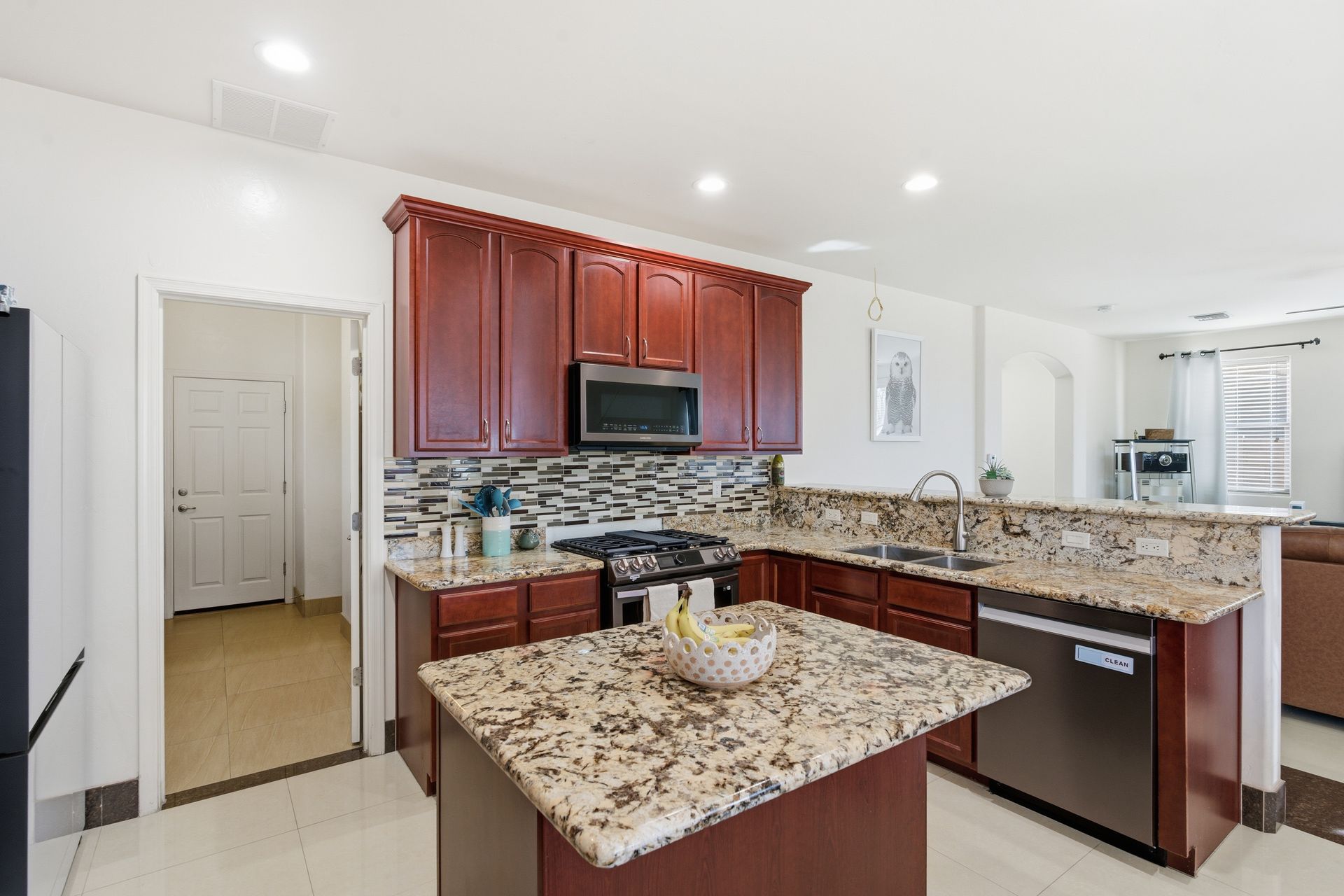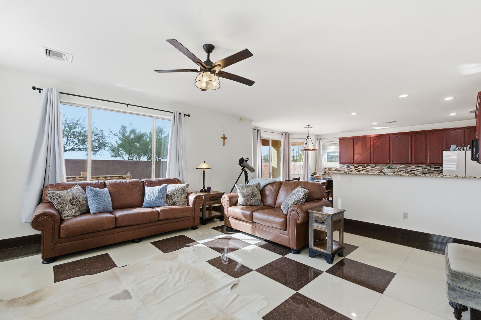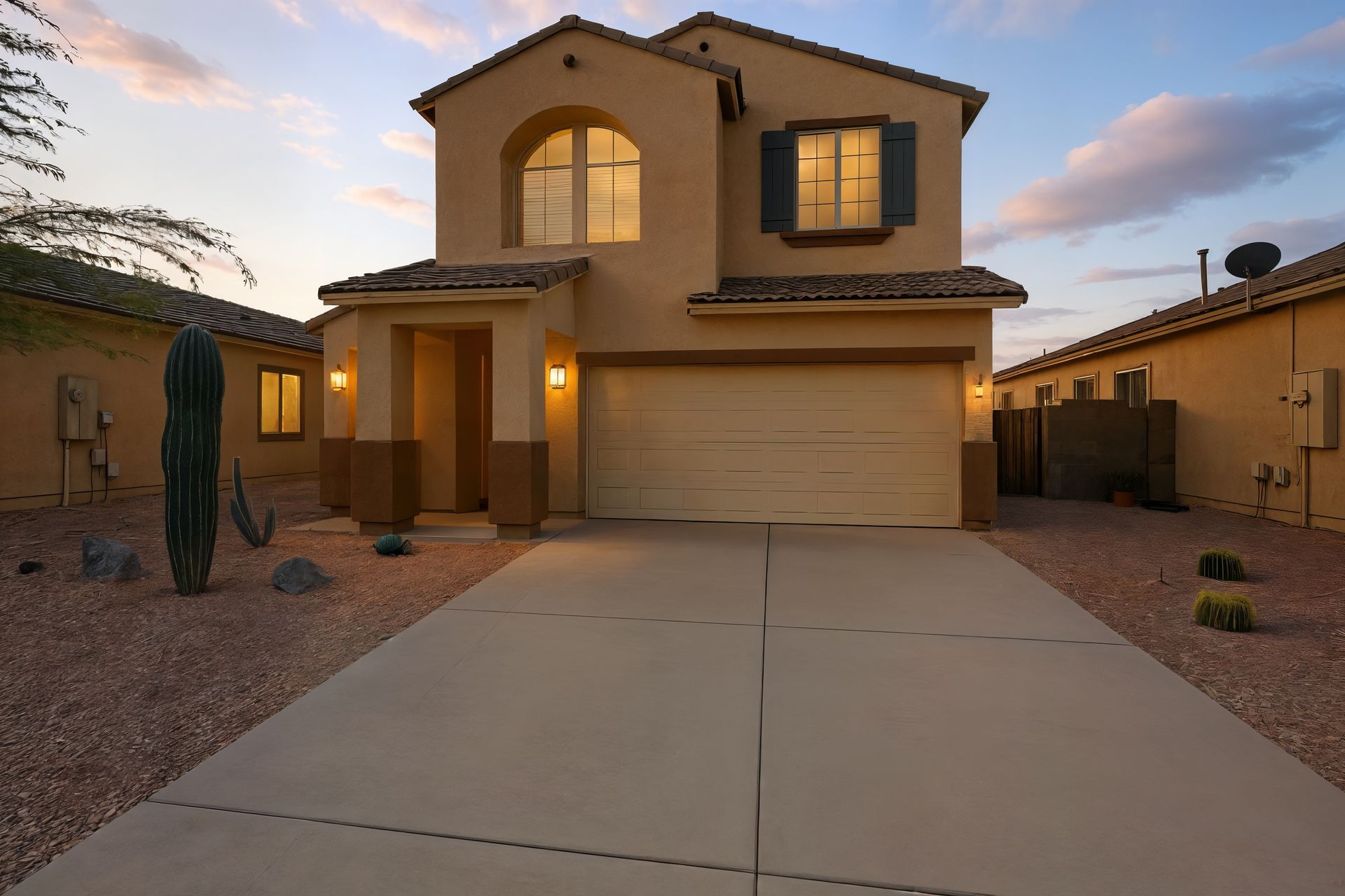 Welcome home to this stunning two-story residence in the heart of Oro Valley, where majestic mountain views frame everyday living. Thoughtfully designed and beautifully maintained, this home features a custom-landscaped backyard that offers both serenity and style—perfect for relaxing evenings or outdoor entertaining. Inside, you'll find 3 spacious bedrooms plus a large loft that provides the ideal flex space for an office, game room, or cozy retreat. The main level is free of carpet, offering a clean, modern feel throughout the open living areas. The gourmet kitchen is a true centerpiece, showcasing granite countertops, a brand-new gas stove, and a designer flat-front refrigerator. A huge walk-in pantry adds exceptional storage and convenience for the home chef. Bonus 2.5 car garage.