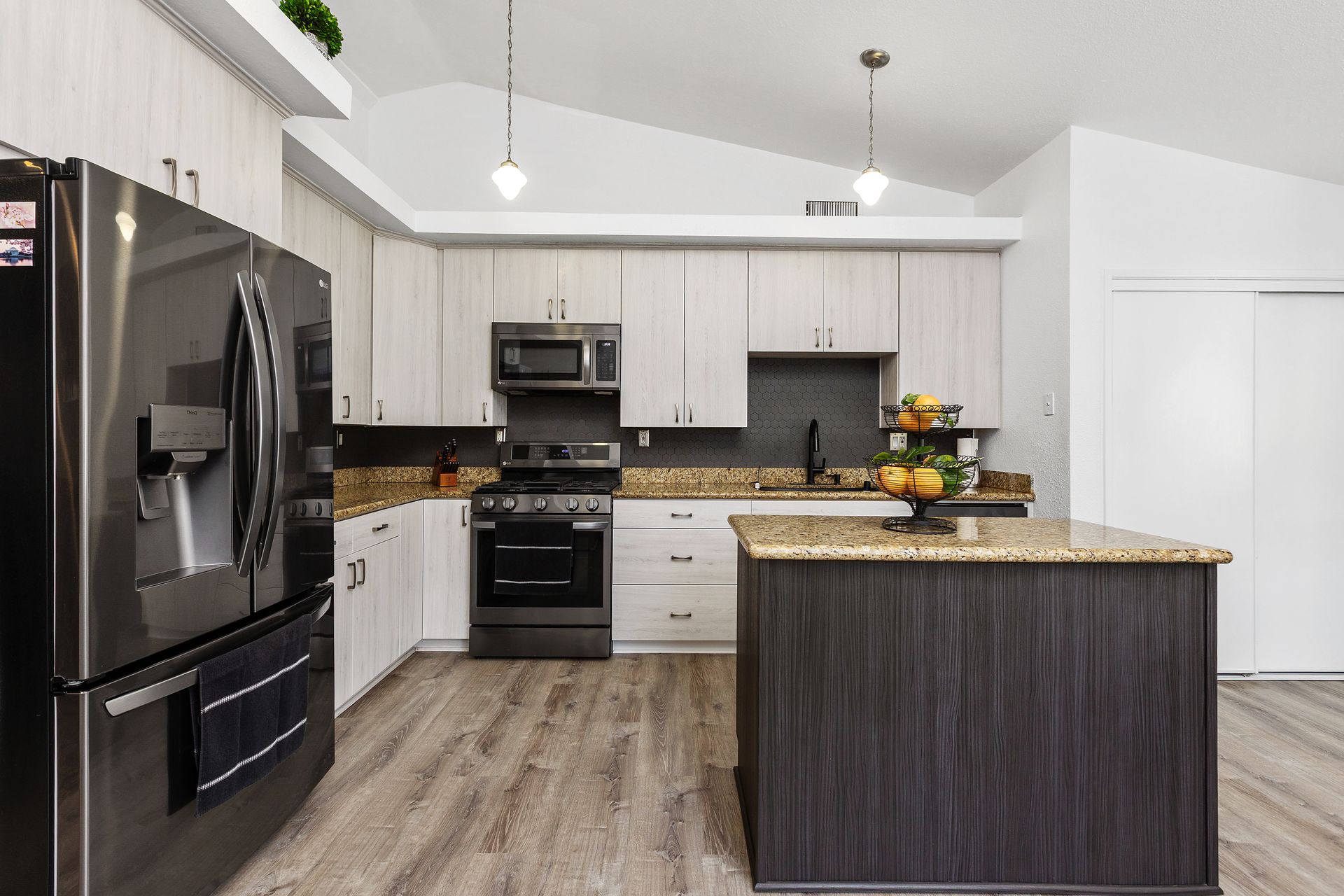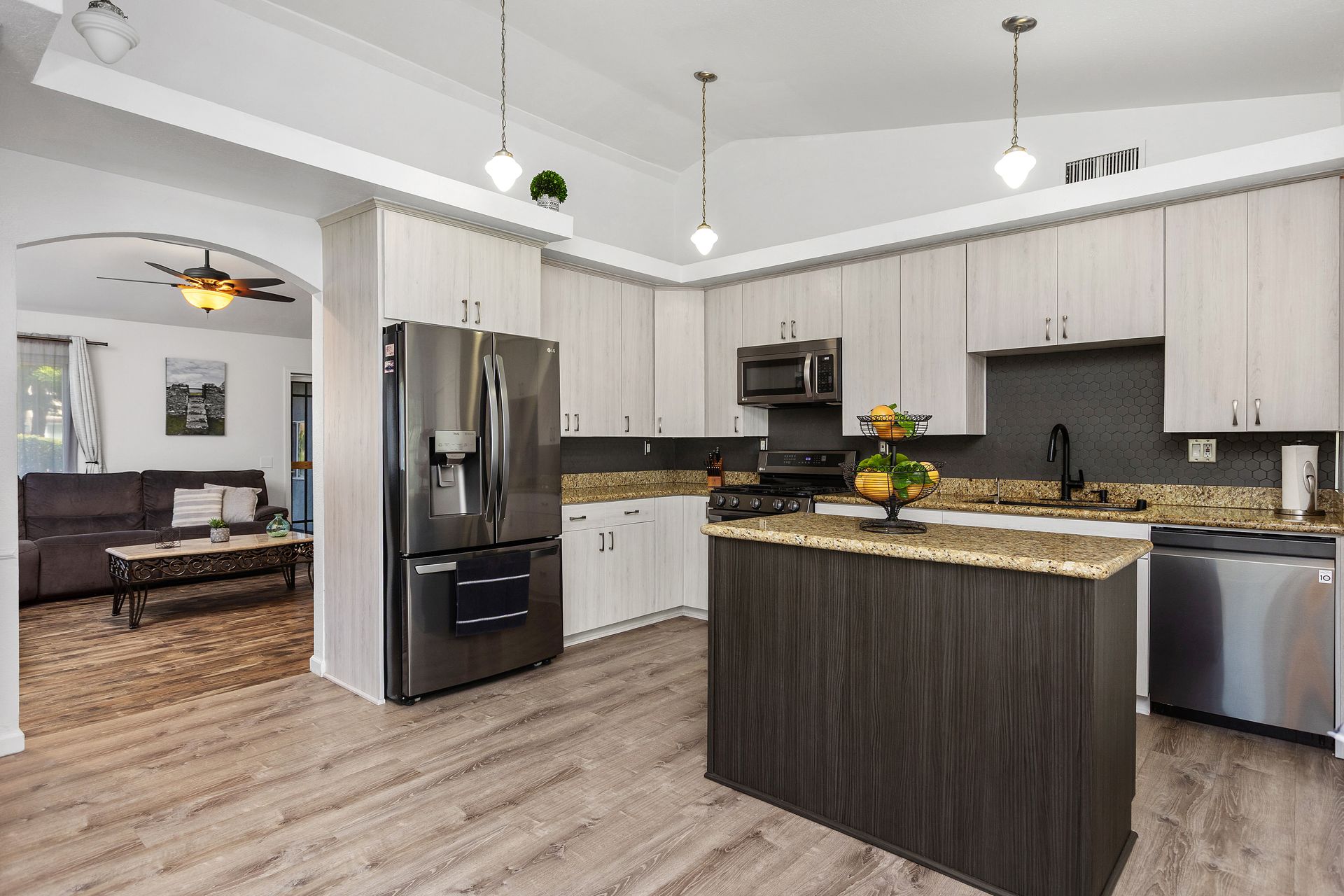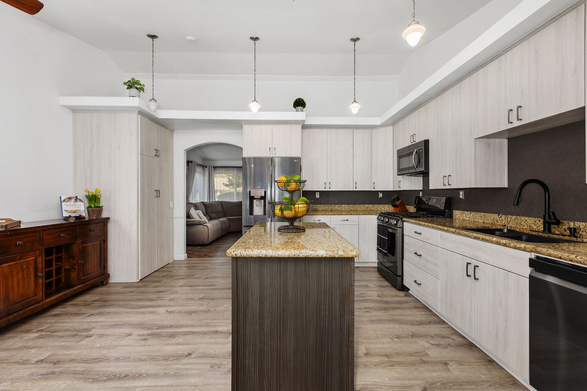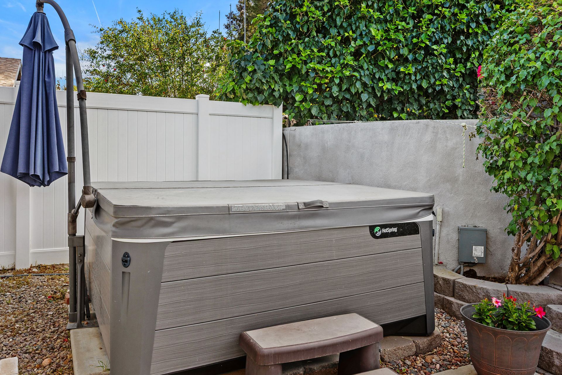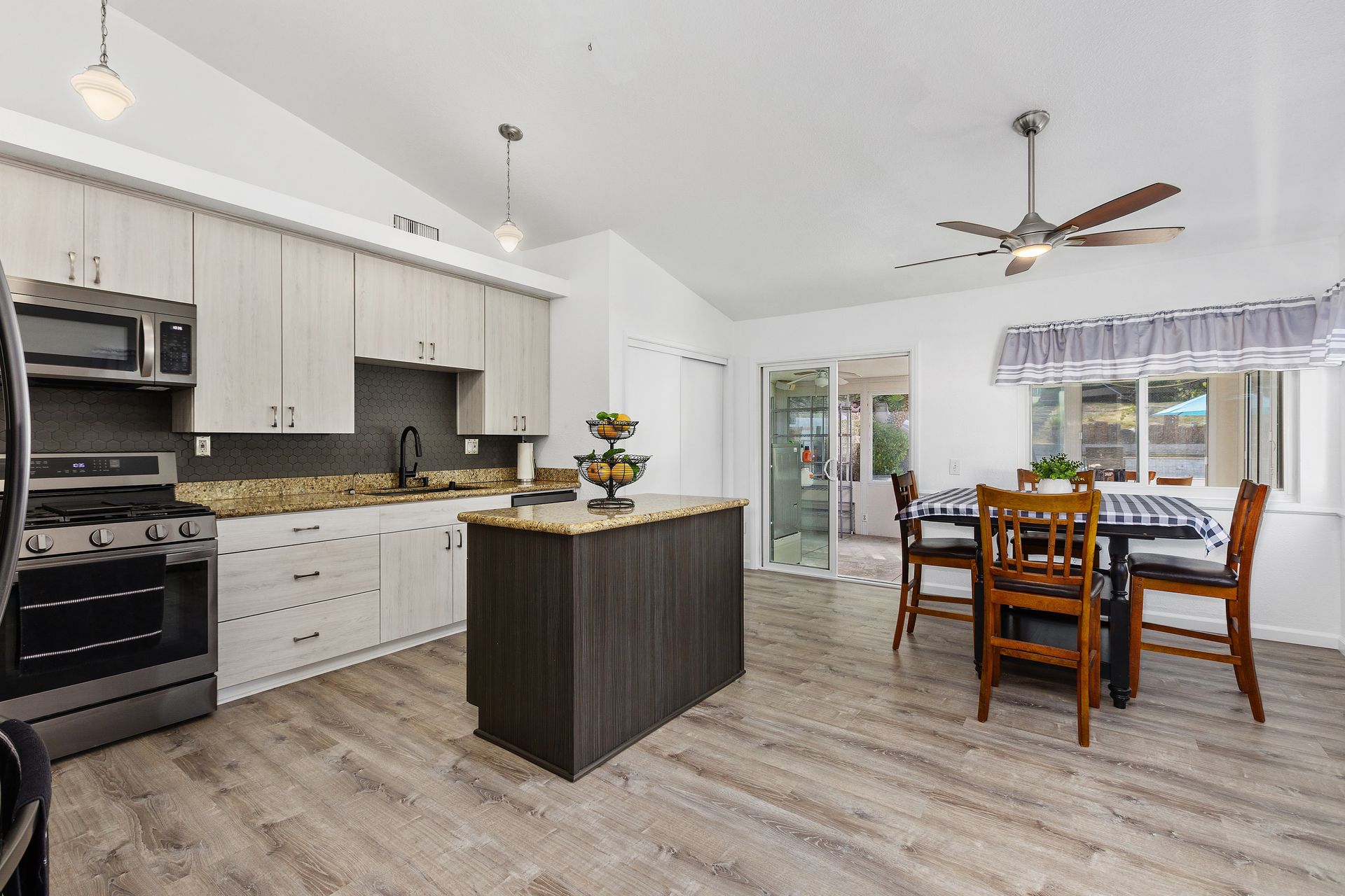 Experience resort-style living in this exceptional single-story, four-bedroom, three-bathroom home located in a highly sought-after neighborhood. Situated on nearly a quarter-acre lot, this property offers an expansive feel with breathtaking mountain views and a backyard designed for ultimate entertainment. Enjoy peace of mind with significant recent updates, including an HVAC system, tankless water heater whole house fan and kitchen that were all tastefully replaced and upgraded within the last five years. The home is built for year-round comfort and efficiency, featuring owned solar to help eliminate high electric bills, dual-paned windows, a solar attic fan, and a whole-house fan installed about four years ago for natural cooling. Additional high-value improvements include a soft water system and a recently replaced fence, both completed within the last five years. You will also find a versatile enclosed sunroom perfect for a home office, playroom or gym.