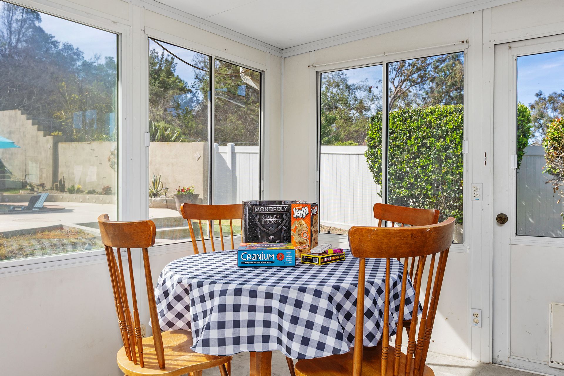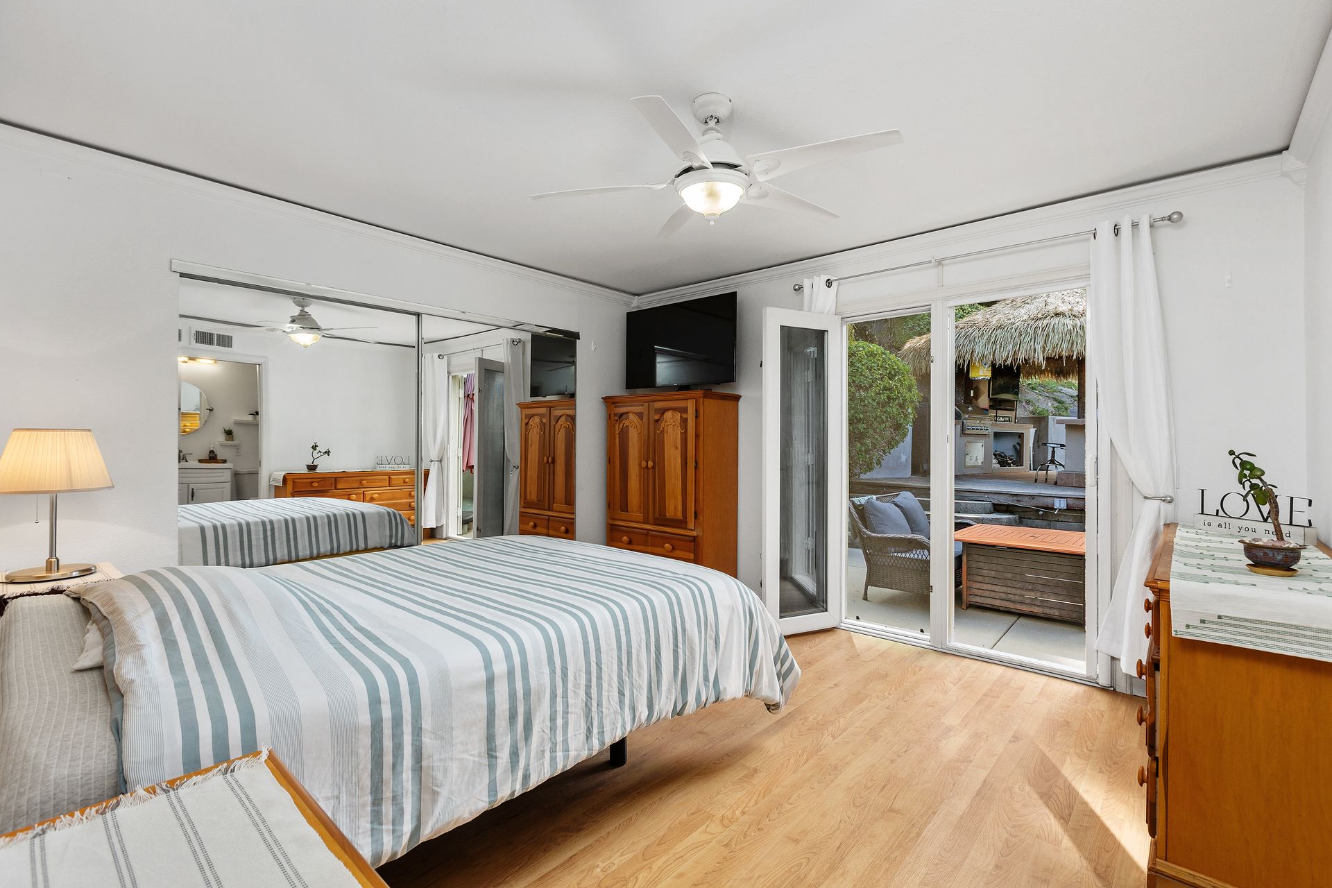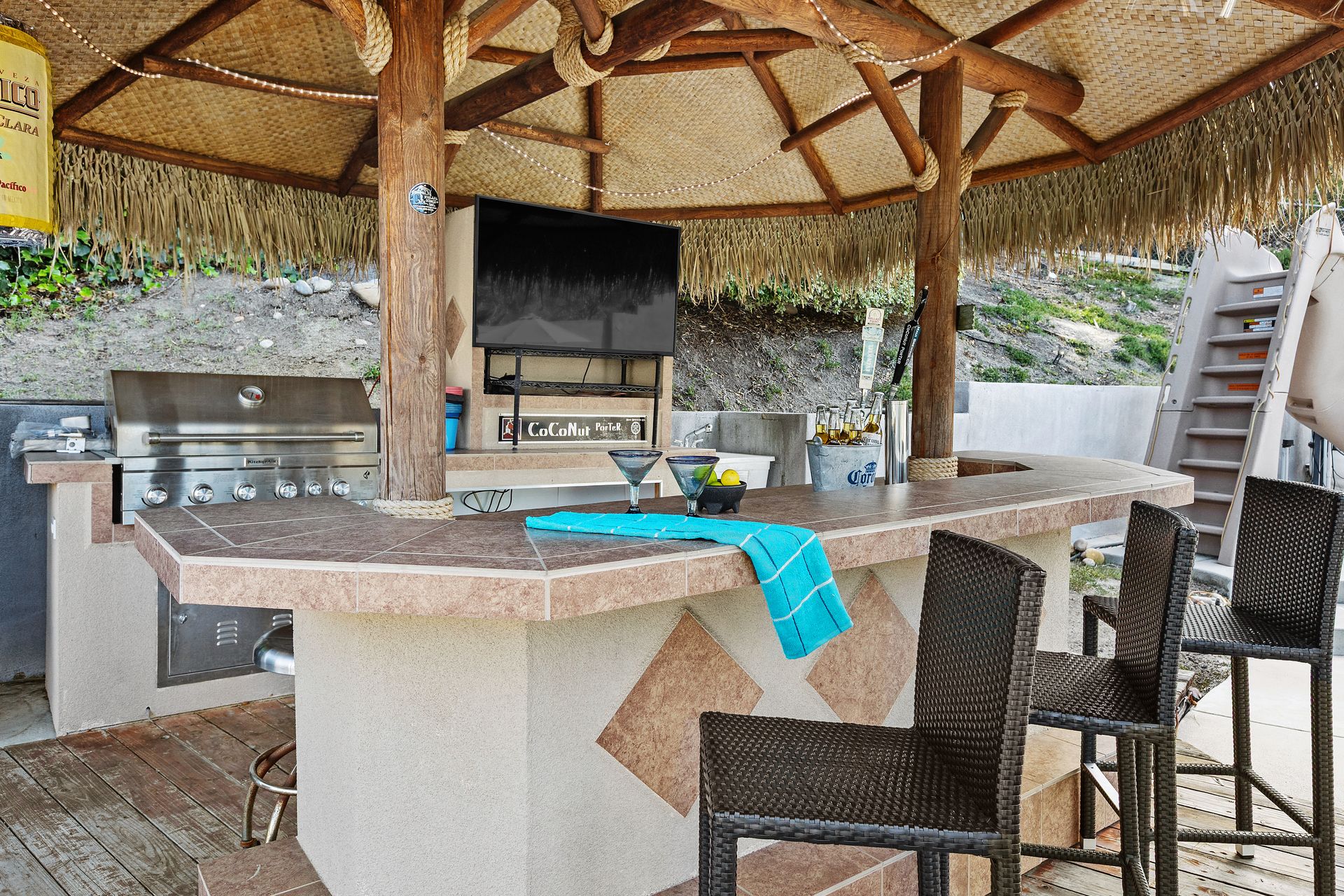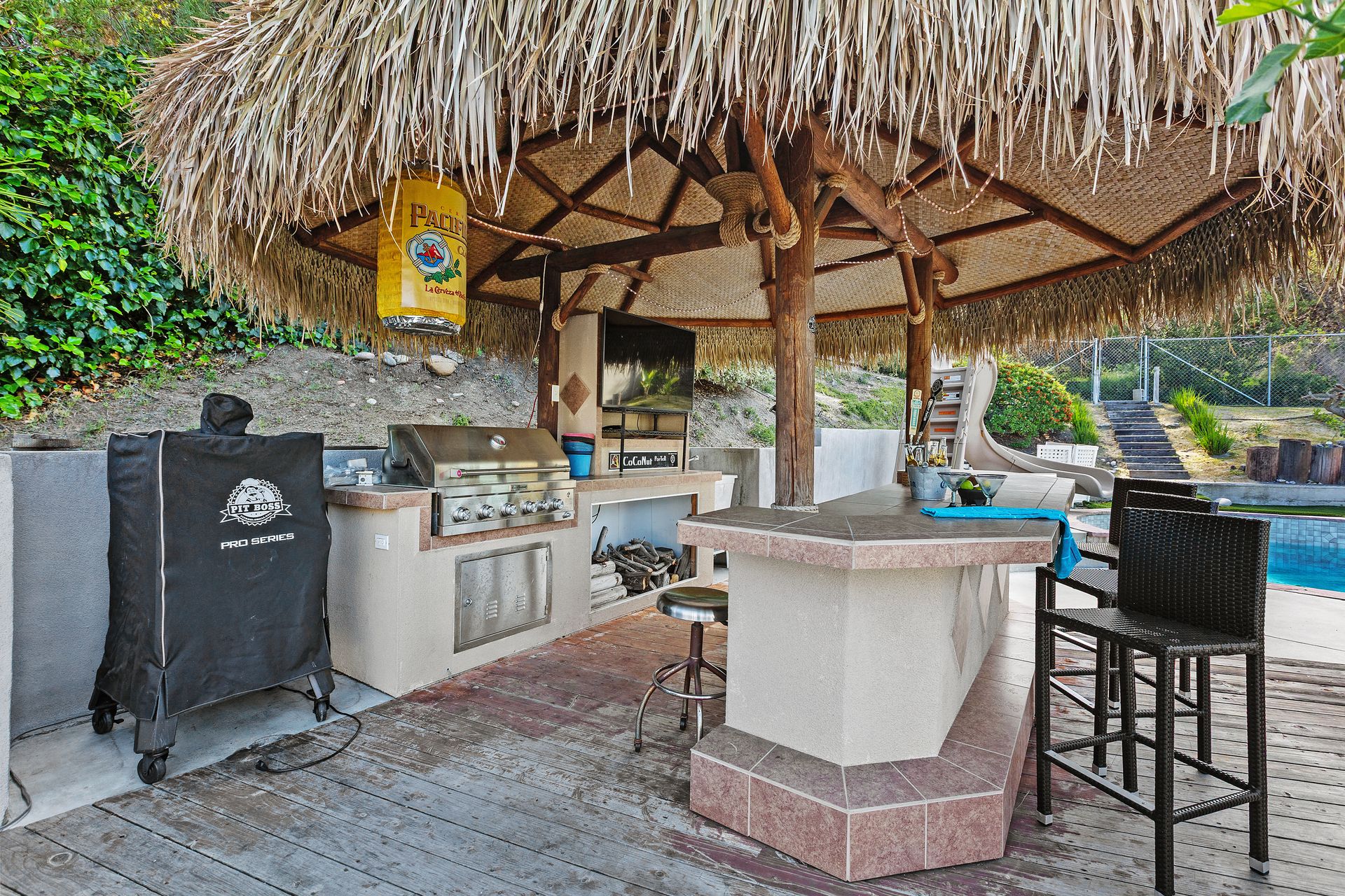The backyard is a true entertainer’s dream, meticulously designed to be the standout feature of the home. You will find a beautifully constructed 15-foot palapa shading a custom outdoor kitchen with a bar and grill, alongside a refreshing salt water pool featuring a "Shamu" Baja shelf, umbrella holder, and a massive slide for endless summer fun. Relax in the above-ground spa or harvest fresh fruit from your own urban orchard of mature lemon, grapefruit, and fig trees. The property also includes a converted garage that provides flexible space for a guest suite or hobby room with a full bathroom nearby. Perfectly located within the boundaries of the award-winning Poway Unified School District, this one-of-a-kind retreat is just minutes from premier shopping, dining, and easy freeway access.