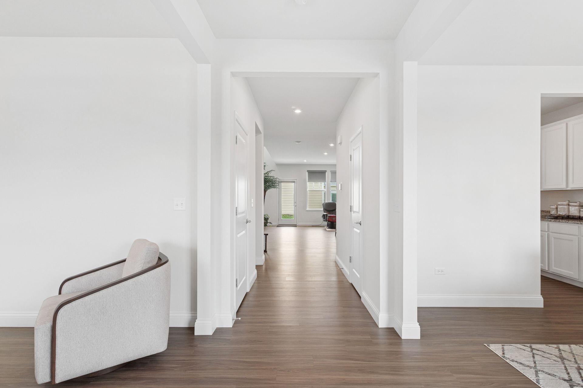 ALREADY BUILT AND READY TO MOVE IN. This Melrose floor plan sits on a stunning corner lot with upgraded exterior in the Reserve collection at Bronk Farm! Designer features include recessed lighting in the Great Room, Kitchen, Cafe, Foyer, Entry, Loft and Hallways and luxury vinyl wood plank flooring throughout the first floor. The kitchen leads right into a sun drenched 2 story great room that offers large windows, stunning wrought iron railing stairway, perfect for gathering and entertaining. The kitchen thoughtfully flows into the dining room with a butler pantry, perfect for your special occasions or extra storage of kitchen equipment. 2 additional flex spaces on the first floor that can be used as a formal living, office, bedroom, gym, golf simulator, etc. Convenient kitchen office that is perfect for homework or shopping lists leading into the garage. The 2nd floor offers 4 bedrooms each with access to 3 full baths. Relax after a day of golf or shopping in your owner's suite with a private bath and a luxurious soaking tub, separate shower and a large walk-in closet. Jack and Jill bath with double bowl vanity adjoining two bedrooms and a Princess Bath within another. ADDITIONAL space is available behind the 4th bedroom that can be opened up and used as an additional room, closet, office, or gallery looking down to the family room. Enjoy the convenience of an ample sized 2nd floor laundry.There is a 2-car side load garage with additional dog room. This home features an additional 1,600+ Sq. Ft. unfinished 9' basement with bath plumbing rough-in. Desirable Plainfield North High School 202 School District. Bronk farm offers a vibrant lifestyle offering a clubhouse and pool. Minutes away from Rt. 59 which includes a variety of stores ranging from grocery, shopping, dining and more. Easy access to I-55 and Plainfield Downtown!