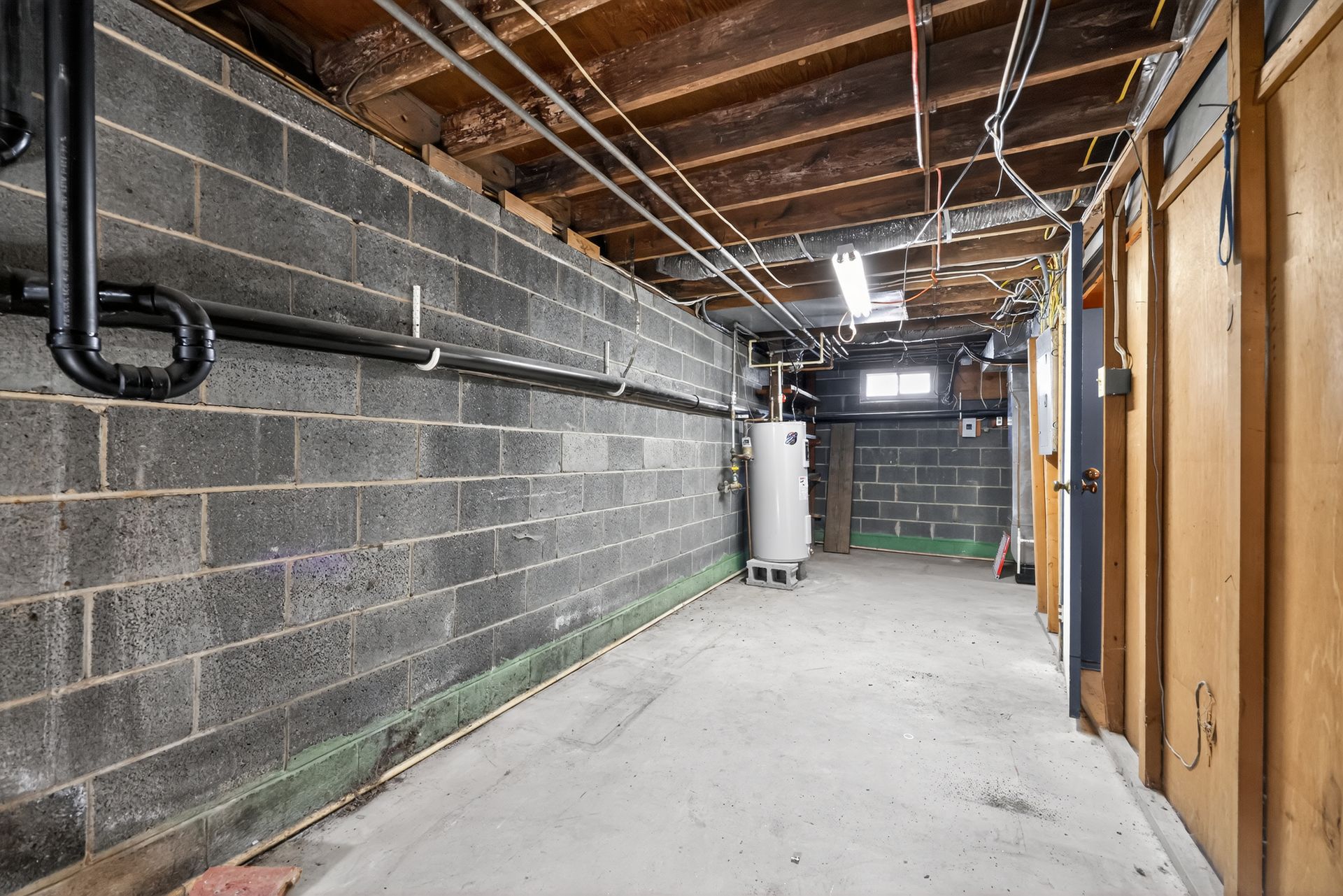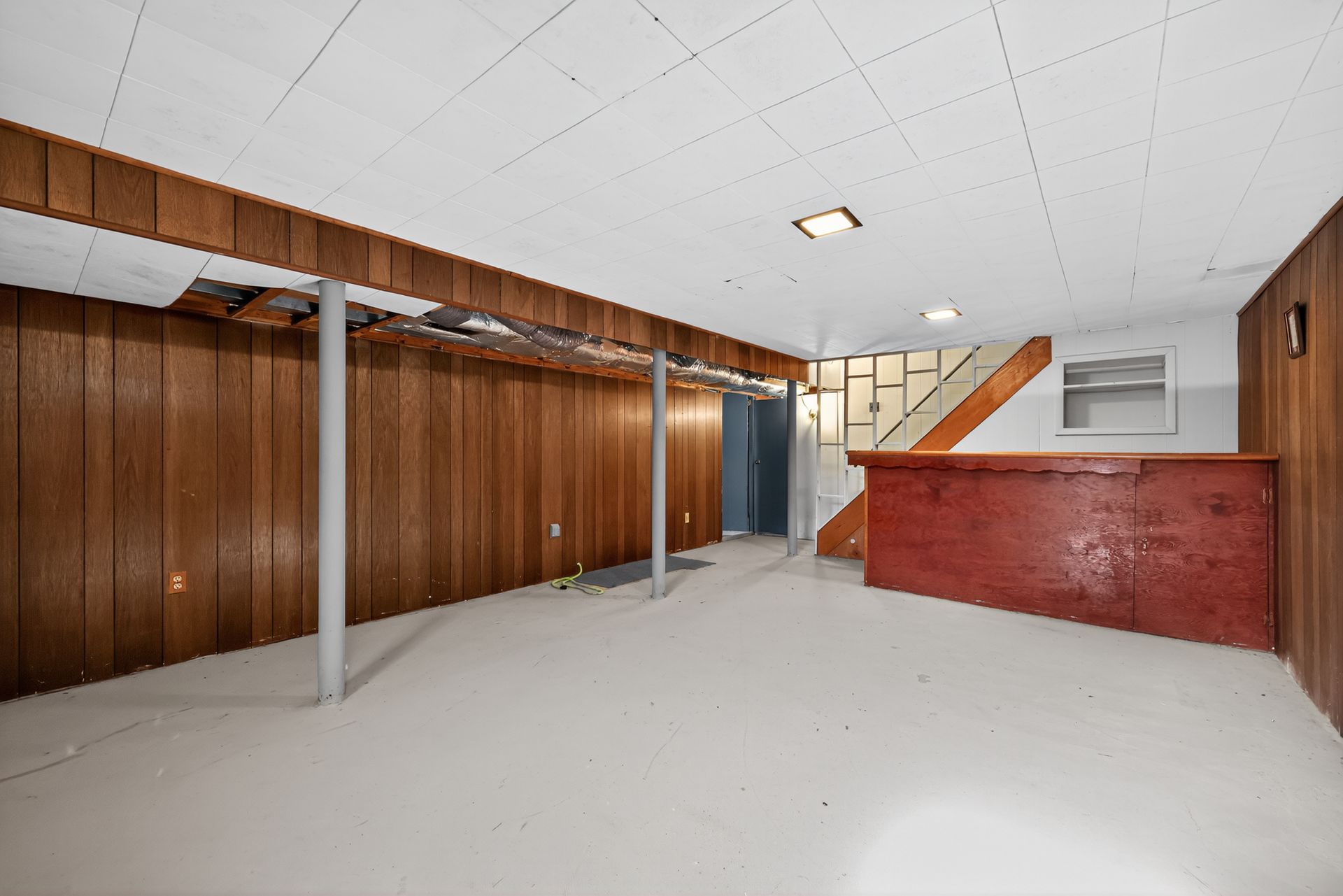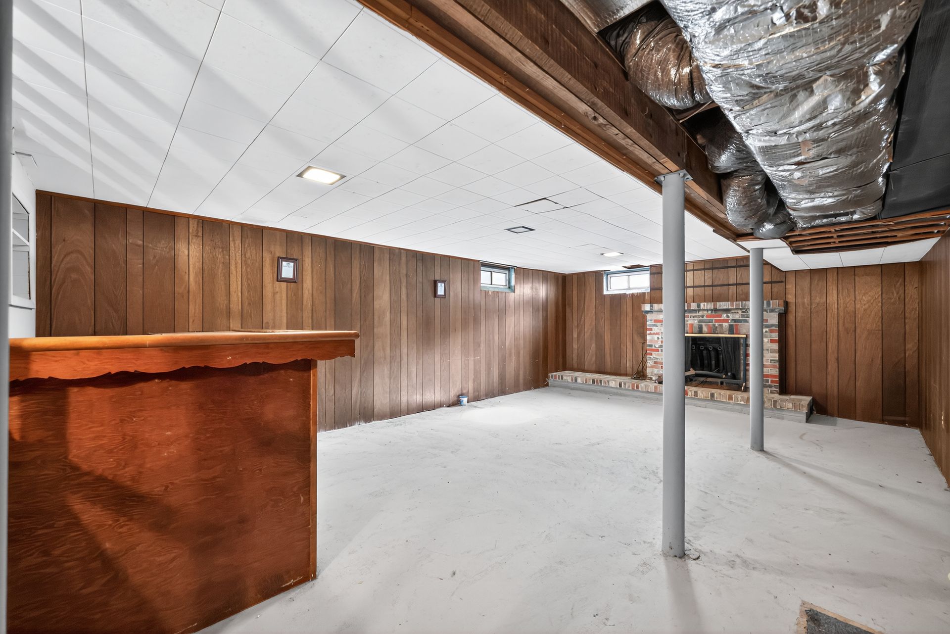 The full basement offers even more living space with a large entertainment room complete with a fireplace and built-in bar—perfect for cozy nights in. A workshop, utility area with central HVAC, and additional storage round out the lower level.