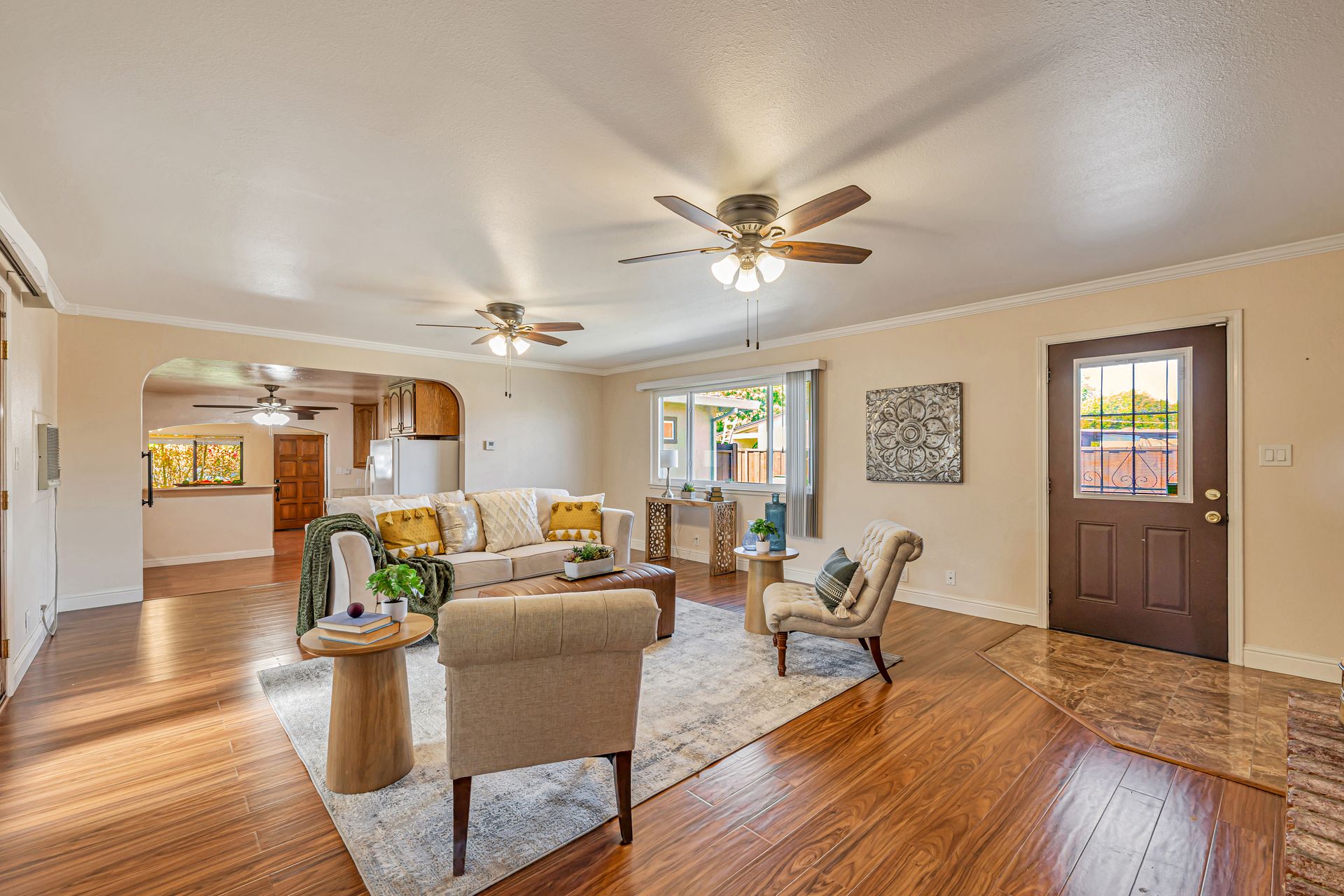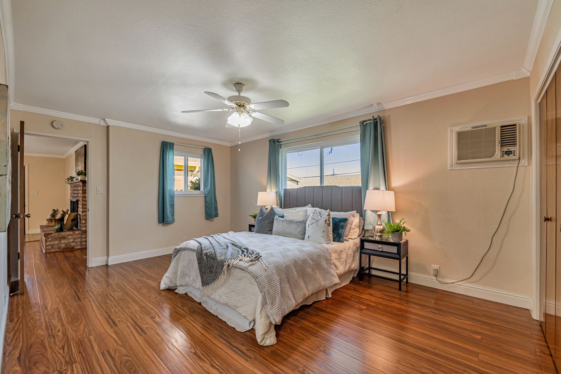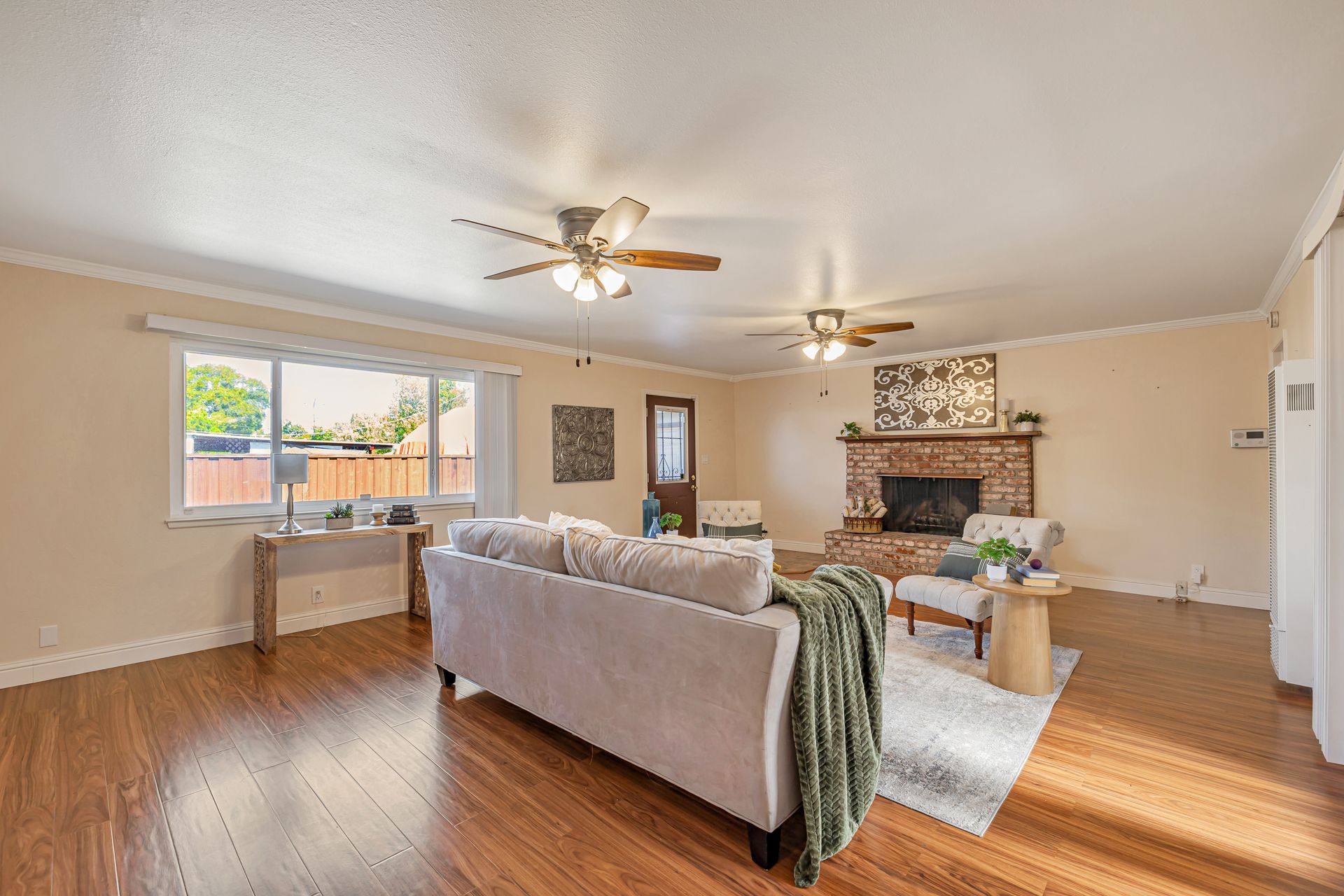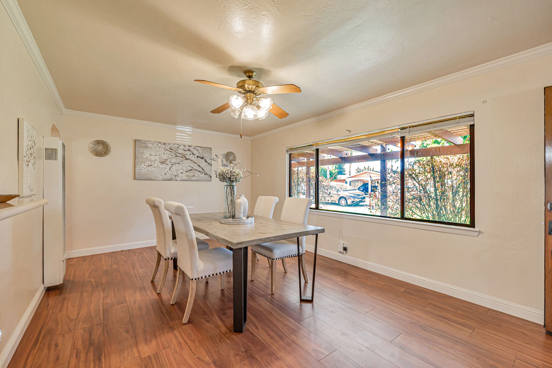 First time ever on the market with one homeowner. This amazing home shows pride of ownership and has been meticulously maintained. Welcome Home to this spacious, approximately 1,962 square foot home in the vibrant city of San Jose, Capital of the Silicon Valley. This amazing home features four bedrooms and offers the convenience of having more than one bedroom on the ground floor, which is ideal for versatile living arrangements. The home boasts two full bathrooms, with options including a primary stall shower and a shower over tub combination. The well-appointed kitchen is complete with a gas cooktop, oven range, dishwasher, refrigerator, and microwave. This spacious home is ideal for entertaining; it seamlessly connects to the family room, creating an inviting space for gatherings. The dining area includes a breakfast bar and is integrated into the formal dining room. The flooring throughout the home is a blend of wood-grain laminate and tile, ensuring durability and easy maintenance. Cozy up in the living area with a fireplace, providing warmth and ambiance. Additional amenities include a utility room with laundry facilities and a two-car garage. Enjoy outdoor living with an existing pergola, ideal for relaxation or entertaining. This is a home not to be missed and is move-in ready.