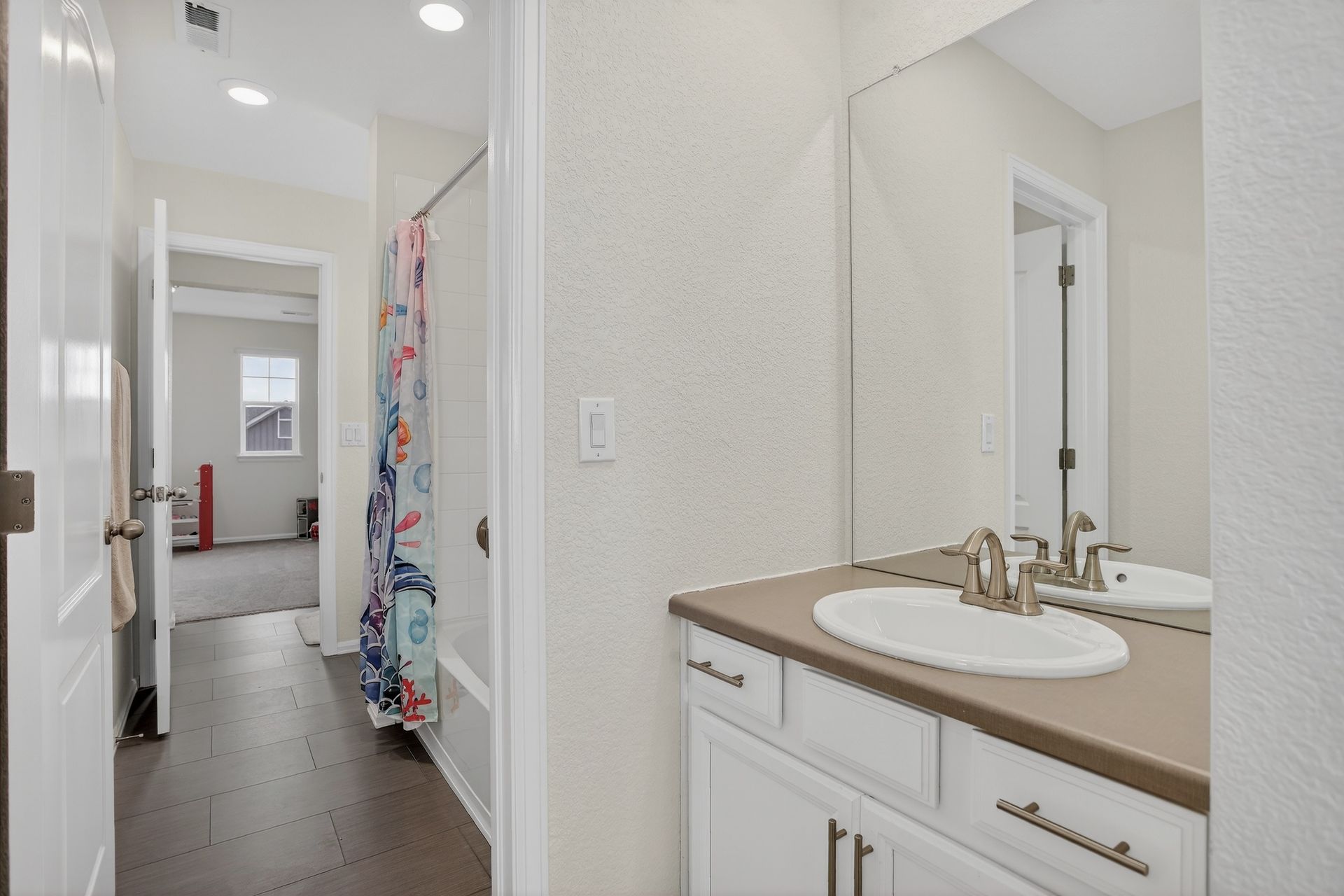 Move-in ready 2-story that backs to a 5-acre parcel! This home features 9' ceilings and LVP throughout the main level...expansive views out the wall of windows in the large living and dining rooms...kitchen with 42" white cabinets with crown molding, granite counters, subway tile backsplash, counter bar island with SS sink and decorator pendant lighting, corner pantry, ample recessed lighting and all SS appliances including gas range and newer touch screen French door fridge... 10'X6' built-in desk area off the garage...office/flex space overlooking the covered front porch...and convenient powder bath with pedestal sink. Upstairs, you'll find the 15'X15' primary suite with window wall and serene views, tray ceiling and ensuite bath with double sinks, lowered makeup vanity, roomy shower and 7'x10' walk-in closet...3 large additional bedrooms...one with an ensuite full bath, and two with walk-in closets and an expanded connecting Jack & Jill bath...and laundry room. The 1,216sqft unfinished basement offers 9' ceilings, bath rough in, dual AC systems and so many possibilities for finishing the space. Outside, you'll enjoy all the amenities of the thoughtfully landscaped backyard...17'X10' covered deck with custom live edge bar top, sun shades and rolling gate (perfect to help manage small children or pets)...multi-level stamped concrete patio...several water features...dog run...automated landscape lighting...and shaded front porch for those hot summer afternoons. 3 houses down from the playground at Gold Creek Valley Park, .6 miles to Walmart and less than 2 miles to the center of the Town of Elizabeth, too!