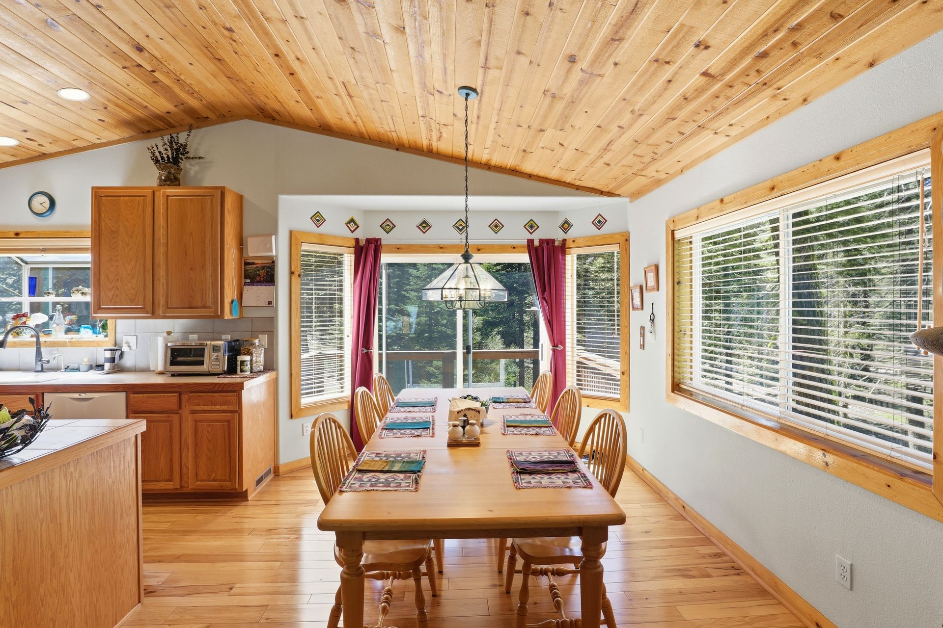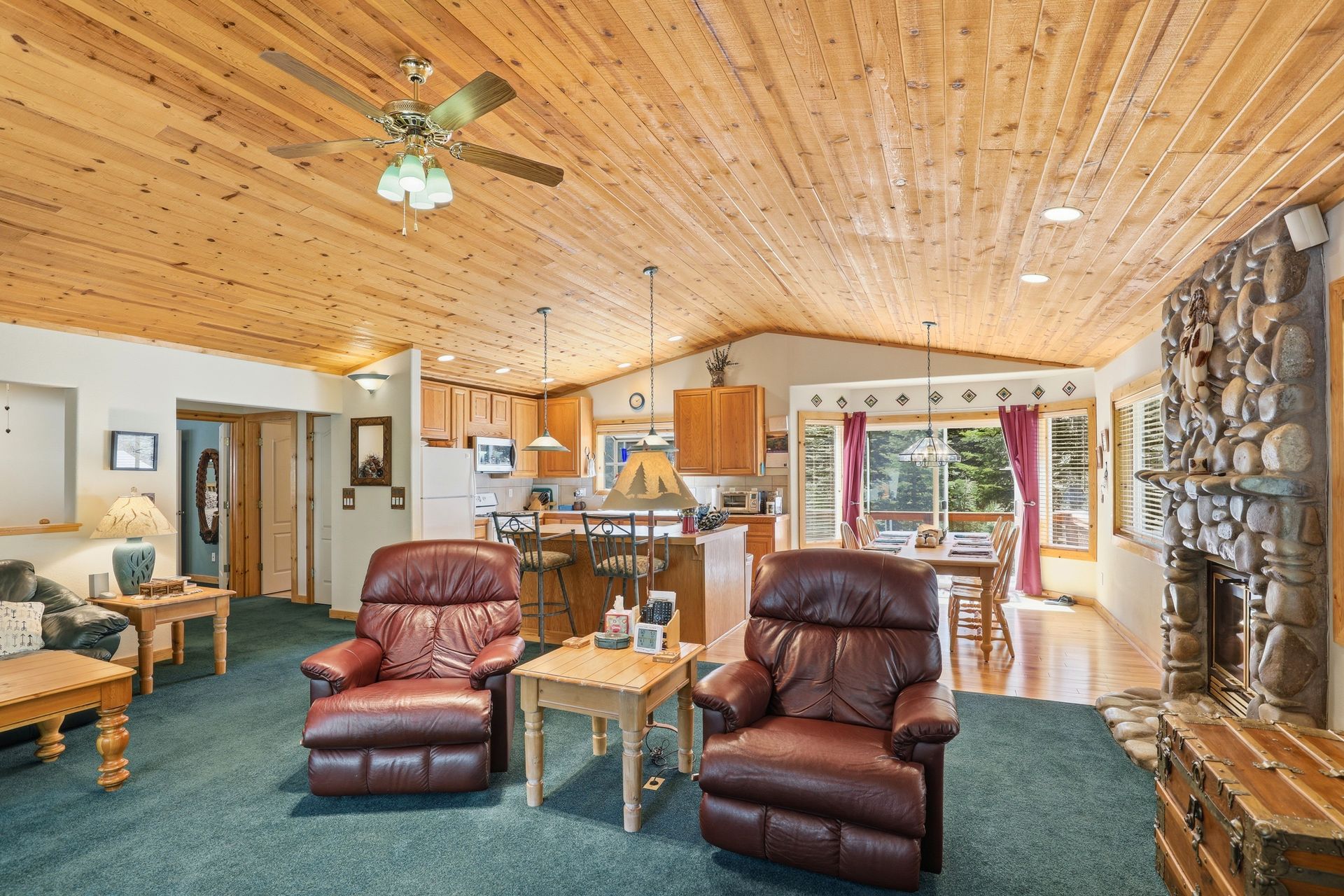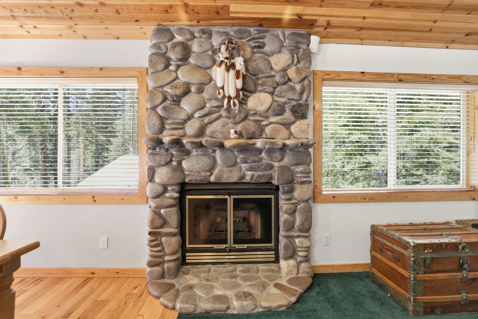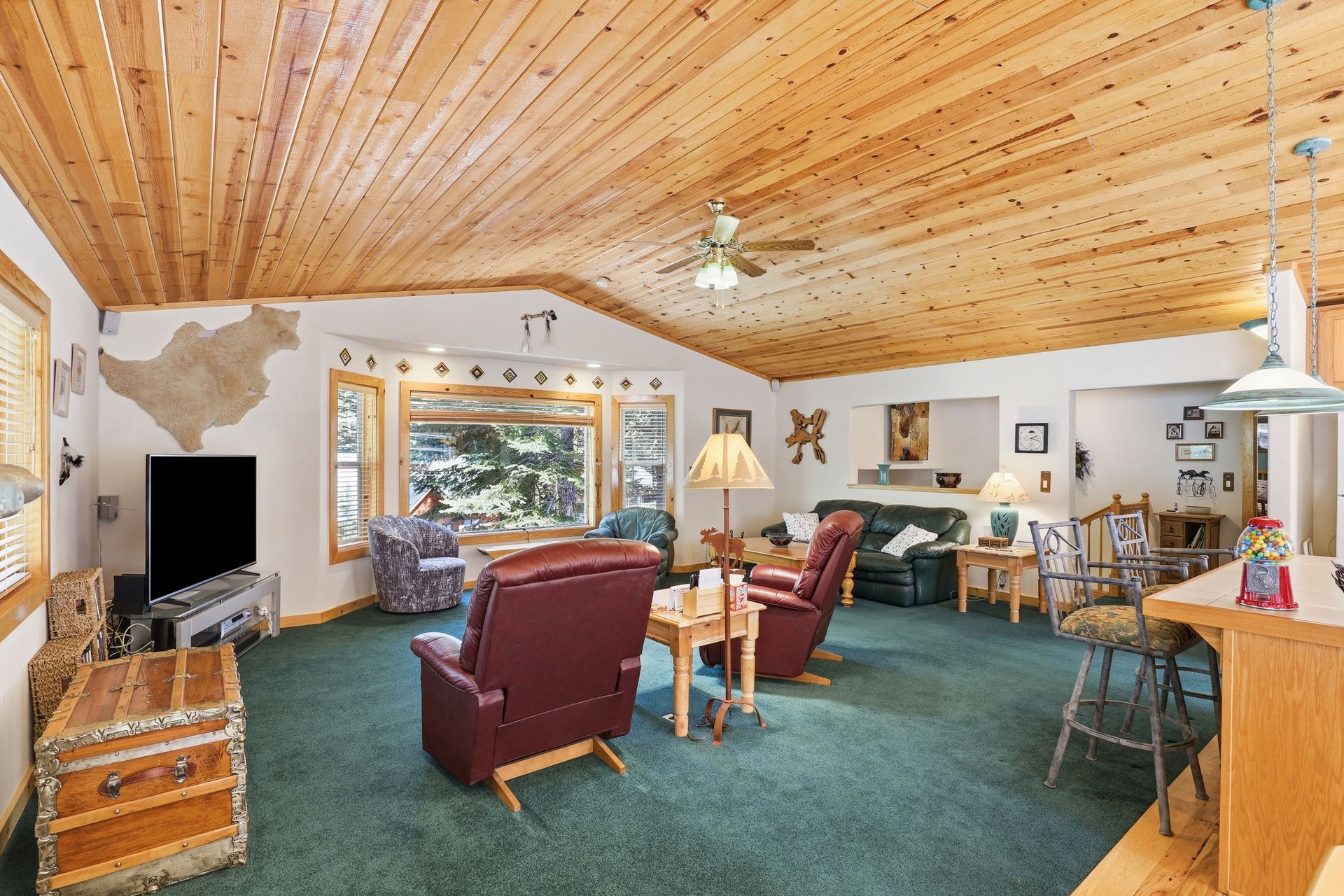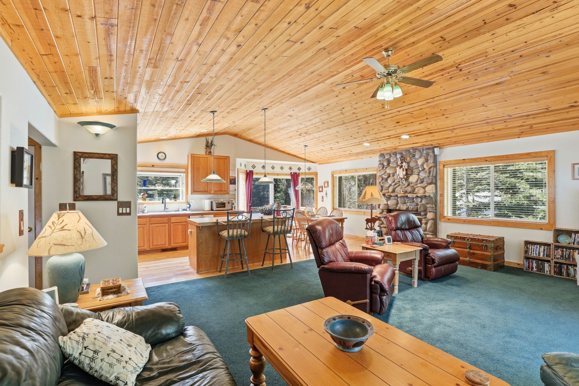 Pride of ownership is evident throughout this meticulously maintained Tahoe retreat. The original owner has occupied the home for personal use and never rented it. Nestled among towering trees and backing to hundreds of acres of open space, the property offers direct access to expansive backcountry trails—an ideal setting for year-round outdoor recreation and peaceful mountain living. Hiking, mountain biking, cross-country skiing, and snowmobiling begin right at your doorstep. Two generous decks provide the ideal vantage point to unwind, complete with a tranquil water feature and expansive forest views. Inside, the open living, dining, and kitchen area is both warm and inviting, highlighted by vaulted pine ceilings, a striking river rock wood-burning fireplace, and abundant windows that bring the outdoors inside. The home features four spacious bedrooms, two and one-half baths, and a thoughtfully designed layout that balances comfort with functionality—ideal for both peaceful retreats and lively gatherings.
