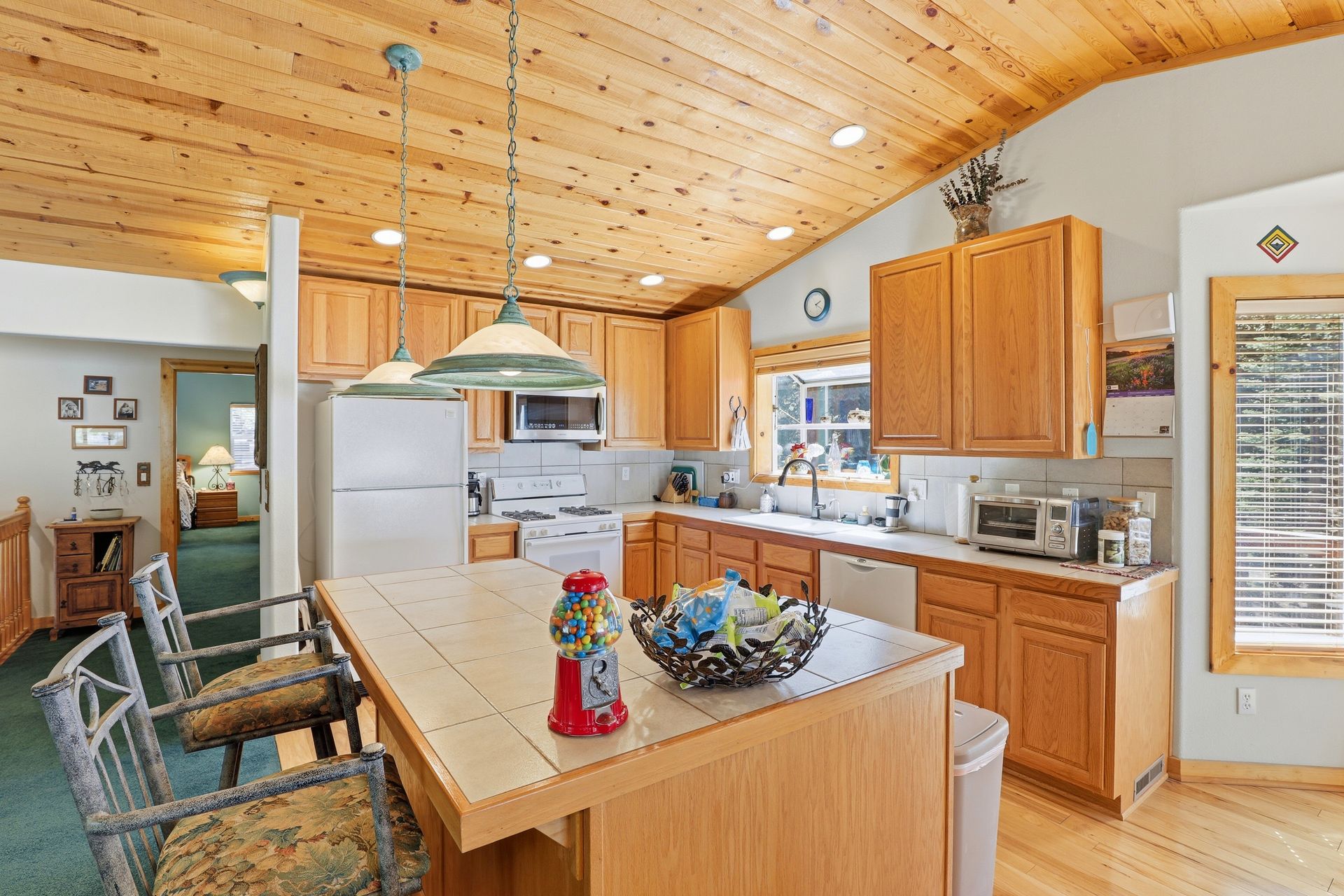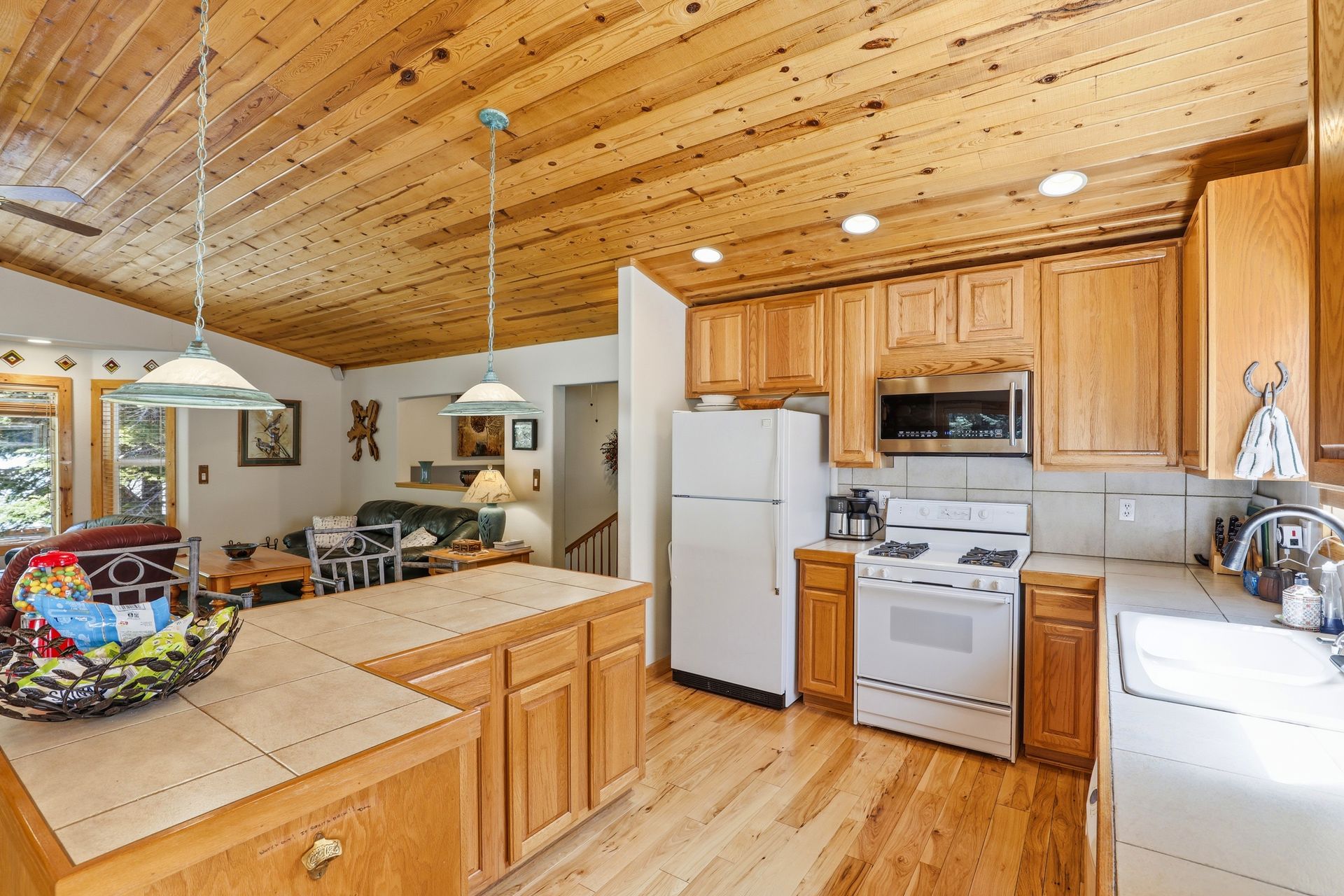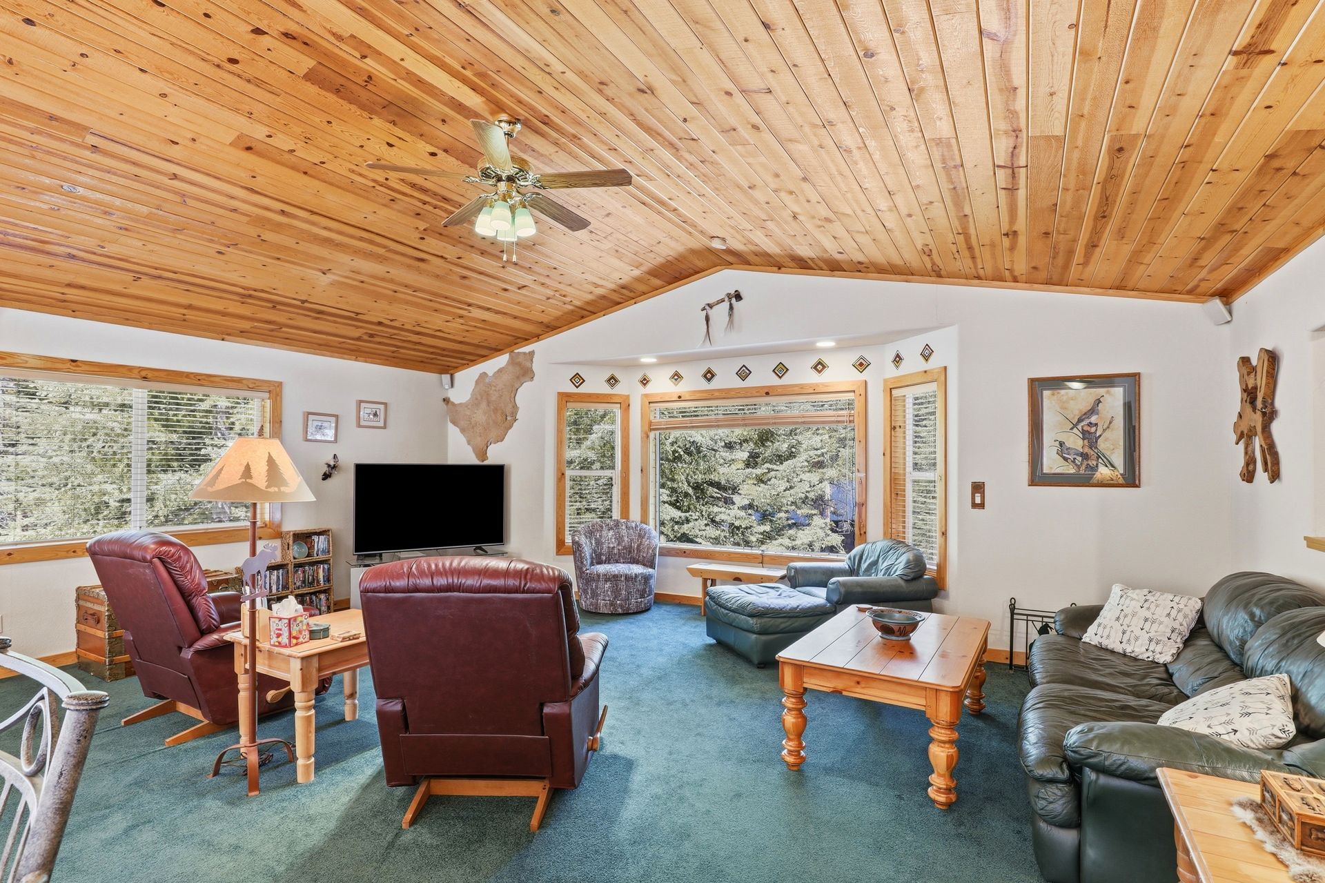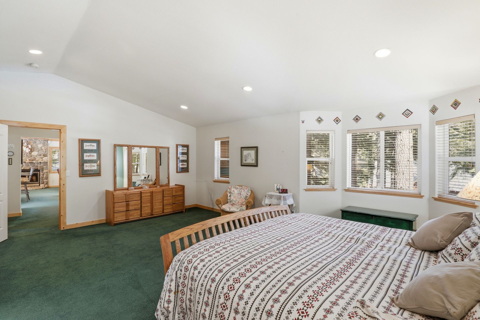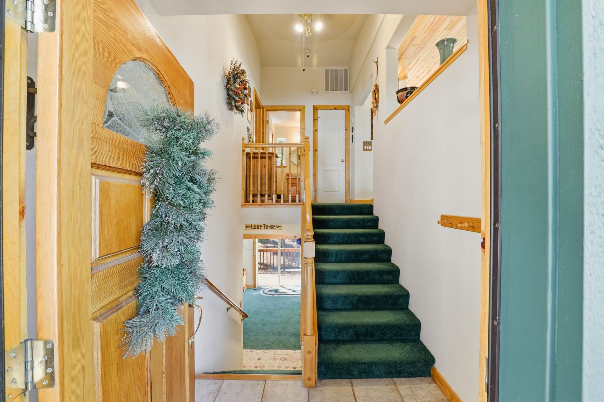 Pride of ownership is evident throughout this meticulously maintained Tahoe retreat. The original owner has occupied the home for personal use and never rented it. Nestled among towering trees and backing to hundreds of acres of open space, the property offers direct access to expansive backcountry trails—an ideal setting for year-round outdoor recreation and peaceful mountain living. Hiking, mountain biking, cross-country skiing, and snowmobiling begin right at your doorstep. Two generous decks provide the ideal vantage point to unwind, complete with a tranquil water feature and expansive forest views. Inside, the open living, dining, and kitchen area is both warm and inviting, highlighted by vaulted pine ceilings, a striking river rock wood-burning fireplace, and abundant windows that bring the outdoors inside. The home features four spacious bedrooms, two and one-half baths, and a thoughtfully designed layout that balances comfort with functionality—ideal for both peaceful retreats and lively gatherings.