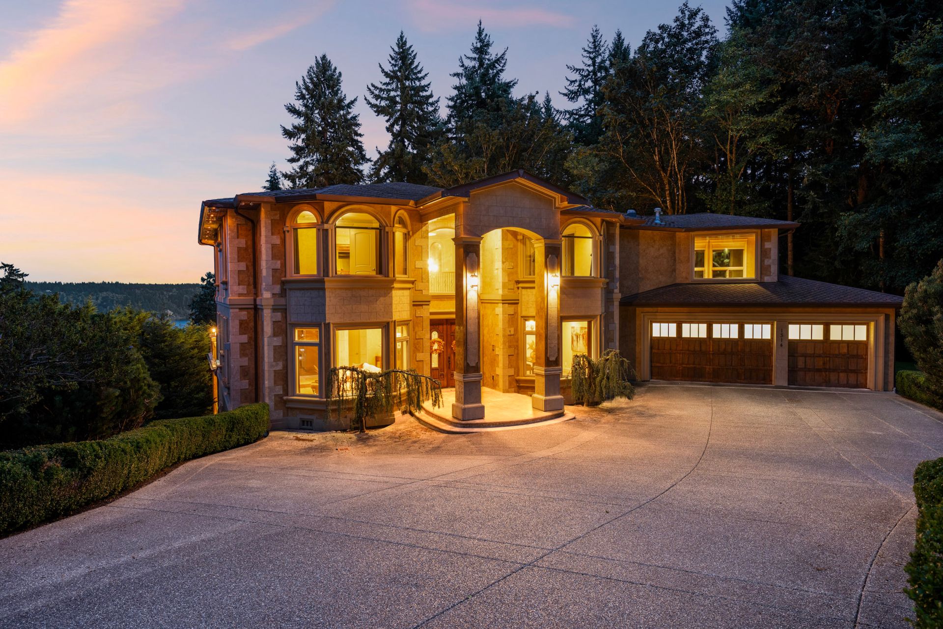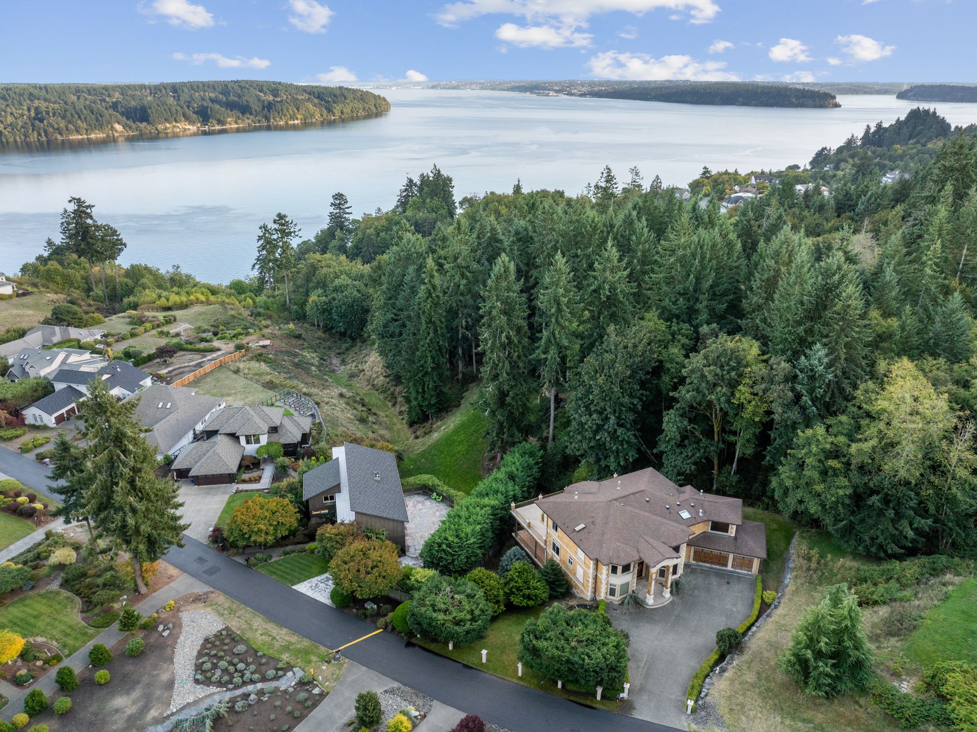 Perched above Colvos Passage in Gig Harbor’s coveted Sunrise Beach community, this custom estate offers sweeping Sound views and refined design. A chef’s kitchen with walk-in pantry flows to a family room framed by soaring ceilings and walls of glass. The luxurious primary suite boasts dual walk-in closets, spa-inspired bath, fireplace, and private balcony. All bedroom’s feature en-suites, plus a bonus room for added flexibility. The finished lower level includes a full second kitchen, expansive entertaining room, hidden office, and access to a covered patio. Heated travertine floors, wine cellar, smart wiring, and two massive view patios create a lifestyle of comfort, elegance, and year-round entertaining.
