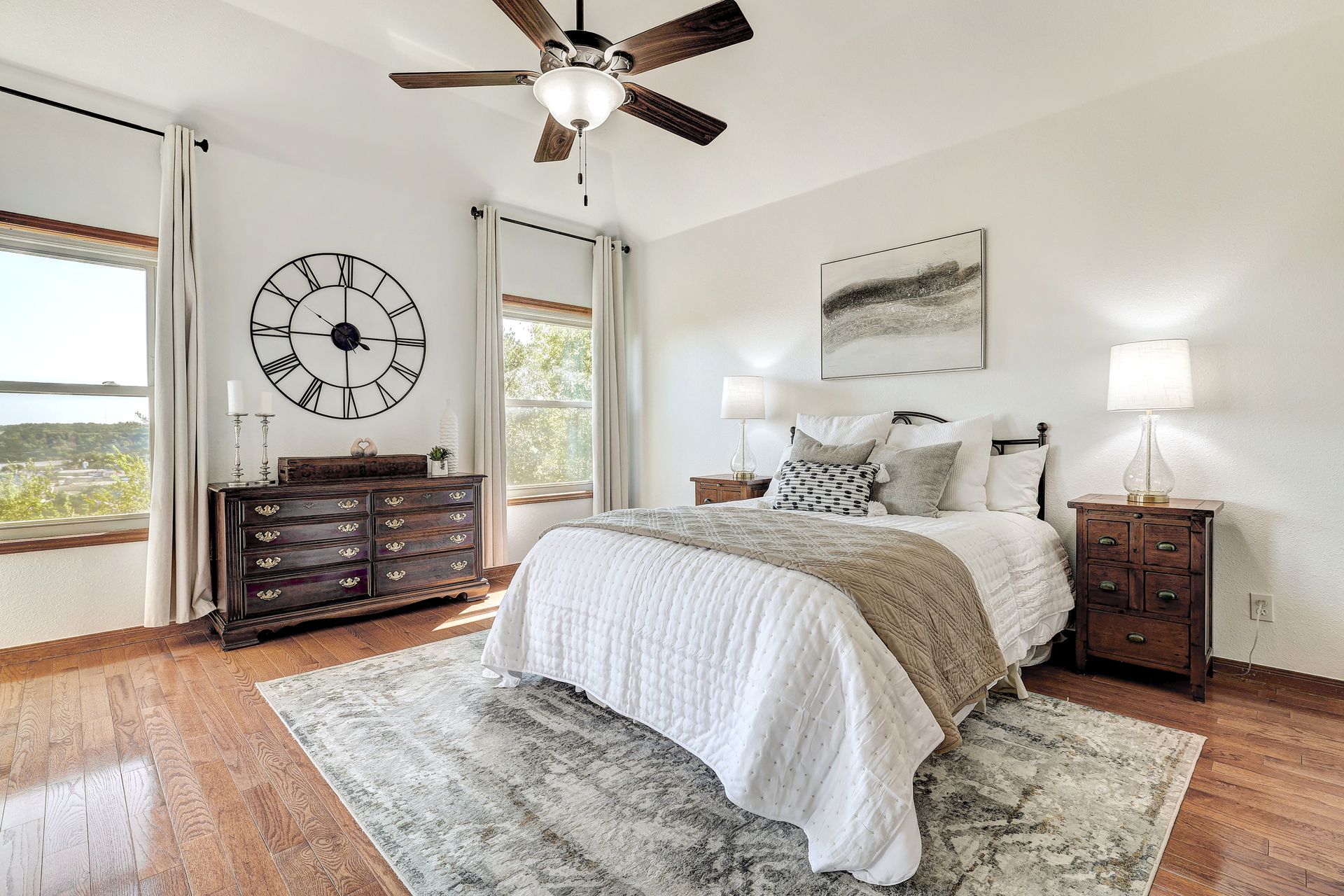 Tucked into Leander’s serene North Rim enclave, this split-level home marries rustic charm with contemporary refinement across just under 2,500 sq ft. Thoughtfully refreshed and nestled amid over 6 acres of natural terrain, it offers sweeping Hill Country views and unparalleled privacy. Inside, hardwood floors and sleek granite countertops meet warm architectural touches—like a stone-patio base topped by a deck-balcony, and skylit covered decking that extends the living room’s reach outdoors.