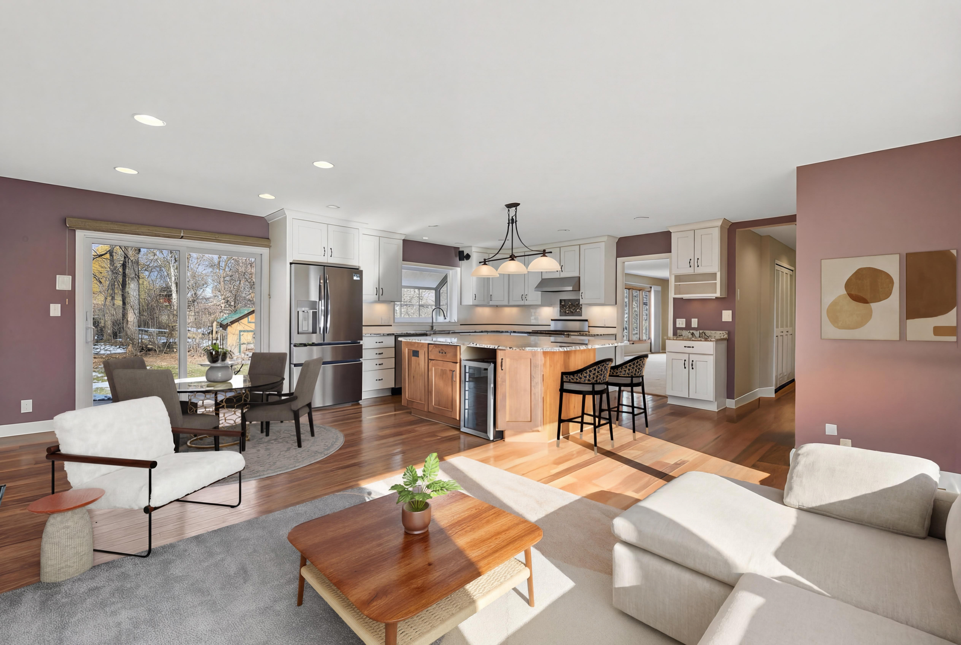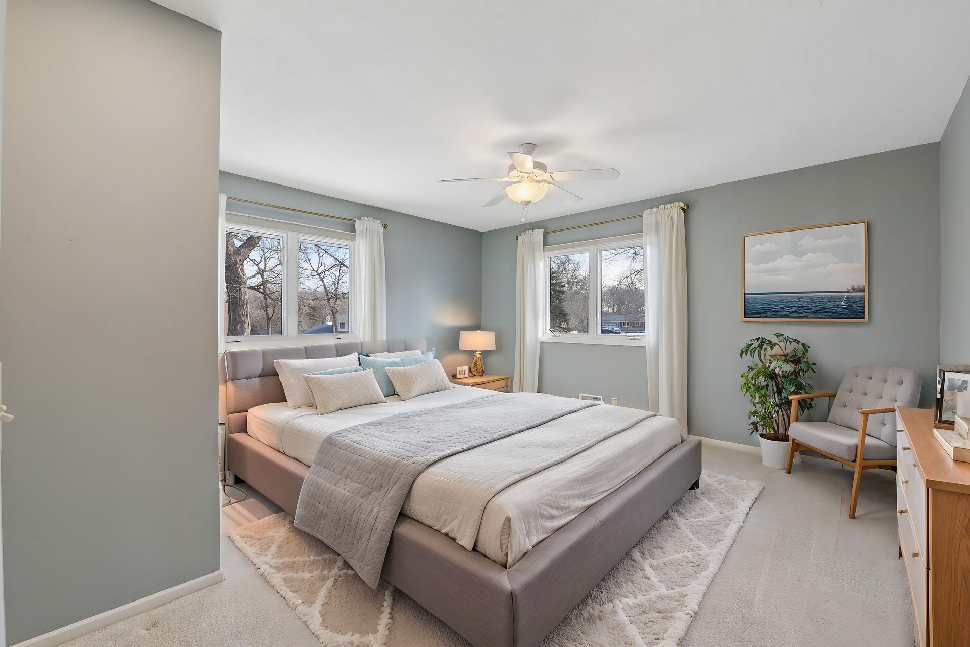 Continuing your tour, you will enter the formal dining room with built-in server and sun-drenched living room with panoramic windows. The next highlight of the main level is the primary suite. You can easily imagine yourself in the large bedroom space. The thoughtfully combined walk-in closet and full bath with separate shower and tub is sure to impress!