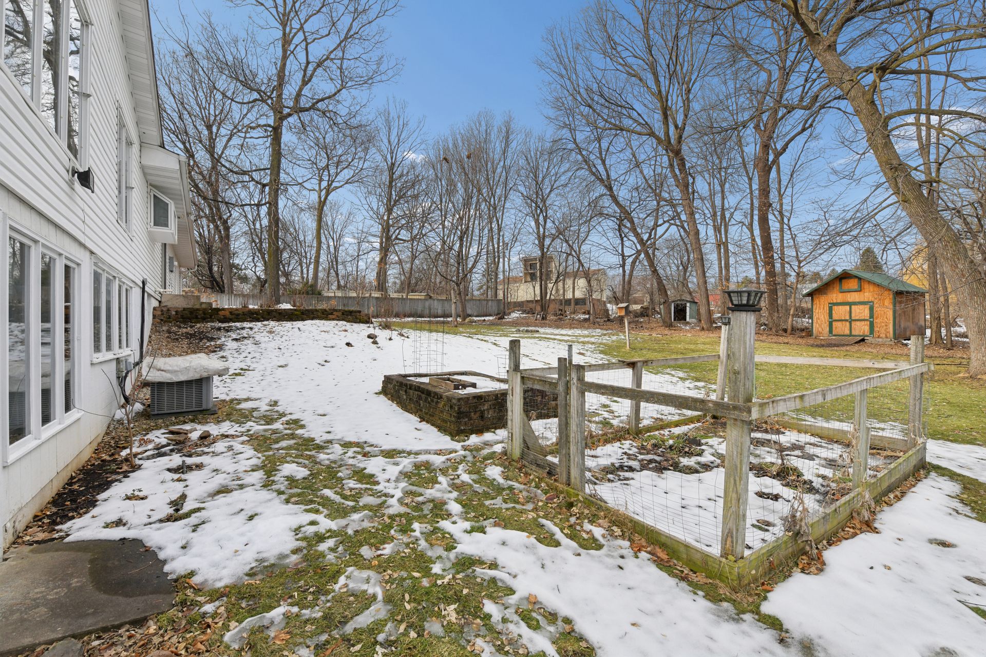 The private backyard is a great extension of your “living space.” Two storage sheds, multiple gardens and raised beds, thoughtful landscaping and a concrete driveway.