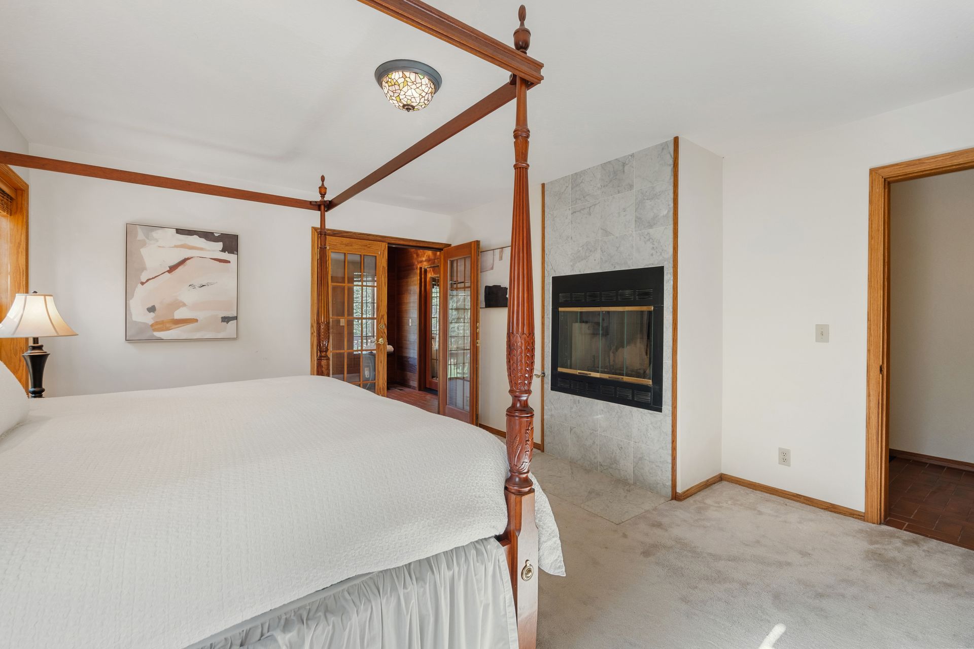 Inside, an airlock entry leads to warm, inviting livable spaces featuring two wood-burning fireplaces and a smart firewood storage design that connects from the garage directly to the entryway. The layout includes a separate laundry/mudroom, a spacious two-car garage, and ample parking for guests.