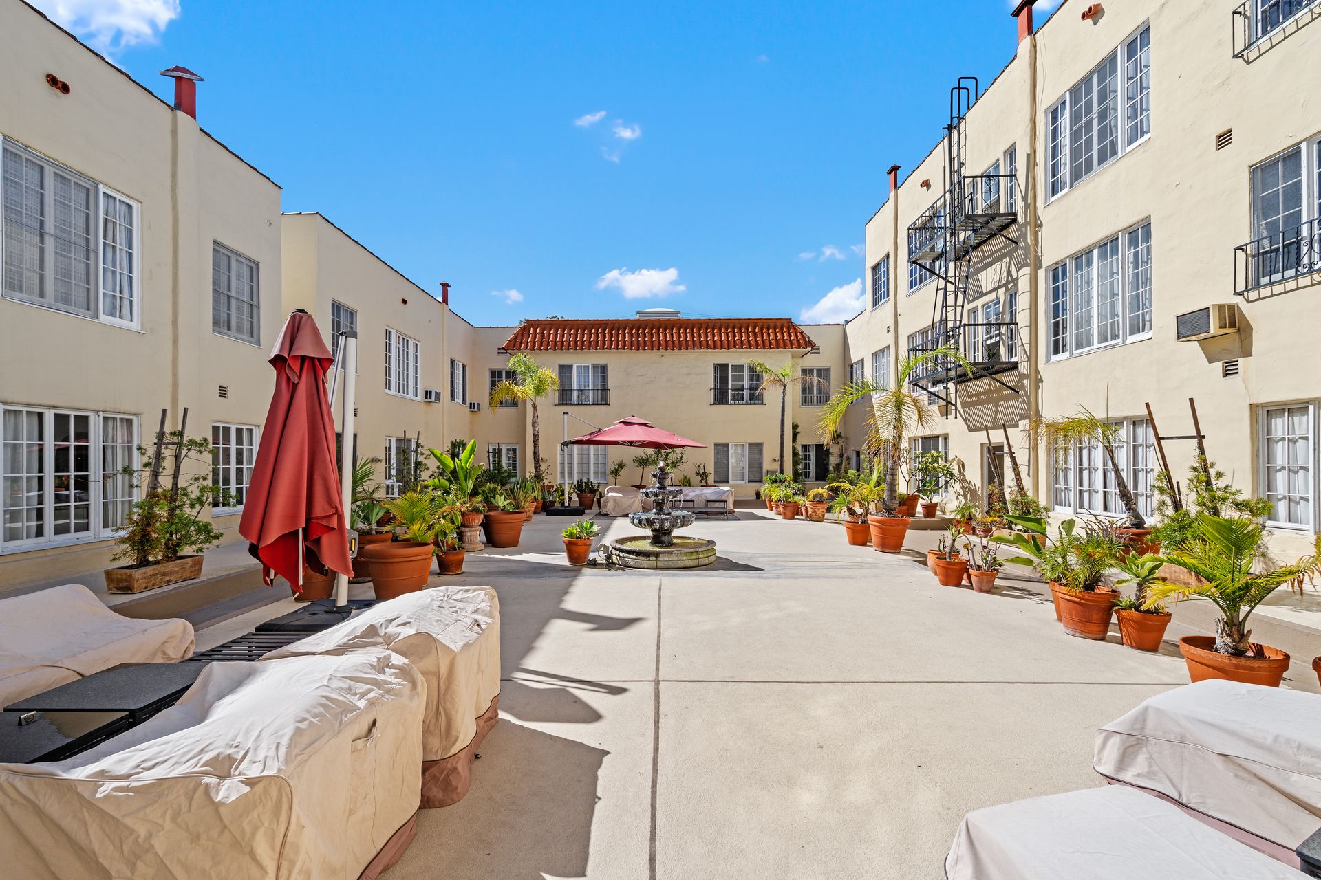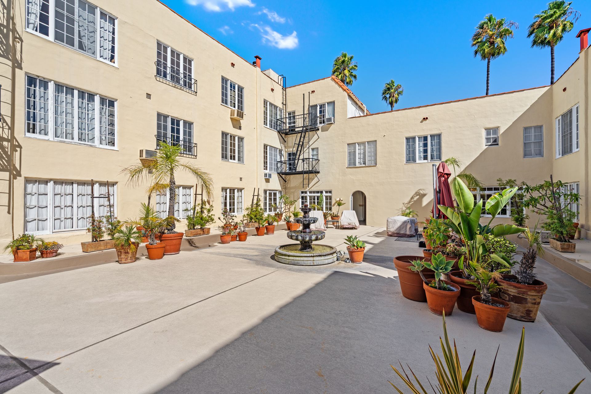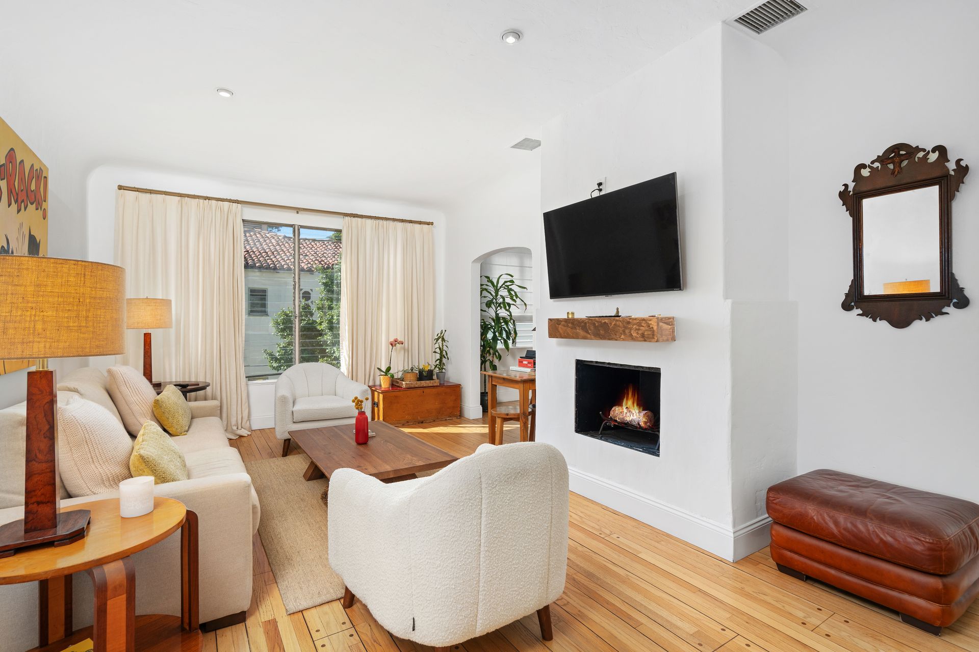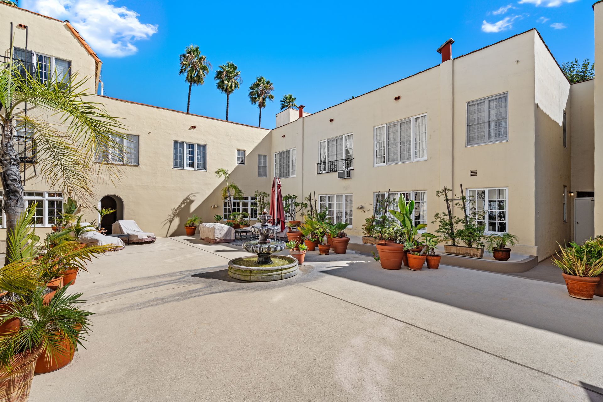 Enter into history and modern elegance at this rare and unique 1929 Spanish Hacienda, beautifully preserved and thoughtfully reimagined for contemporary living. Located south of Sunset Boulevard in West Hollywood, a city that feels alive with twinkling lights, creativity, and endless energy, this residence embodies the essence of classic Los Angeles, where old-world charm meets vibrant culture, music, and world-renowned dining. This bright, renovated top-floor unit with only one common wall offers the ideal blend of Spanish historic character and modern comfort, framed by tranquil treetop views. Updated in 2020, it features nine-foot coved ceilings, oak flooring, and smooth plastered walls that highlight its architectural beauty. The lovely kitchen features Viking and Sub-Zero appliances, elegant countertops, a charming farmhouse sink, and refined designer finishes. The charming bathroom exudes timeless sophistication with Carrera marble and high-end fixtures, while a custom-built closet adds both style and functionality. Every detail reflects exceptional craftsmanship and refined taste. Enjoy the best of West Hollywood living with low HOA dues, side-by-side subterranean secured parking with storage, and a prime central location offering convenient freeway access to Beverly Hills, the Westside, the Valley, and beyond, all just moments from Chateau Marmont, the Sunset Strip, and the city's premier dining and entertainment. Experience the magic of classic Los Angeles living where history, design, and location unite in harmony.