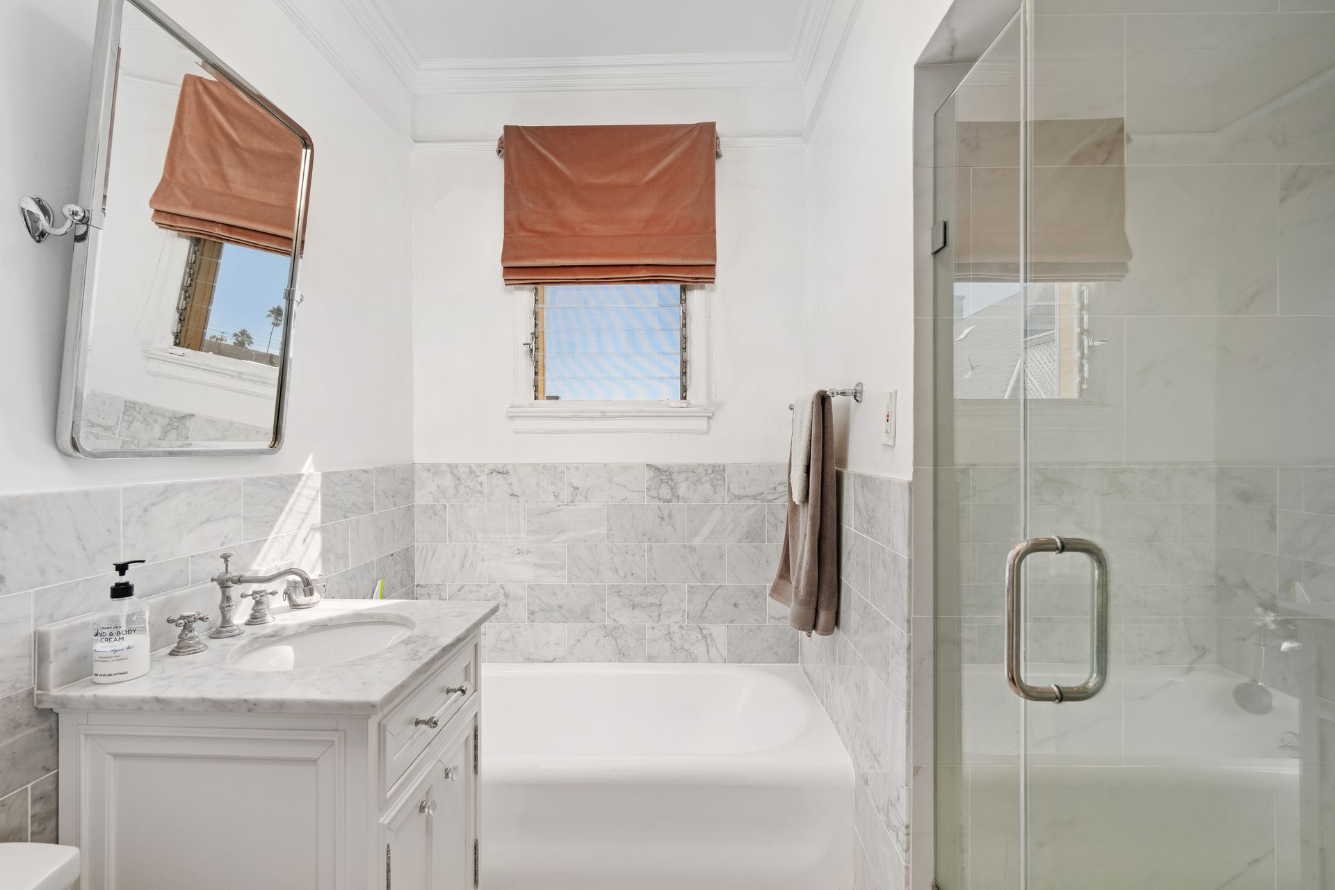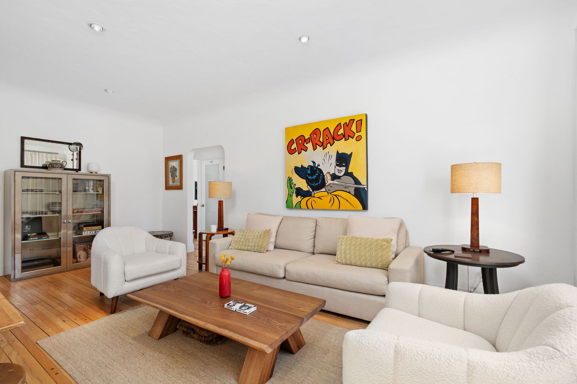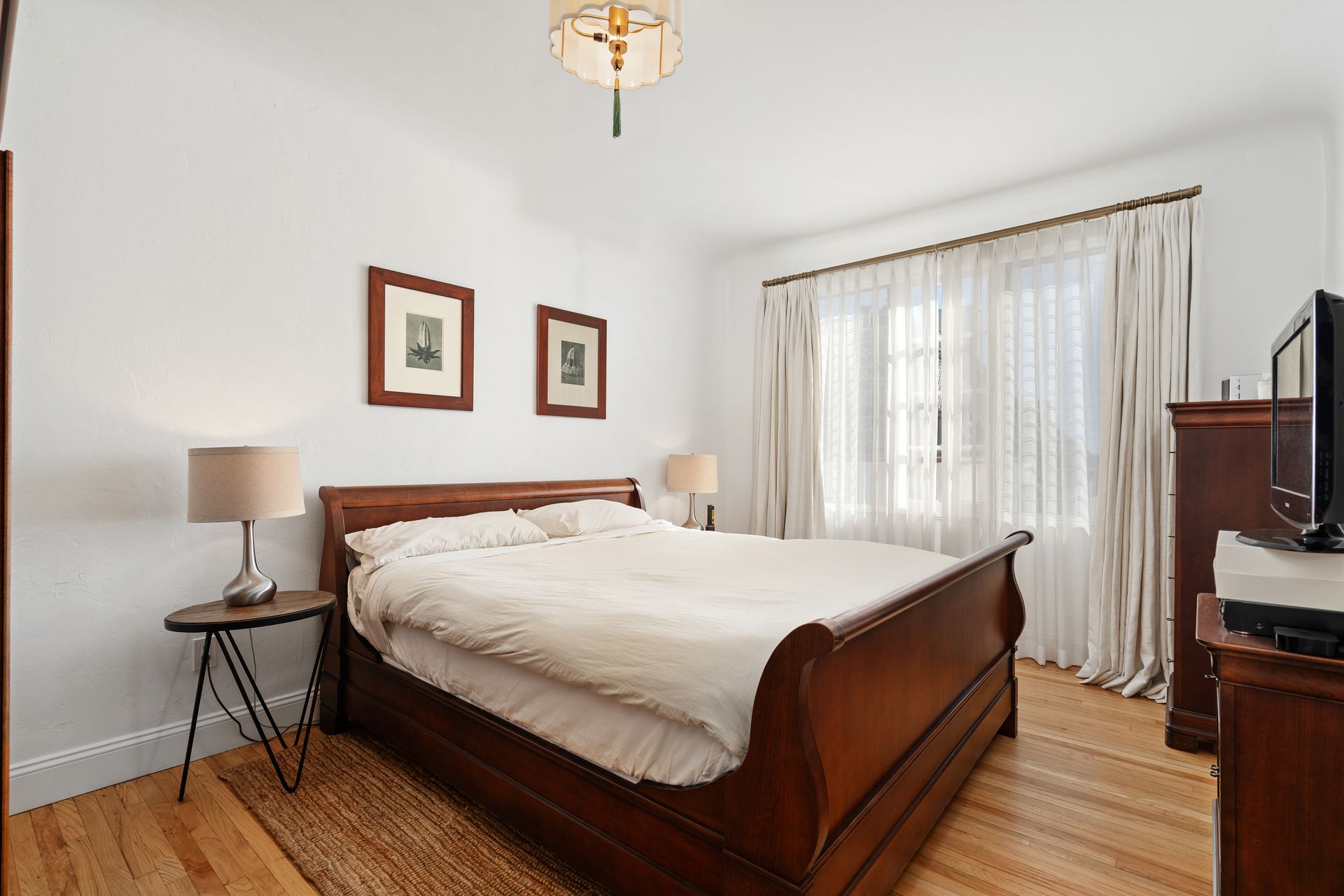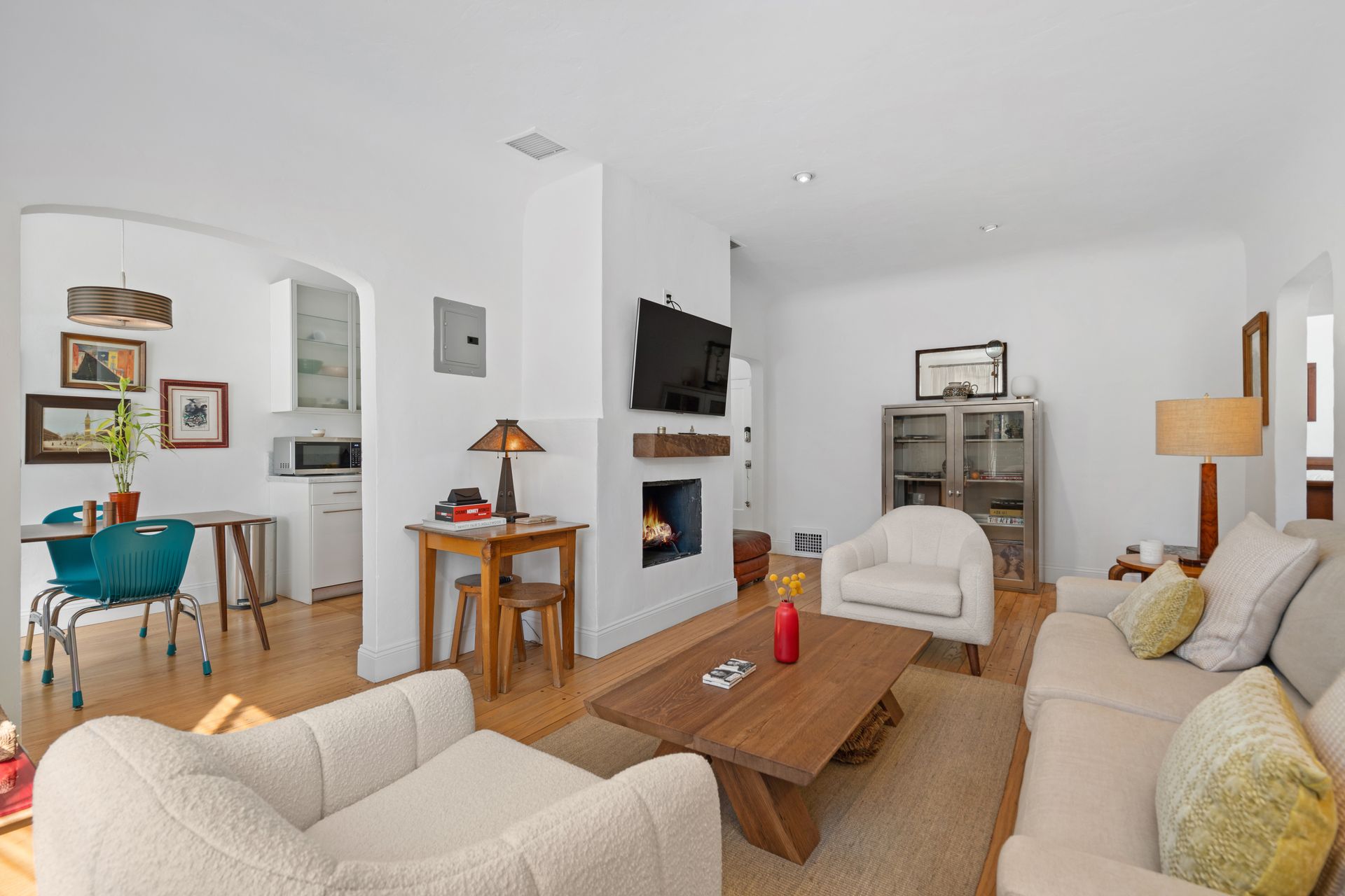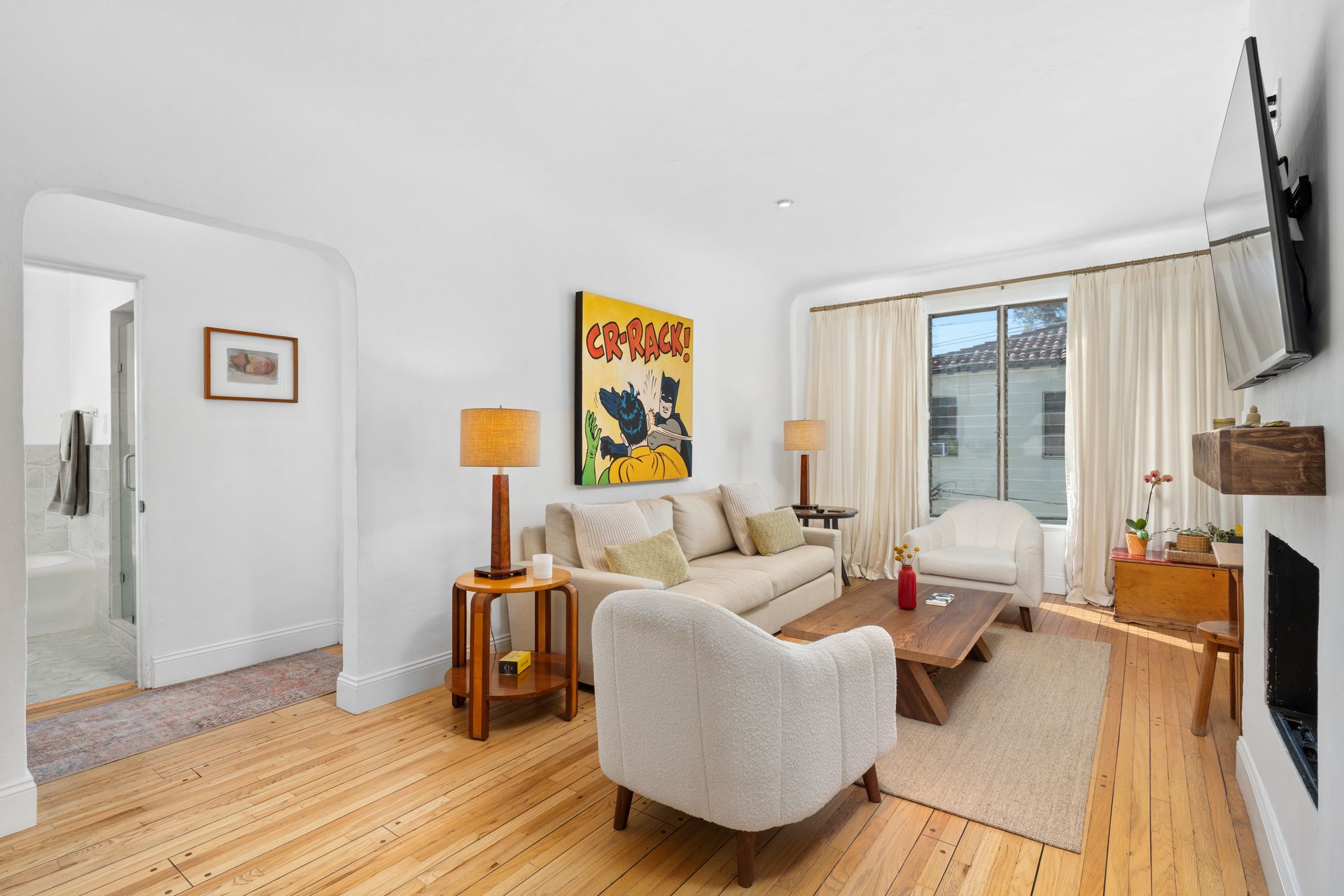 Enter into history and modern elegance at this rare and unique 1929 Spanish Hacienda, beautifully preserved and thoughtfully reimagined for contemporary living. Located south of Sunset Boulevard in West Hollywood, a city that feels alive with twinkling lights, creativity, and endless energy, this residence embodies the essence of classic Los Angeles, where old-world charm meets vibrant culture, music, and world-renowned dining. This bright, renovated top-floor unit with only one common wall offers the ideal blend of Spanish historic character and modern comfort, framed by tranquil treetop views. Updated in 2020, it features nine-foot coved ceilings, oak flooring, and smooth plastered walls that highlight its architectural beauty. The lovely kitchen features Viking and Sub-Zero appliances, elegant countertops, a charming farmhouse sink, and refined designer finishes. The charming bathroom exudes timeless sophistication with Carrera marble and high-end fixtures, while a custom-built closet adds both style and functionality. Every detail reflects exceptional craftsmanship and refined taste. Enjoy the best of West Hollywood living with low HOA dues, side-by-side subterranean secured parking with storage, and a prime central location offering convenient freeway access to Beverly Hills, the Westside, the Valley, and beyond, all just moments from Chateau Marmont, the Sunset Strip, and the city's premier dining and entertainment. Experience the magic of classic Los Angeles living where history, design, and location unite in harmony.