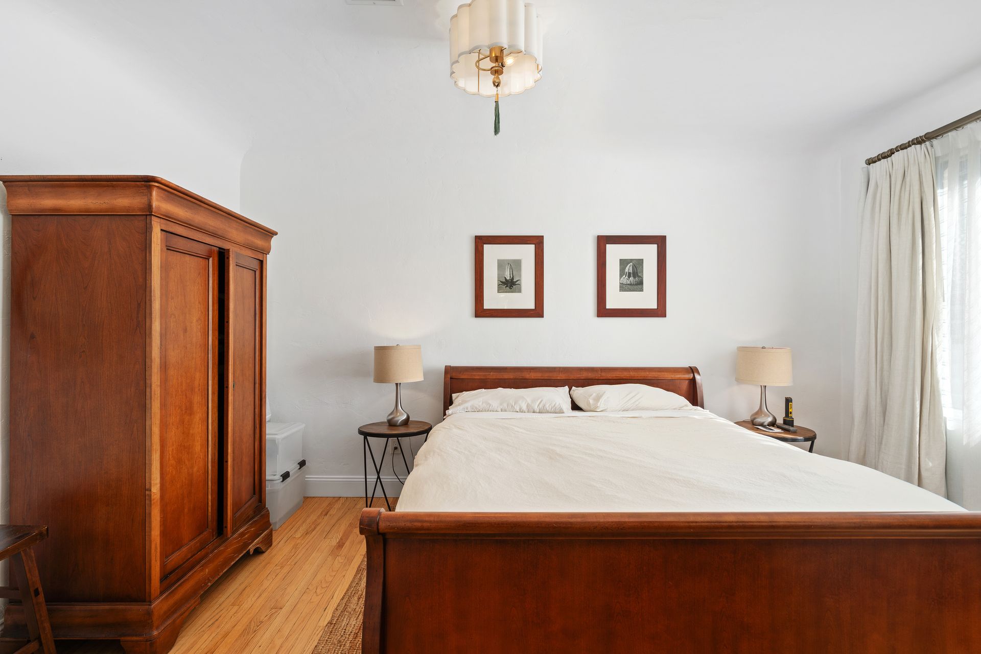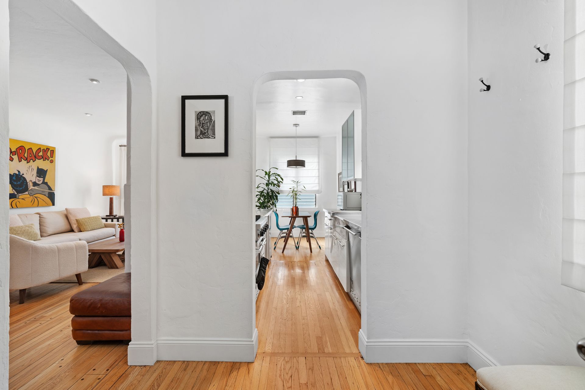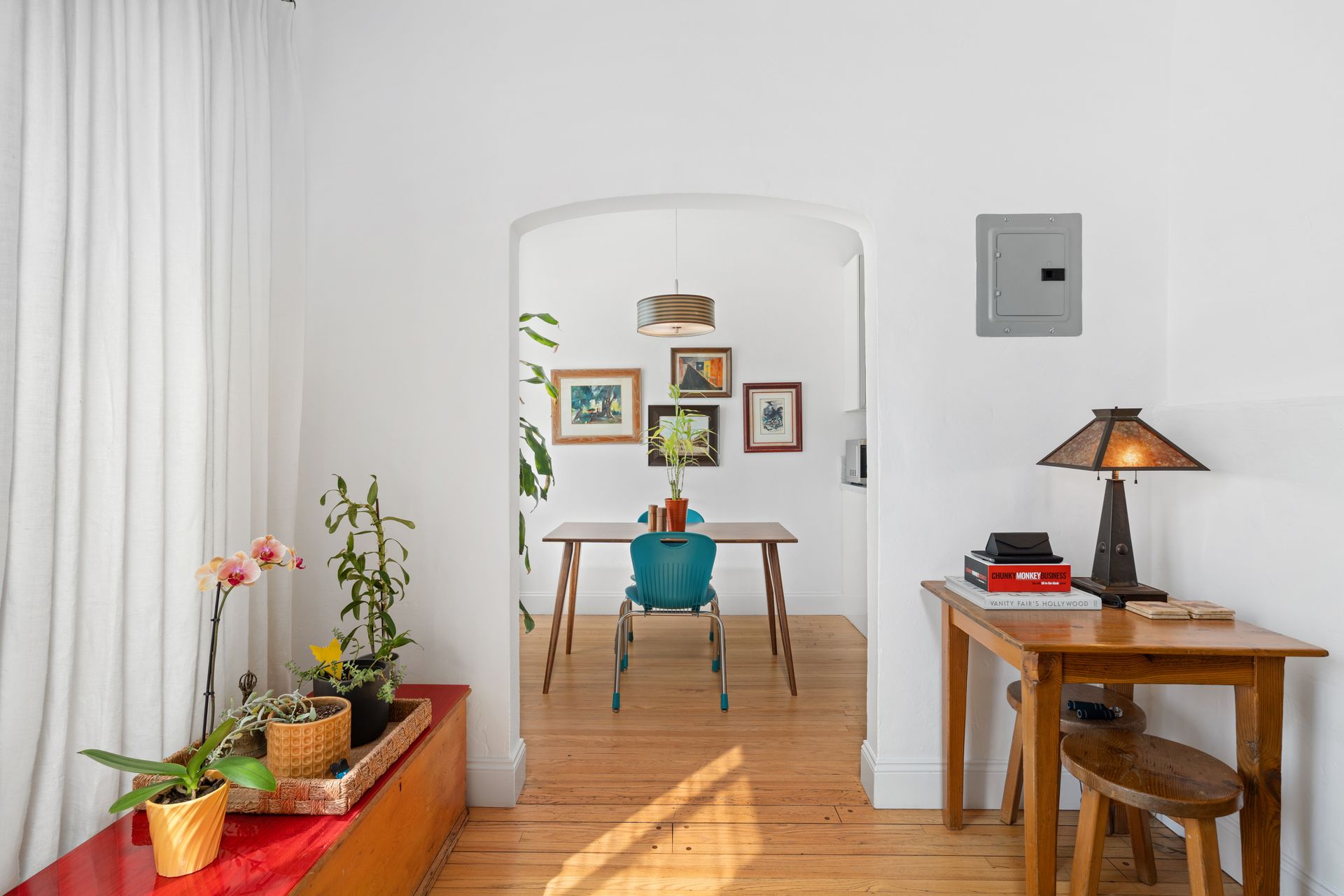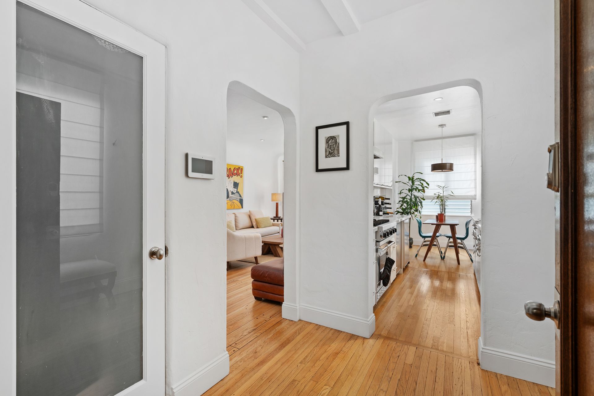 Enter into history and modern elegance at this rare and unique 1929 Spanish Hacienda, beautifully preserved and thoughtfully reimagined for contemporary living. Located south of Sunset Boulevard in West Hollywood, a city that feels alive with twinkling lights, creativity, and endless energy, this residence embodies the essence of classic Los Angeles, where old-world charm meets vibrant culture, music, and world-renowned dining. This bright, renovated top-floor unit with only one common wall offers the ideal blend of Spanish historic character and modern comfort, framed by tranquil treetop views. Updated in 2020, it features nine-foot coved ceilings, oak flooring, and smooth plastered walls that highlight its architectural beauty. The lovely kitchen features Viking and Sub-Zero appliances, elegant countertops, a charming farmhouse sink, and refined designer finishes. The charming bathroom exudes timeless sophistication with Carrera marble and high-end fixtures, while a custom-built closet adds both style and functionality. Every detail reflects exceptional craftsmanship and refined taste. Enjoy the best of West Hollywood living with low HOA dues, side-by-side subterranean secured parking with storage, and a prime central location offering convenient freeway access to Beverly Hills, the Westside, the Valley, and beyond, all just moments from Chateau Marmont, the Sunset Strip, and the city's premier dining and entertainment. Experience the magic of classic Los Angeles living where history, design, and location unite in harmony.