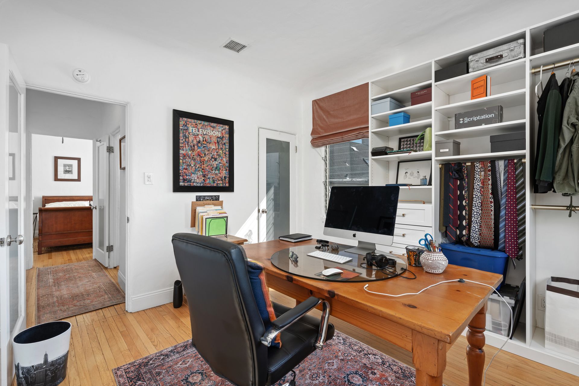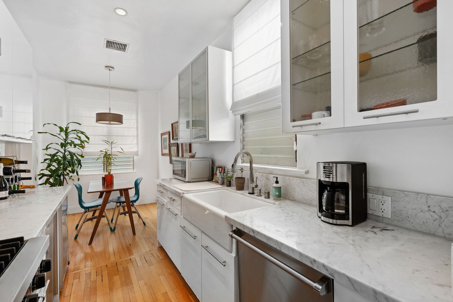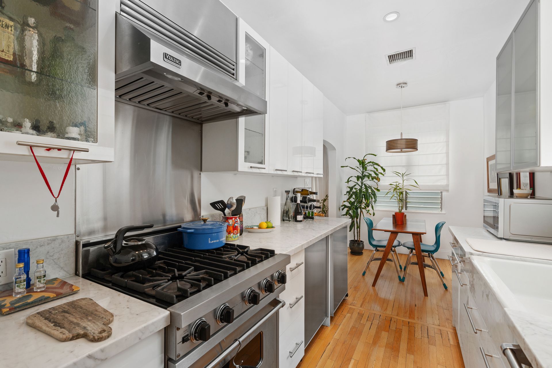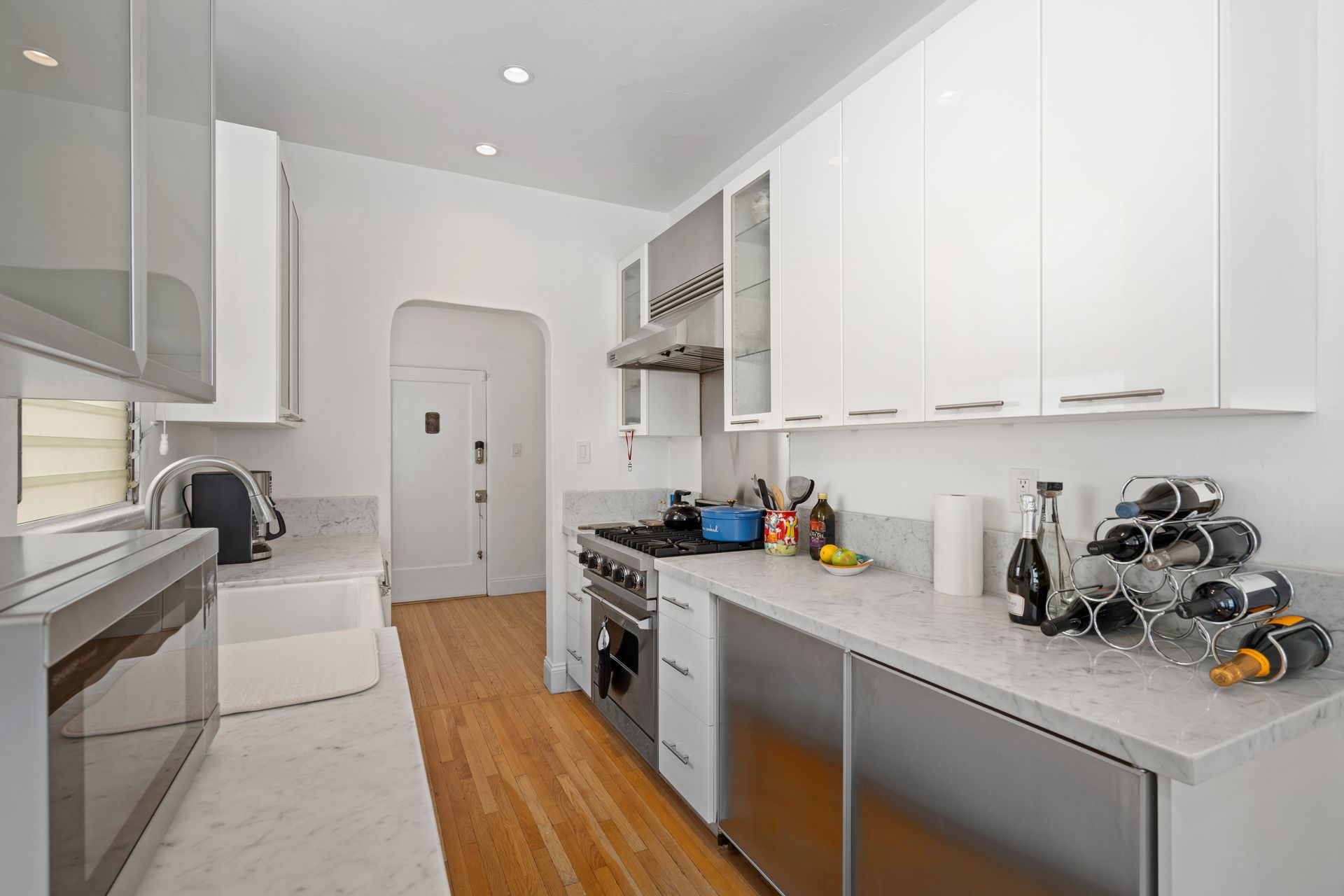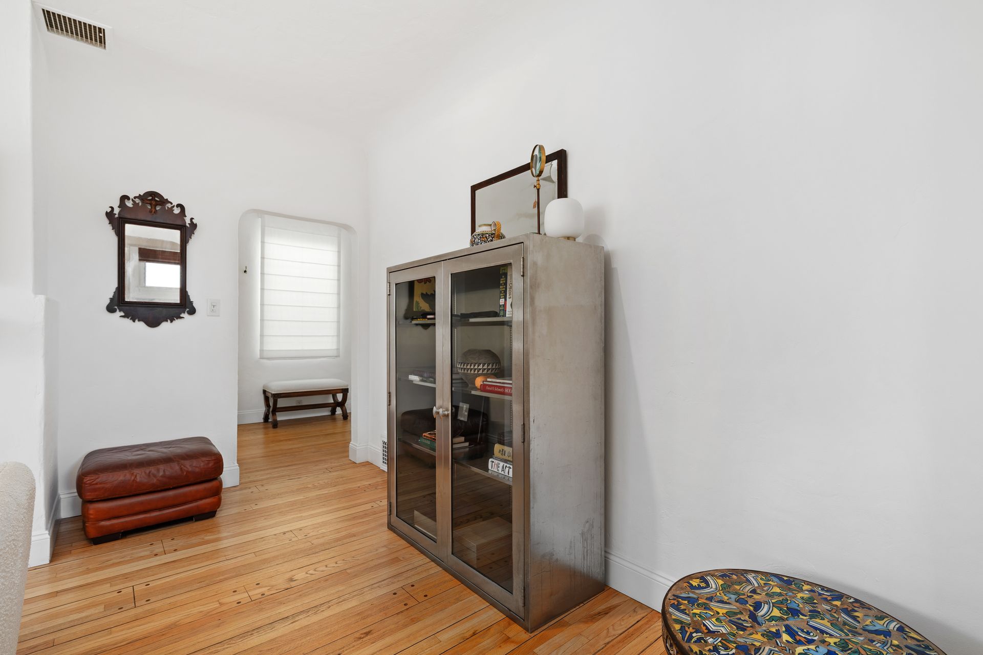 Enter into history and modern elegance at this rare and unique 1929 Spanish Hacienda, beautifully preserved and thoughtfully reimagined for contemporary living. Located south of Sunset Boulevard in West Hollywood, a city that feels alive with twinkling lights, creativity, and endless energy, this residence embodies the essence of classic Los Angeles, where old-world charm meets vibrant culture, music, and world-renowned dining. This bright, renovated top-floor unit with only one common wall offers the ideal blend of Spanish historic character and modern comfort, framed by tranquil treetop views. Updated in 2020, it features nine-foot coved ceilings, oak flooring, and smooth plastered walls that highlight its architectural beauty. The lovely kitchen features Viking and Sub-Zero appliances, elegant countertops, a charming farmhouse sink, and refined designer finishes. The charming bathroom exudes timeless sophistication with Carrera marble and high-end fixtures, while a custom-built closet adds both style and functionality. Every detail reflects exceptional craftsmanship and refined taste. Enjoy the best of West Hollywood living with low HOA dues, side-by-side subterranean secured parking with storage, and a prime central location offering convenient freeway access to Beverly Hills, the Westside, the Valley, and beyond, all just moments from Chateau Marmont, the Sunset Strip, and the city's premier dining and entertainment. Experience the magic of classic Los Angeles living where history, design, and location unite in harmony.