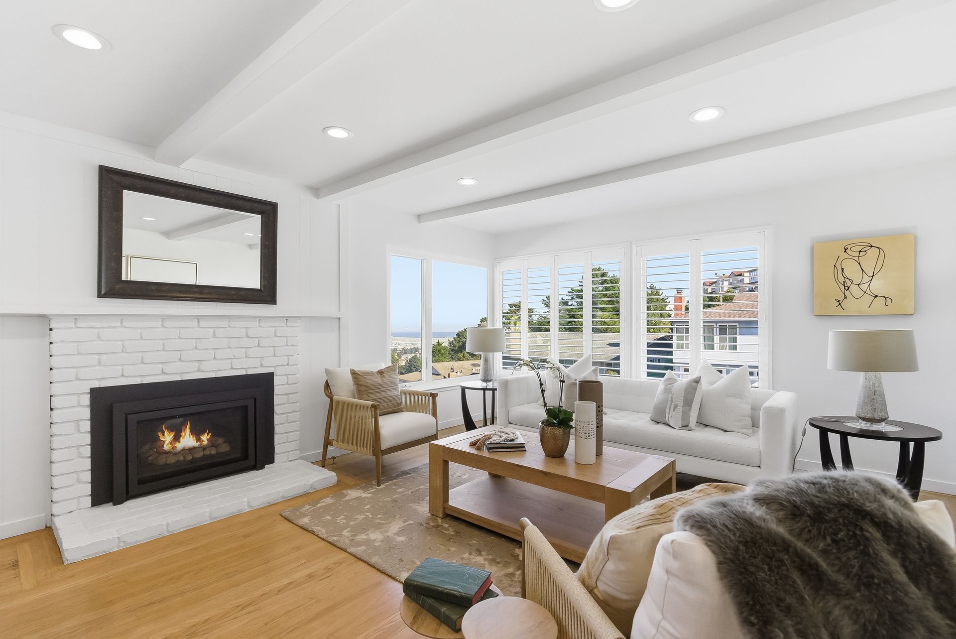 Perched above the Bay with sweeping views of shimmering water and Mount Diablo, this elegant home blends classic comfort with modern design. Built in 1961, the approximately 1770 square foot main level features an open floor plan, a remodeled chef's kitchen with professional appliances and pantry, and spacious living and dining areas ideal for entertaining. Three bedrooms and two baths complete this level.