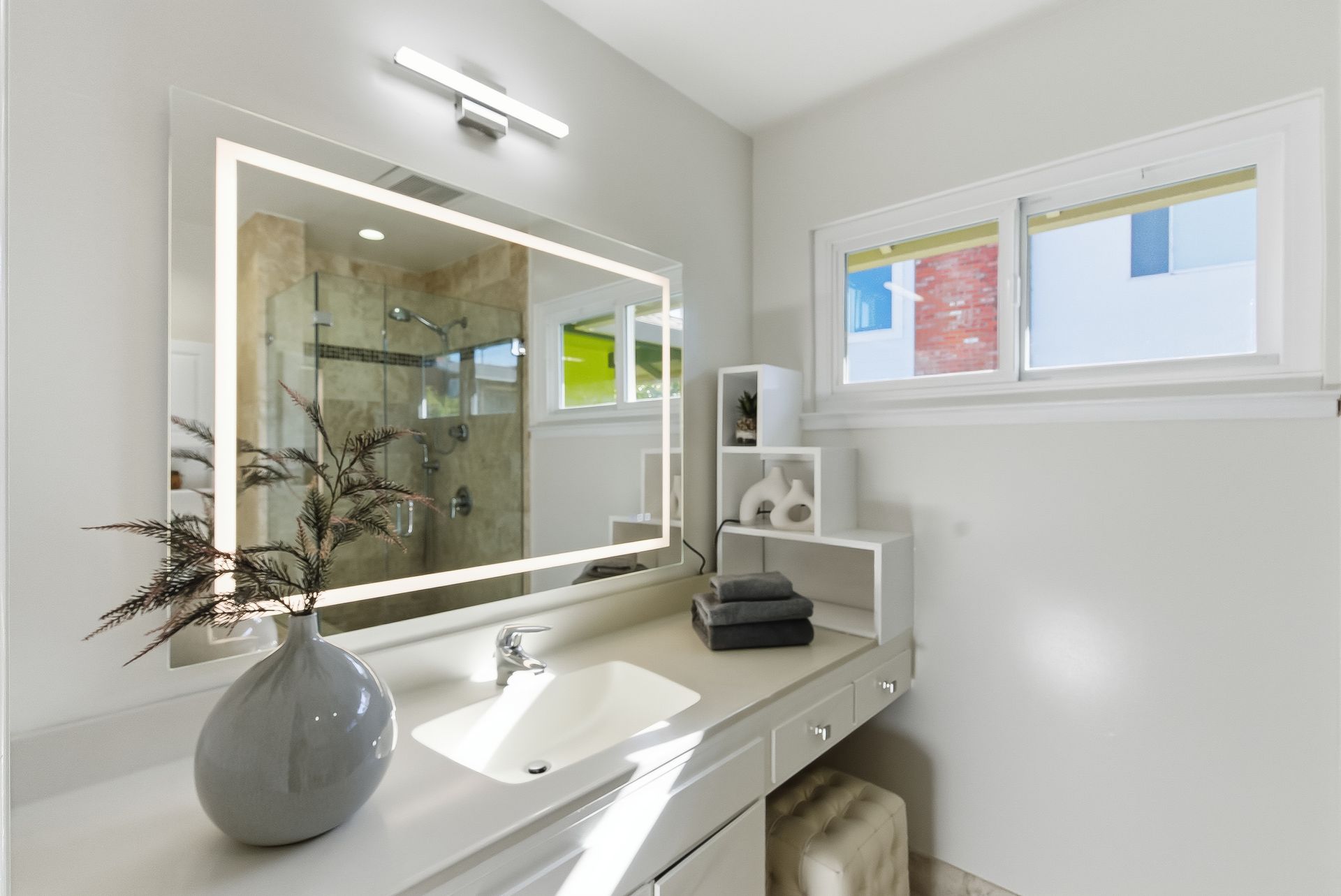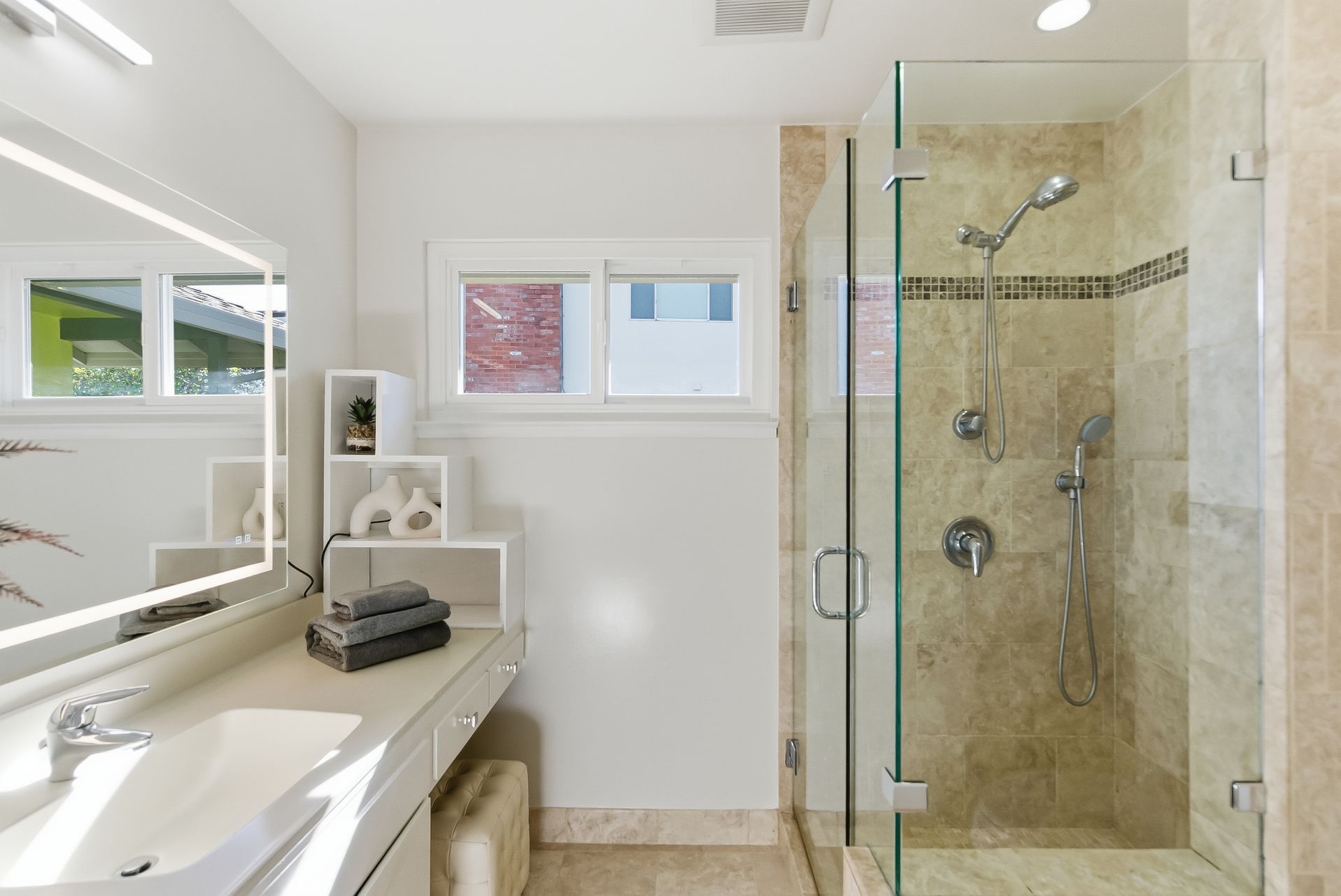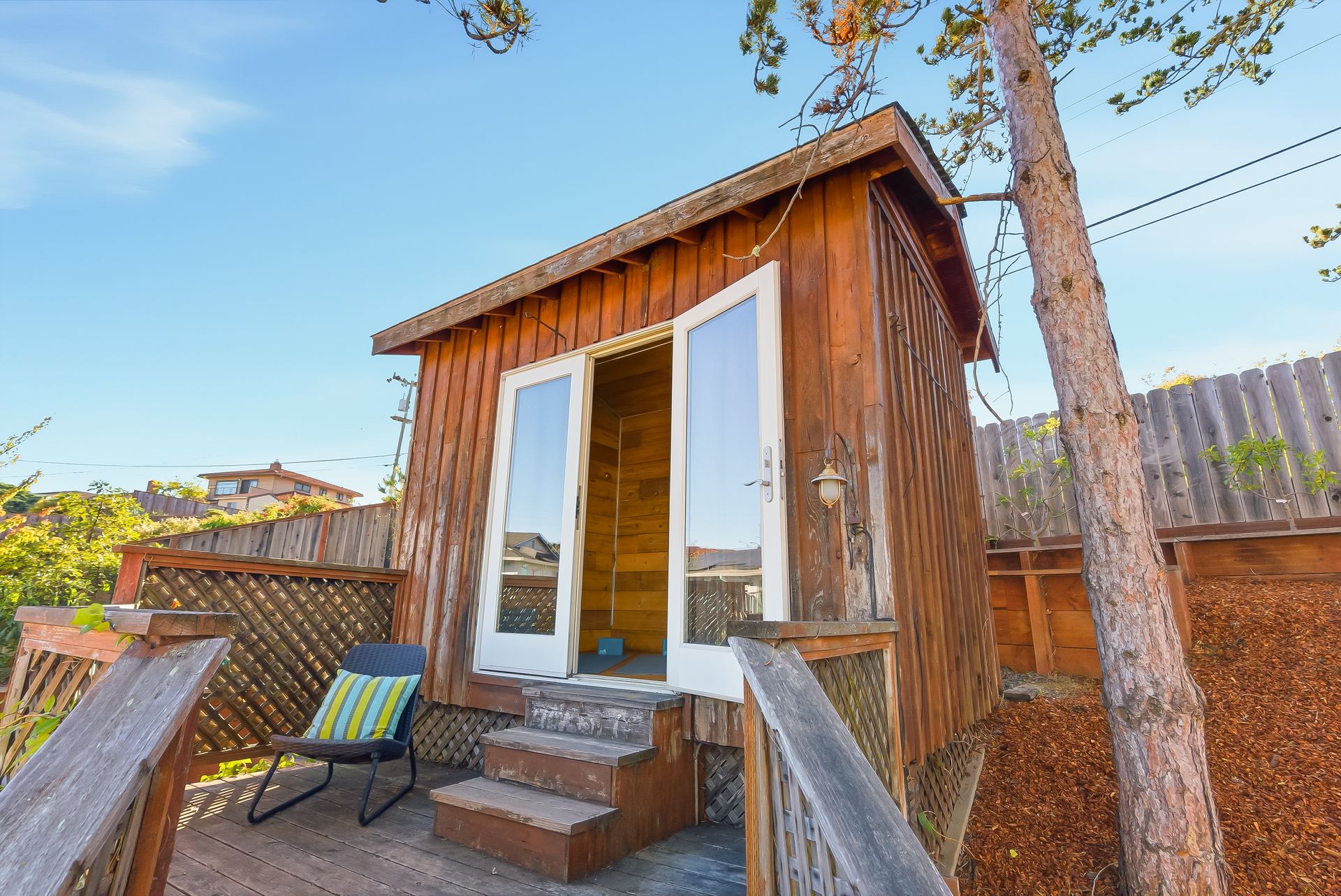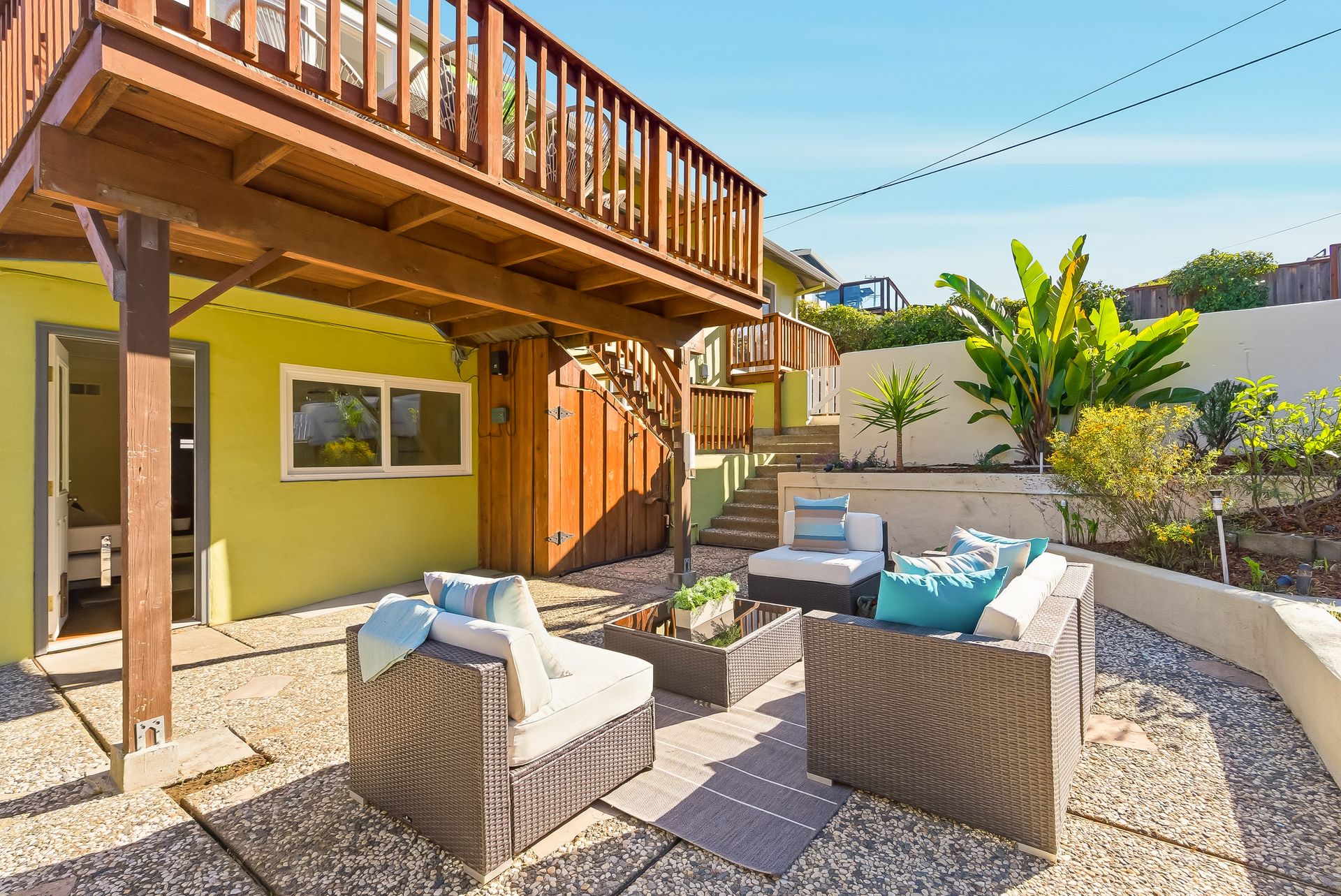 Downstairs, there are approximately 770 square feet of unpermitted flexible living space. An ideal secondary unit includes one bed, full bath, living area, kitchenette with refrigerator, and a second washer/dryer for guest suites, home offices, or extended family, and direct access to the outdoors.