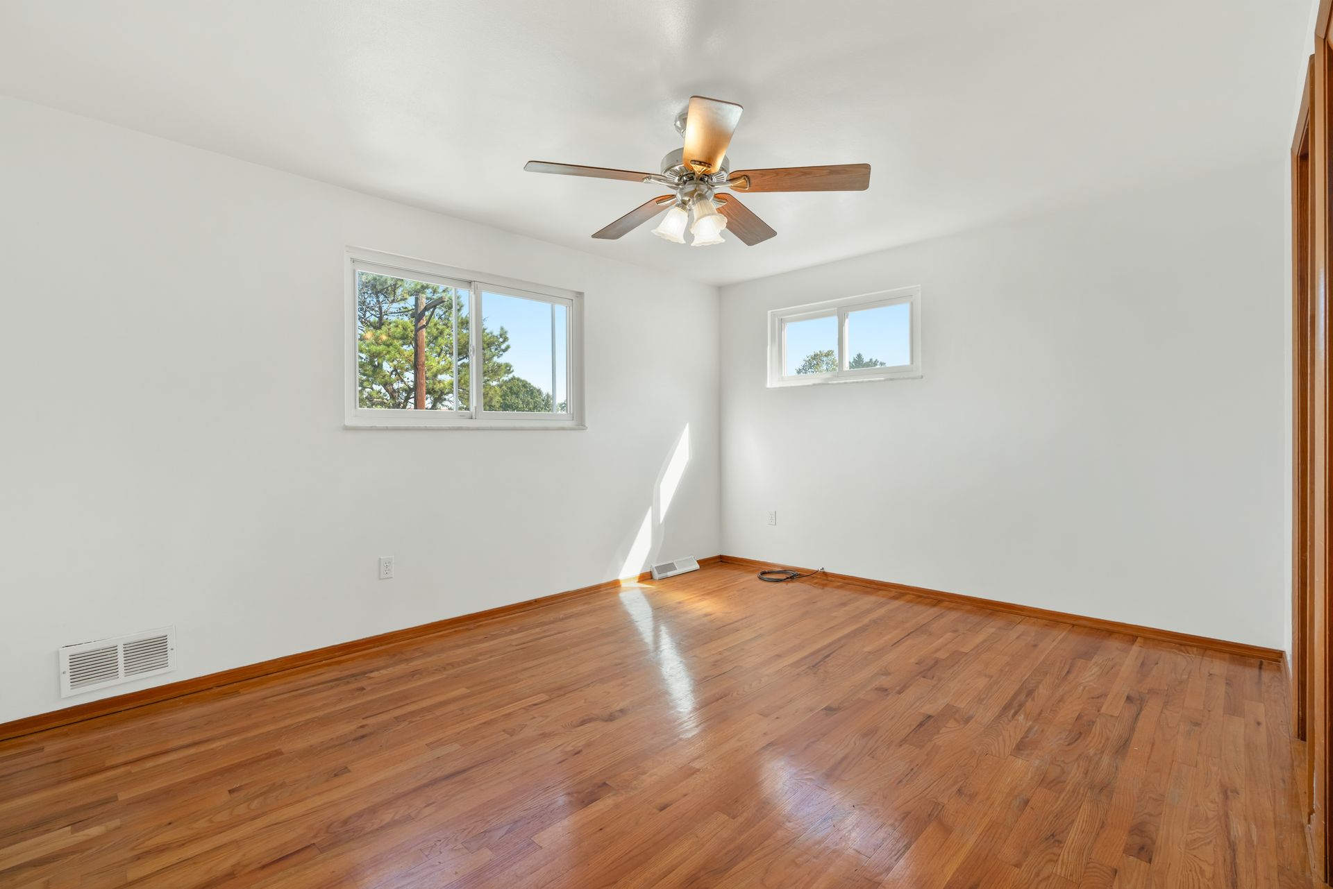 The back patio presents an inviting outdoor area for relaxation or entertaining. This private space can be utilized for a variety of purposes, such as dining, recreation, or simply enjoying the surroundings.
