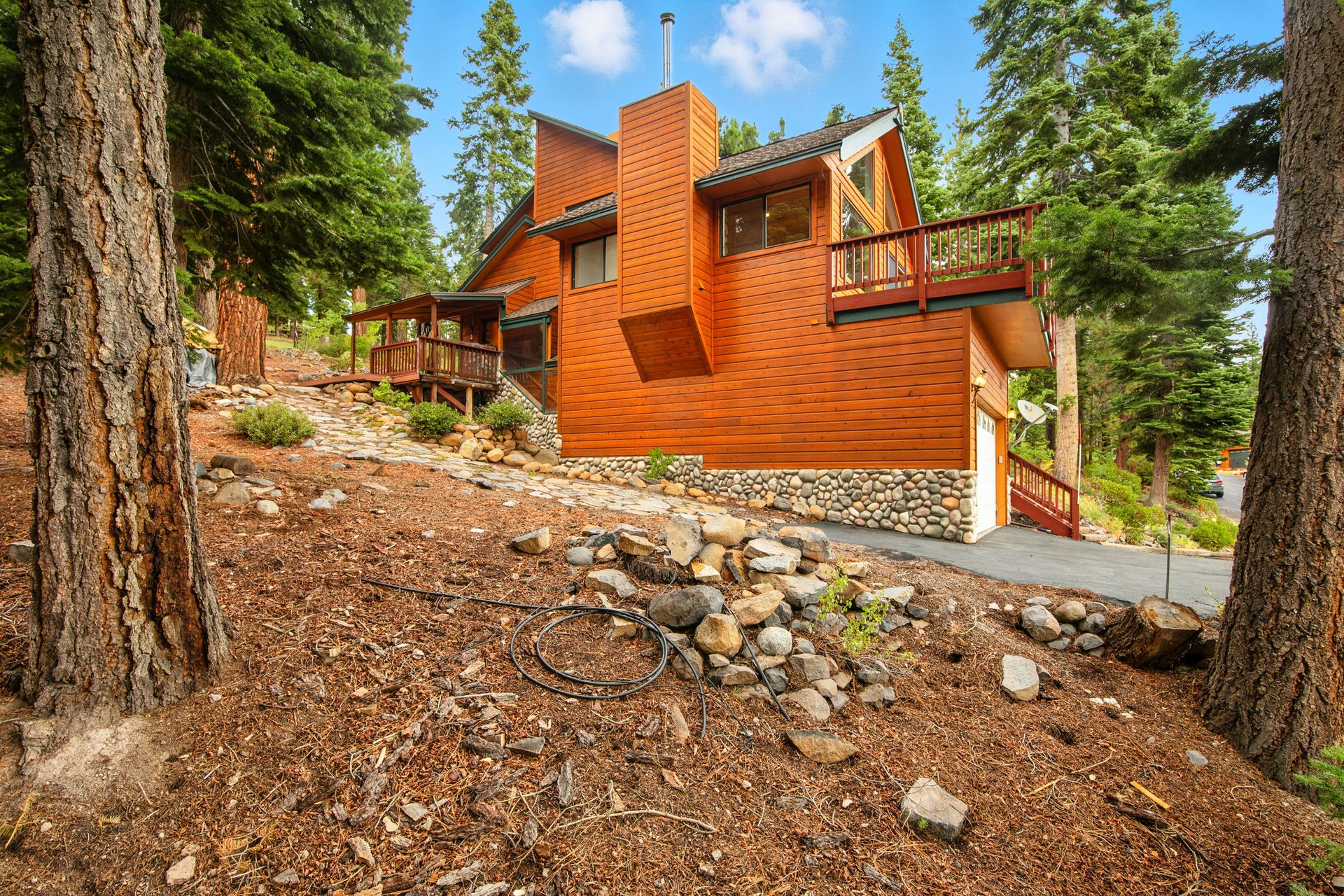 Well maintained LAKE VIEW home that backs to open space and is contiguous on the east side to a vacant parcel with a Conservation Easement to enhance the private setting. Open/living/dining/kitchen area with high vaulted pine ceilings and a wall of windows through which to enjoy the spectacular views of Lake Tahoe and the surrounding snow-capped Sierra. The living area is accented by a magnificent river rock hearth with a freestanding Vermont Castings wood stove. Four spacious bedrooms (2 en-suite) one of which is currently used as an office and three and 1/2 bathrooms. Lake views are visible from nearly every room. For those with limited mobility, there is a chair lift going from the garage to the first floor living area's back door. Located a short drive to NorthStar Ski Area and Tahoe's pristine sandy shores. Access to trails for hiking and biking and cross country skiing and snowmobiling from your back door. This lovely mountain home is the ideal year 'round mountain retreat.