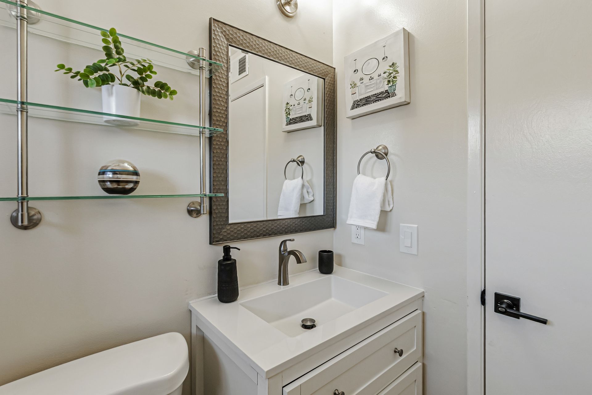 Located in the desirable highly rated Pioneer High School boundary, this updated upstairs condo offers comfort and convenience. Enjoy a peaceful outlook toward the community pool and a welcoming single-level floor plan featuring two bedrooms, one bathroom, and approximately 798 square feet of livable space. This comes with an updated kitchen, central heat and A/C, a large fridge, and extra storage downstairs. Thoughtful updates make this home truly turnkey. Updates include ALL NEWLY INSTALLED attic insulation, fresh interior paint, a Samsung dishwasher, updated LED lighting, newer switches, plugs, a NEST Wi-Fi thermostat control, all newly updated door hardware, and a larger bathroom cabinet/sink/faucet/lighting/mirror enhancement. Enjoy each bedroom updated to create a cozy sanctuary with warm central lights, newer blinds, and flesh plush carpeting. This pet-friendly community is ideally situated near Lunardi's Market, Petco, Costco, and easy access to Freeway 85. With thoughtful updates, smart technology, and a convenient location, this condo is ready to welcome its next owner.