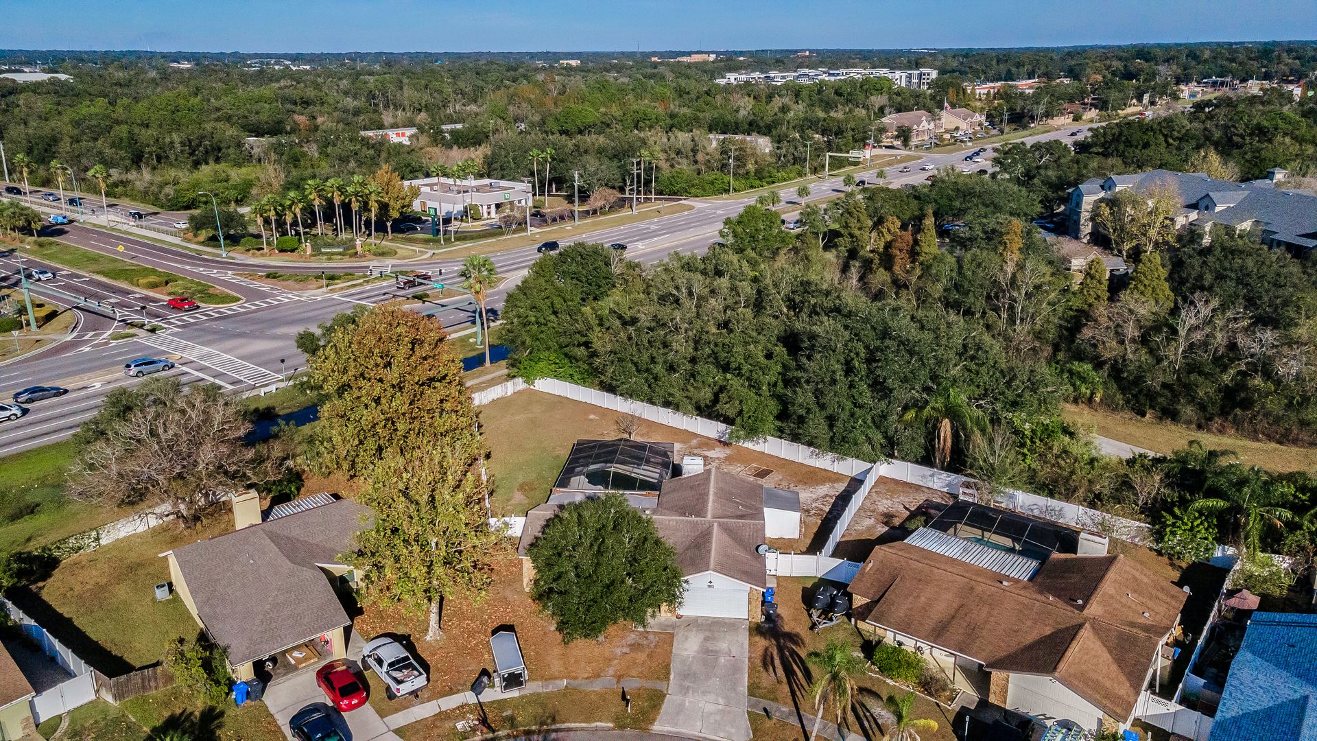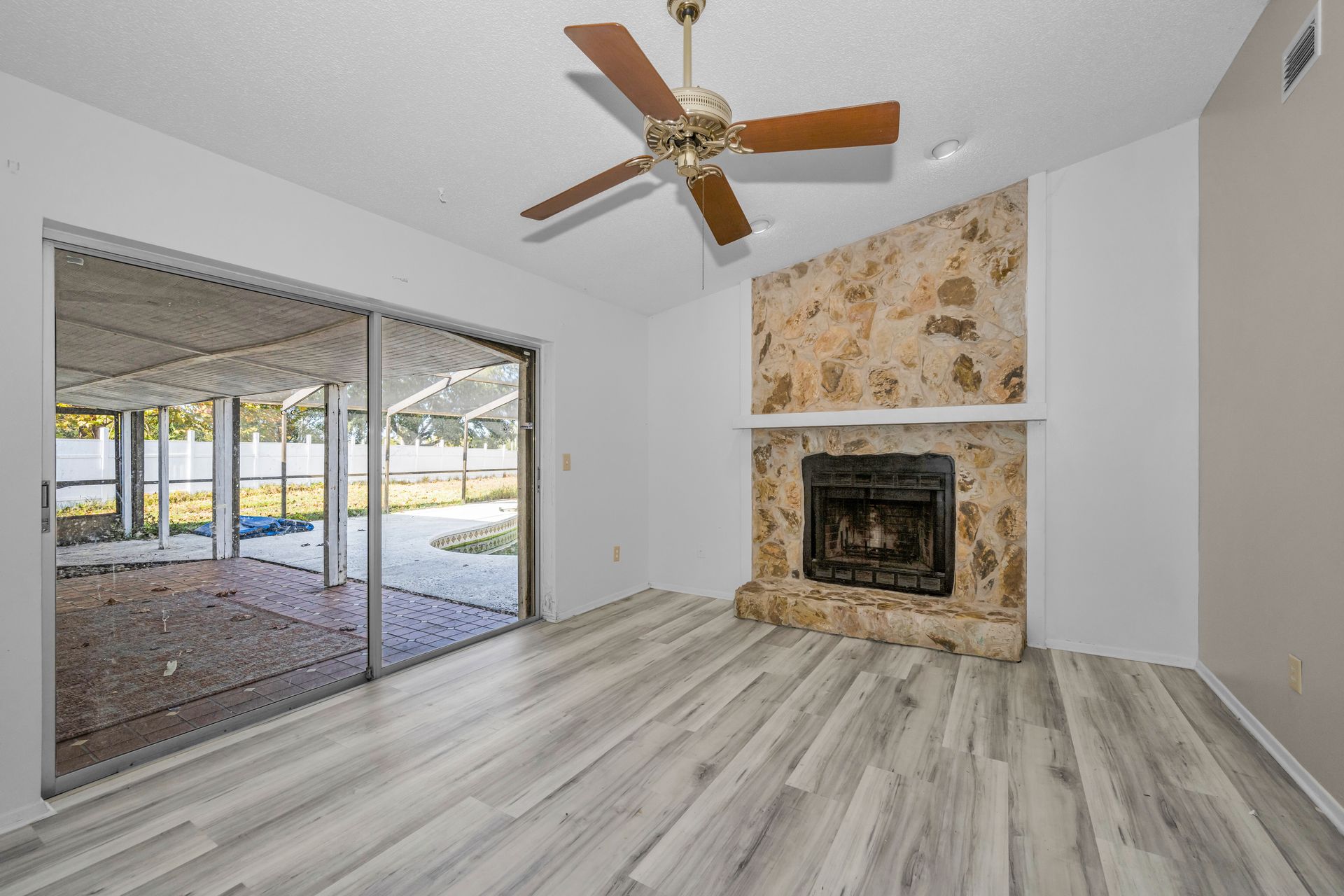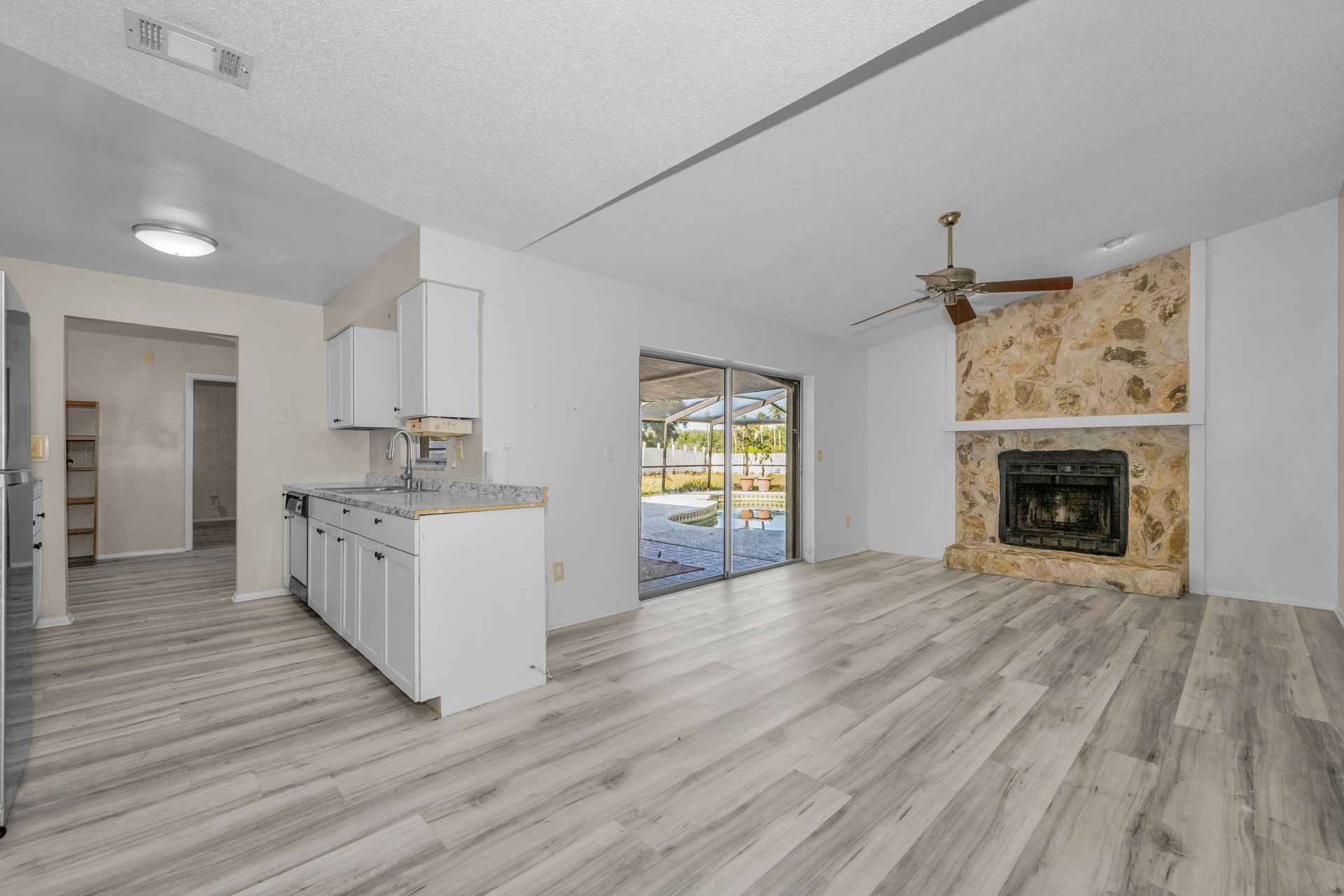 Heather Lakes ~ three bedroom, two bath home situated on an oversized .28-acre fenced lot - perfect for gardening, storage, parking your boat, RV or trailer! Step inside to an inviting open floor plan that seamlessly connects the family room, kitchen and great room, creating a warm and welcoming space for everyday living and entertaining. The primary suite offers views of the pool, a generous walk-in closet and an en suite bath with a walk-in shower. The split-bedroom layout ensures privacy with two secondary bedrooms tucked away for peace and quiet. Enjoy true Florida living in the extra-large screened lanai and pool, ideal for relaxing or hosting gatherings. Inside, you’ll love the newer vinyl flooring throughout—no carpet! Plus, an attached storage shed adds convenience. AC (2022), hot water heater (2020) and roof approximately 10 years old. Home is being sold as is. Located in an excellent area close to shopping, schools, and dining with easy access for commuting to Tampa, Orlando, Ocala, or Lakeland. Don’t miss this opportunity to make Heather Lakes your home!