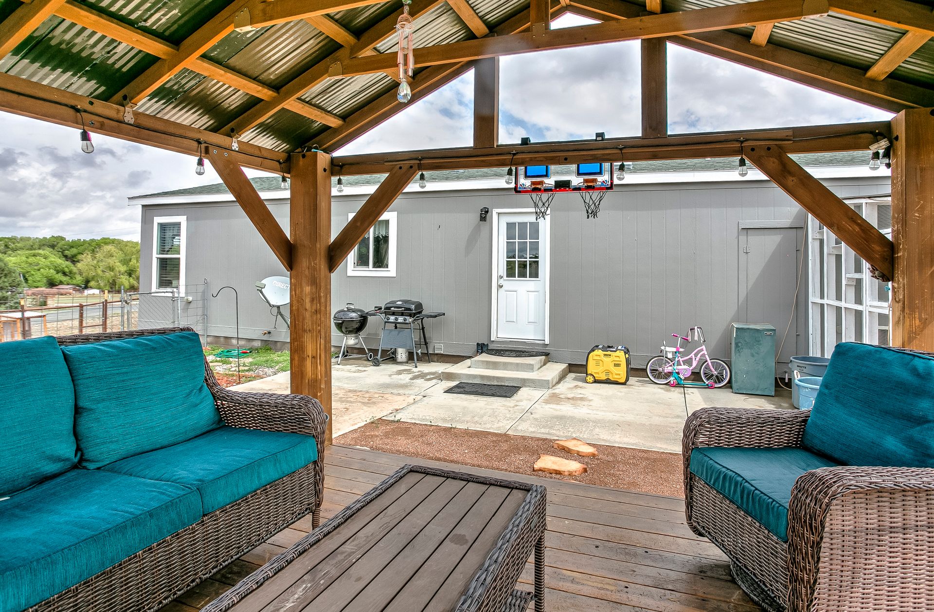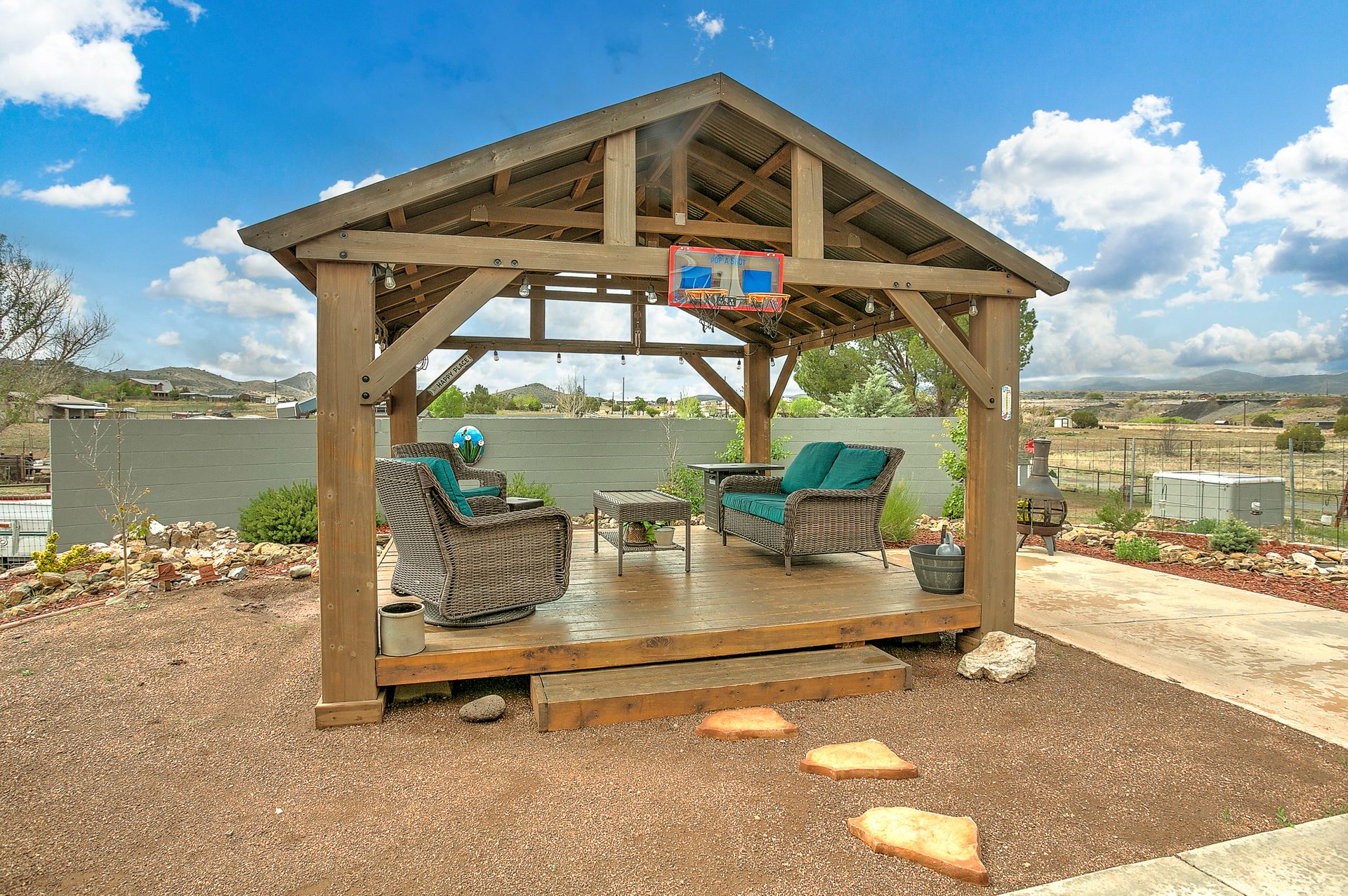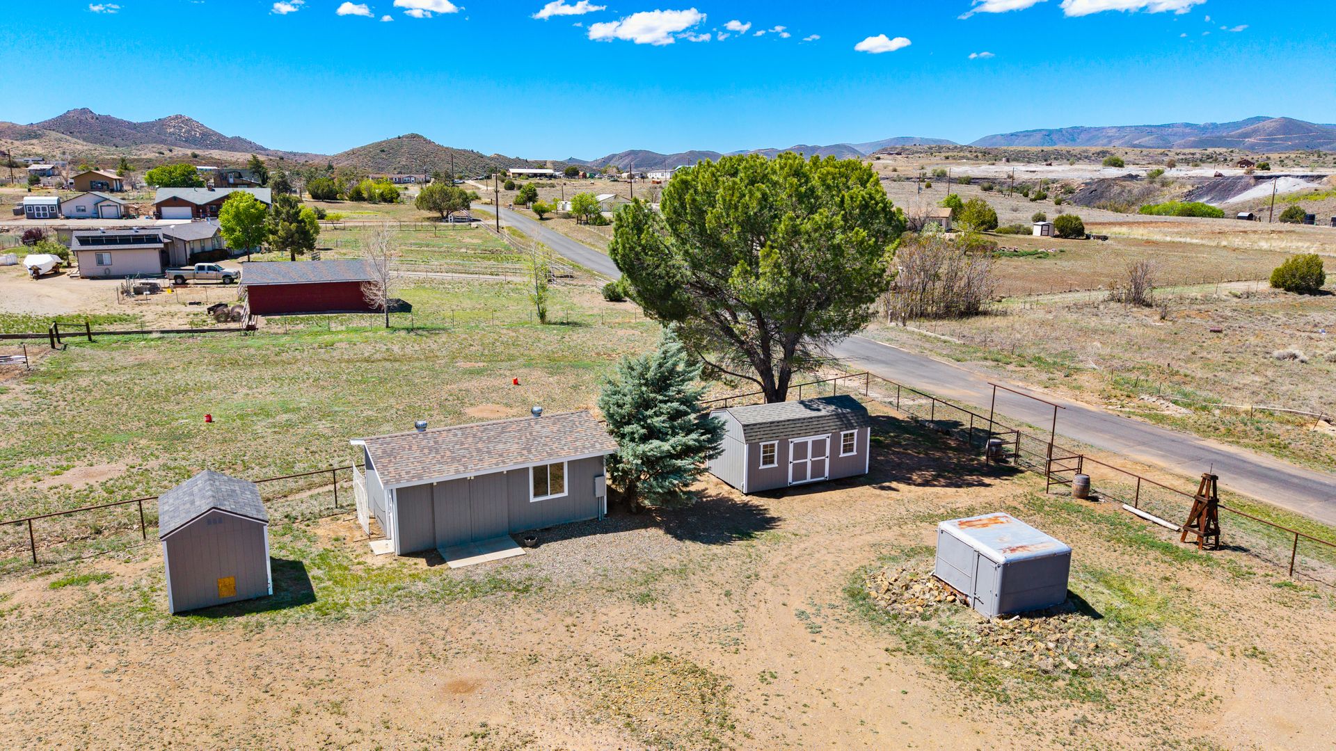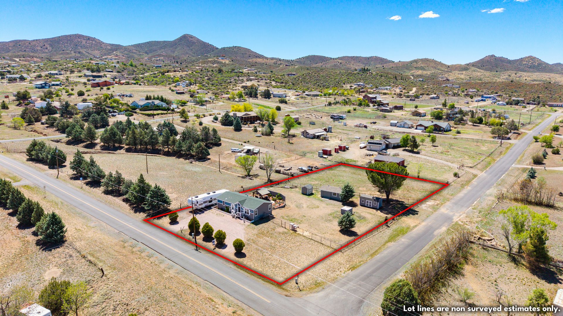 Beyond the interior, the property boasts a private gazebo covered patio. This 1.1-acre rural parcel has mountain views all around. The detached structures and RV parking add to the property's versatility and convenience. All have power to them and one could be a garage. There is secondary access off a side road.