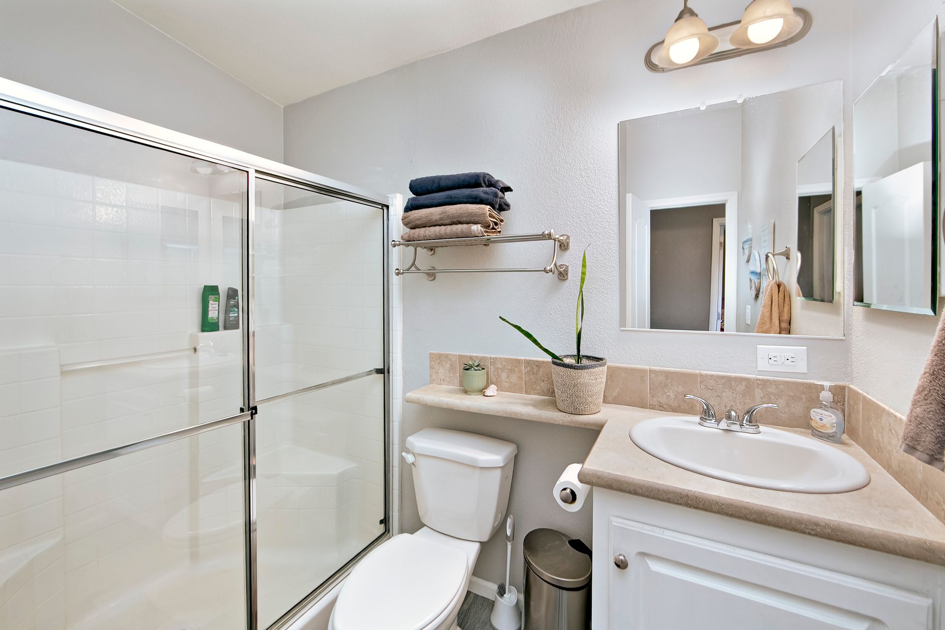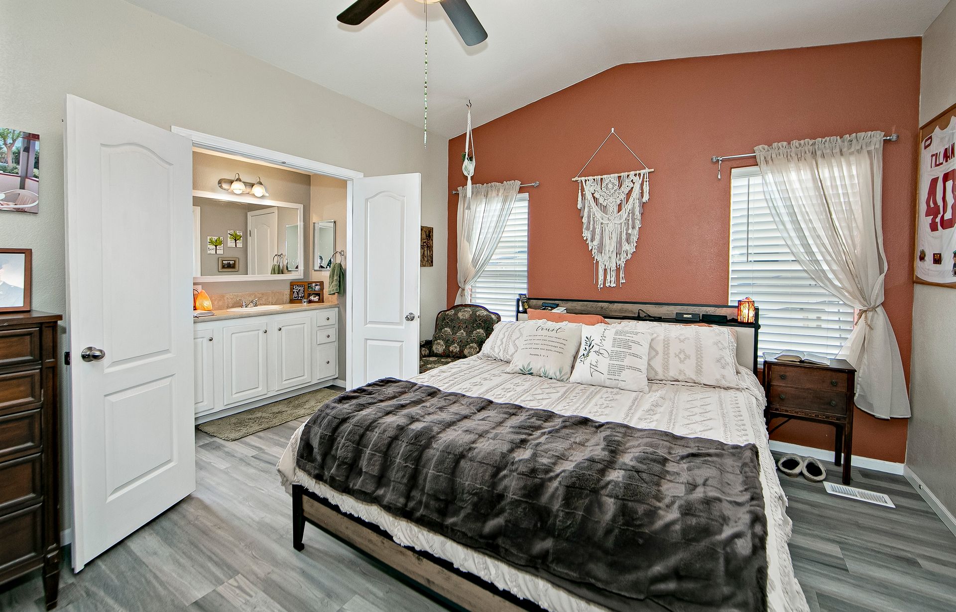 The primary bedroom and guest bedroom offer comfortable and well-designed spaces, providing privacy and relaxation.