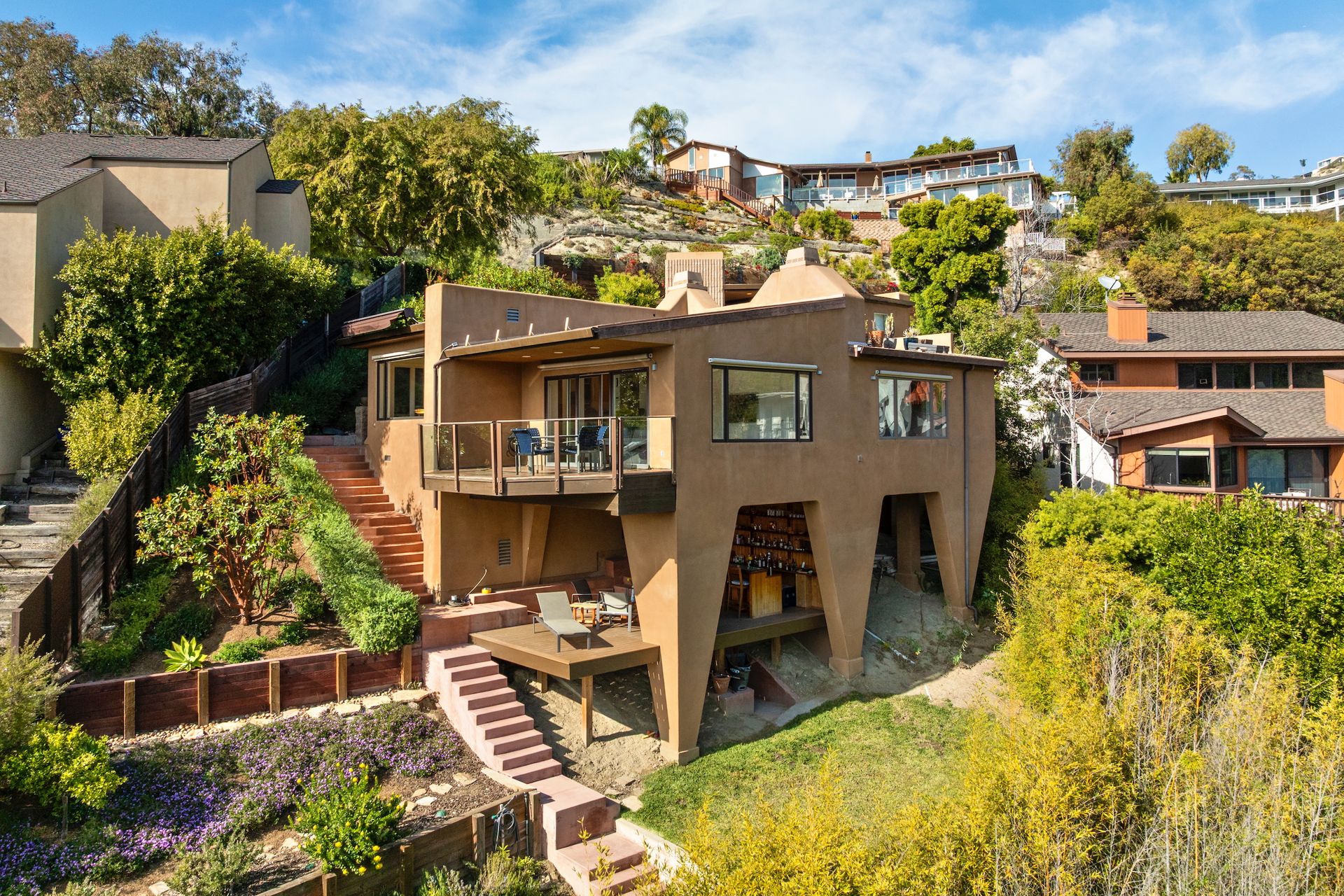 Set on a rare 1/3-acre street-to-street lot in Rancho Laguna, the home is perched on 24 deep caissons drilled into bedrock — a foundation as enduring as its design. The two-bedroom, two-bath layout lives large with its open, airy flow, dramatic 16-foot ceilings, and floor-to-ceiling views of the ocean, canyon, and hillsides. The roof was engineered for a potential second level, with ADU possibilities for those envisioning more.