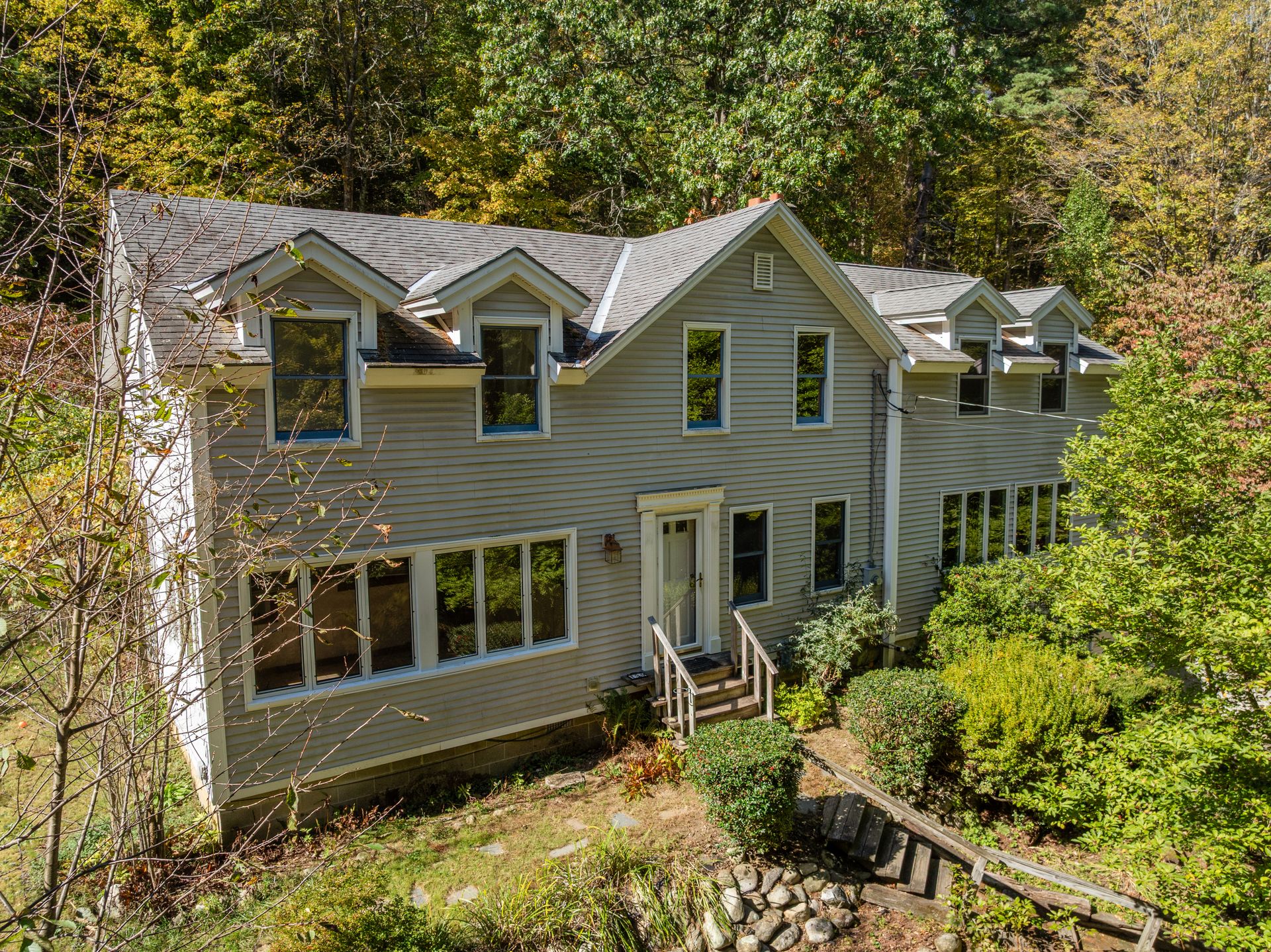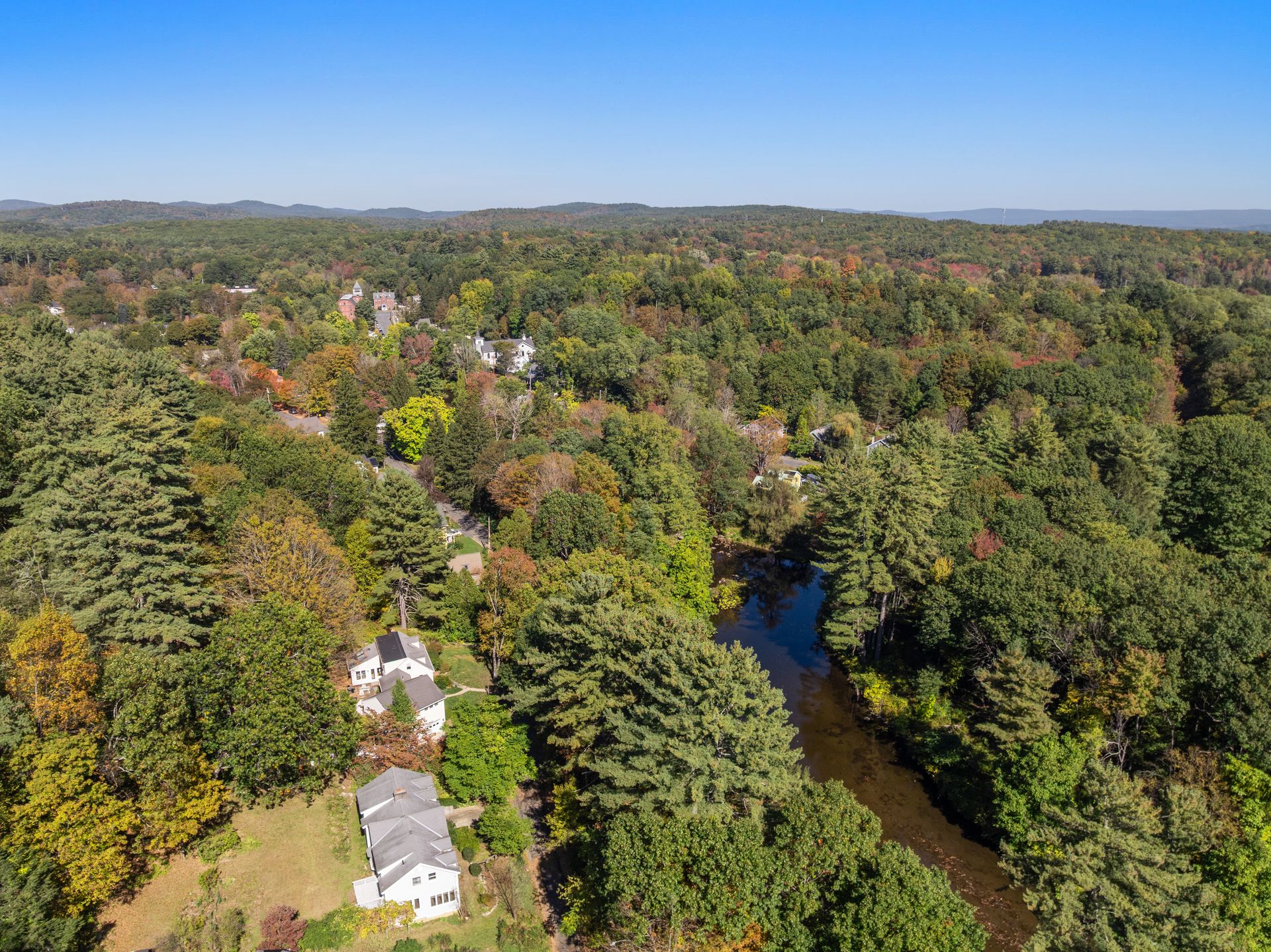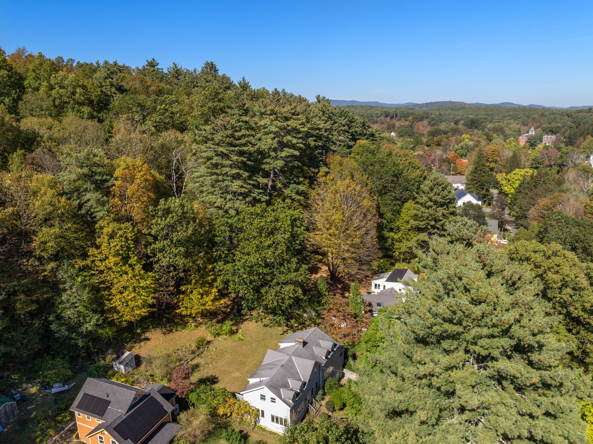 Additional highlights include updated electric, three-zone forced hot water gas and electric heat, new roof (2024), well-maintained boiler and newer water heater (2018), and a high-ceiling two-bay garage with newer doors and extra-thick interior wall. The finished lower level offers a 500 square foot family room with gas stove and ample storage. Abutting conservation land with private rear access, this one-of-a-kind property offers a rare piece of Northampton/ Leeds history.