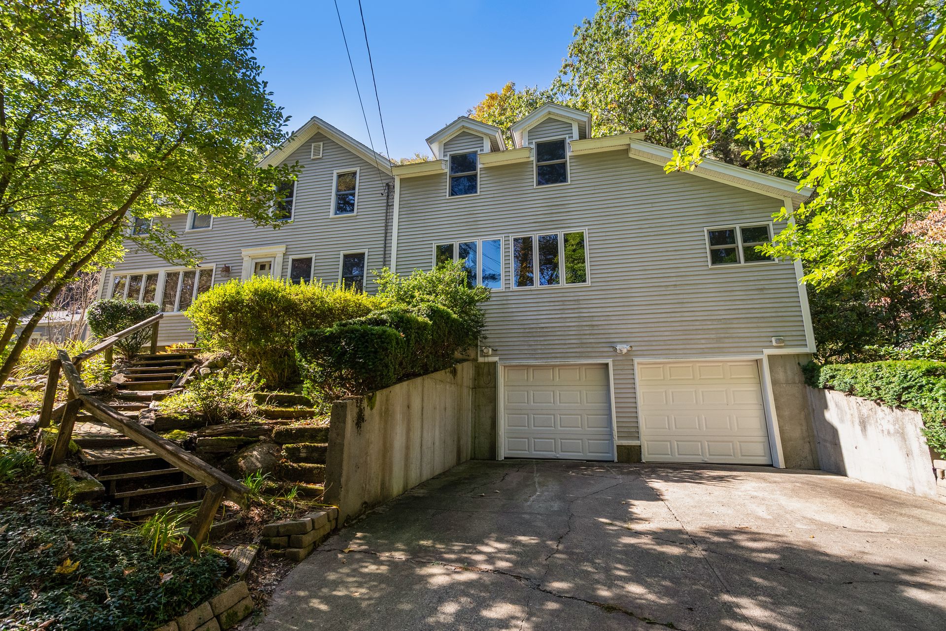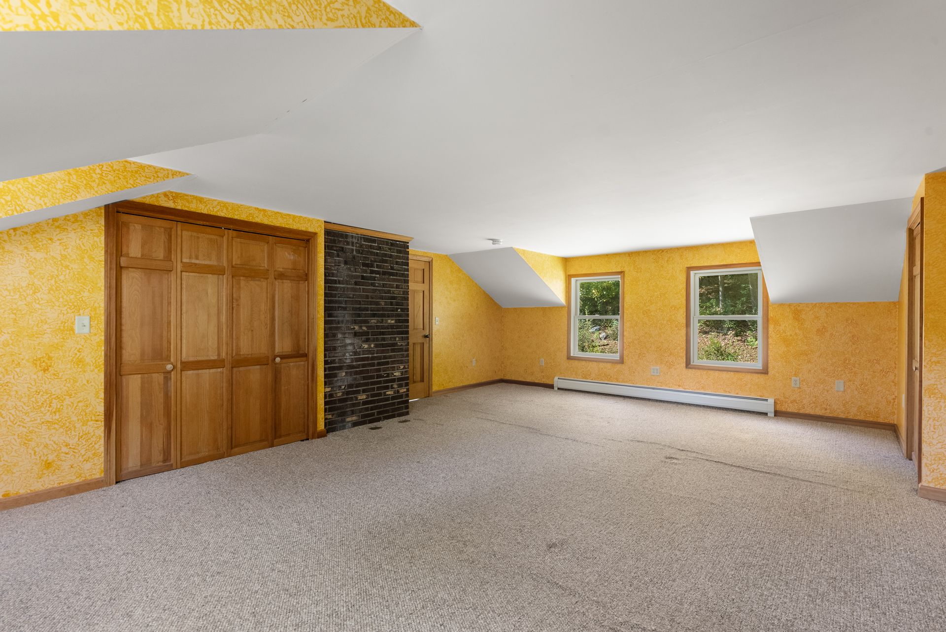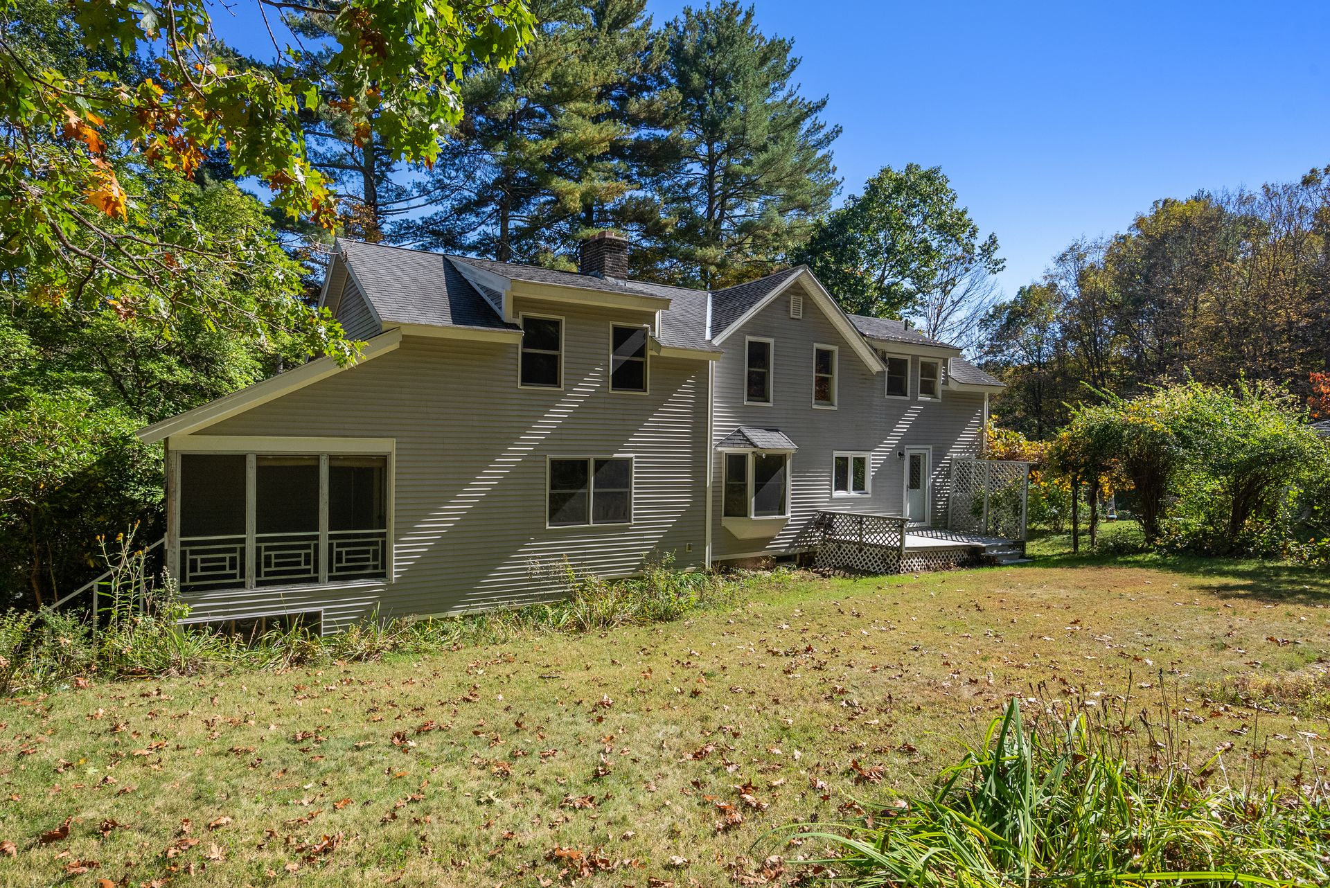 Additional highlights include updated electric, three-zone forced hot water gas and electric heat, new roof (2024), well-maintained boiler and newer water heater (2018), and a high-ceiling two-bay garage with newer doors and extra-thick interior wall. The finished lower level offers a 500 square foot family room with gas stove and ample storage. Abutting conservation land with private rear access, this one-of-a-kind property offers a rare piece of Northampton/ Leeds history.