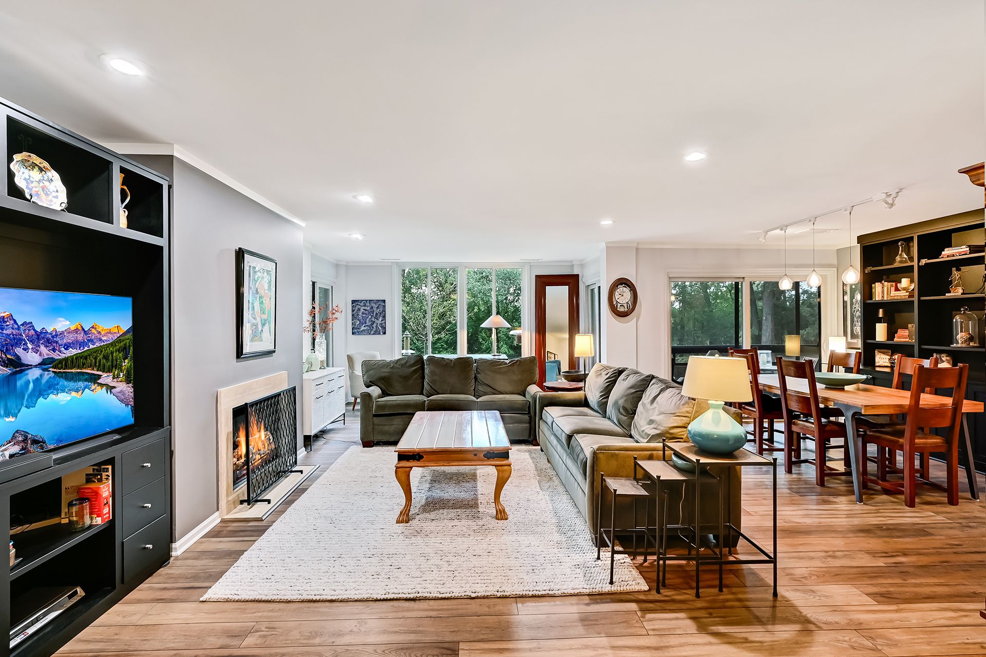 This exceptional Graue Mill condo offers five-star living with two spacious bedrooms, two modern baths, two screened balconies, and two dedicated parking spaces. The residence is designed to meet every need, equipped with premium features throughout. The living and dining rooms feature a cozy fireplace, custom cabinetry, and stunning views that bring nature into the home. The open floor plan allows for seamless indoor and outdoor entertaining, with two screened balconies. The modernized kitchen boasts custom birch cabinetry, sleek stainless steel appliances, and elegant granite countertops. Every appliance is state-of-the-art, including a double oven and a brand new dishwasher, providing style and functionality for the home chef. Located adjacent to the kitchen and one of the balconies, the office offers a quiet space. The primary suite has been reconfigured to include a spacious walk-in closet, complemented by three more full-sized closets. The second bedroom serves as a home office, complete with built-in cabinetry, bookshelves, drawers, and filing cabinets-ideal for remote work. Both bathrooms have undergone extensive renovations to reflect high standards of comfort and style. Luxury vinyl plank flooring graces the living areas, while plush carpeting provides comfort in the bedrooms. The home is illuminated by beautiful light fixtures and recessed lighting. Most doors have been replaced with Shaker-style five-panel doors, complemented by stylish hardware. Brand new windows, a cost-effective furnace and an efficient air conditioning system ensure comfort and energy savings. Attention to detail is evident throughout, with no aspect of the home overlooked. Graue Mill amenities include a 24/7 manned gatehouse, high-speed internet, Infinity cable, a clubhouse, pickleball courts, and an outdoor pool. The garage spots are Lower A #69 and #70 e storage locker is located at Upper A #36. Tour this magnificent condo today and experience luxury living at Graue Mill.