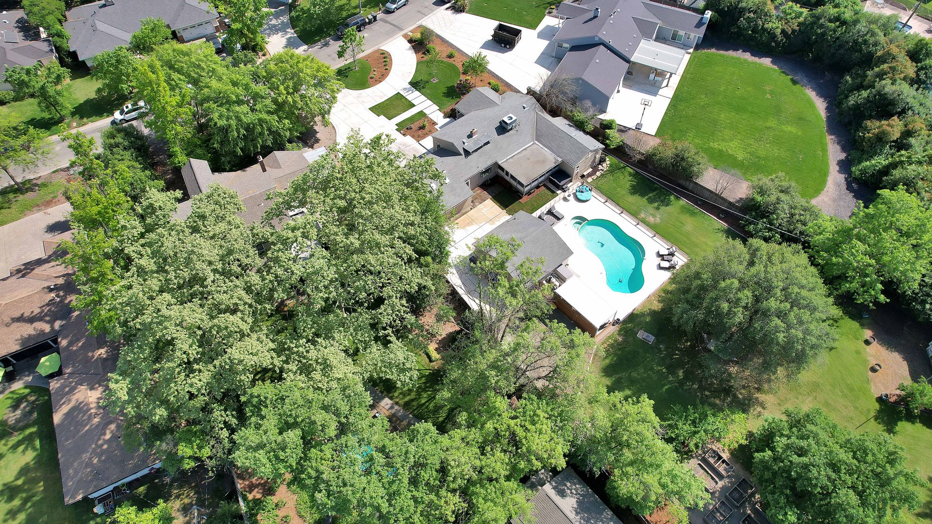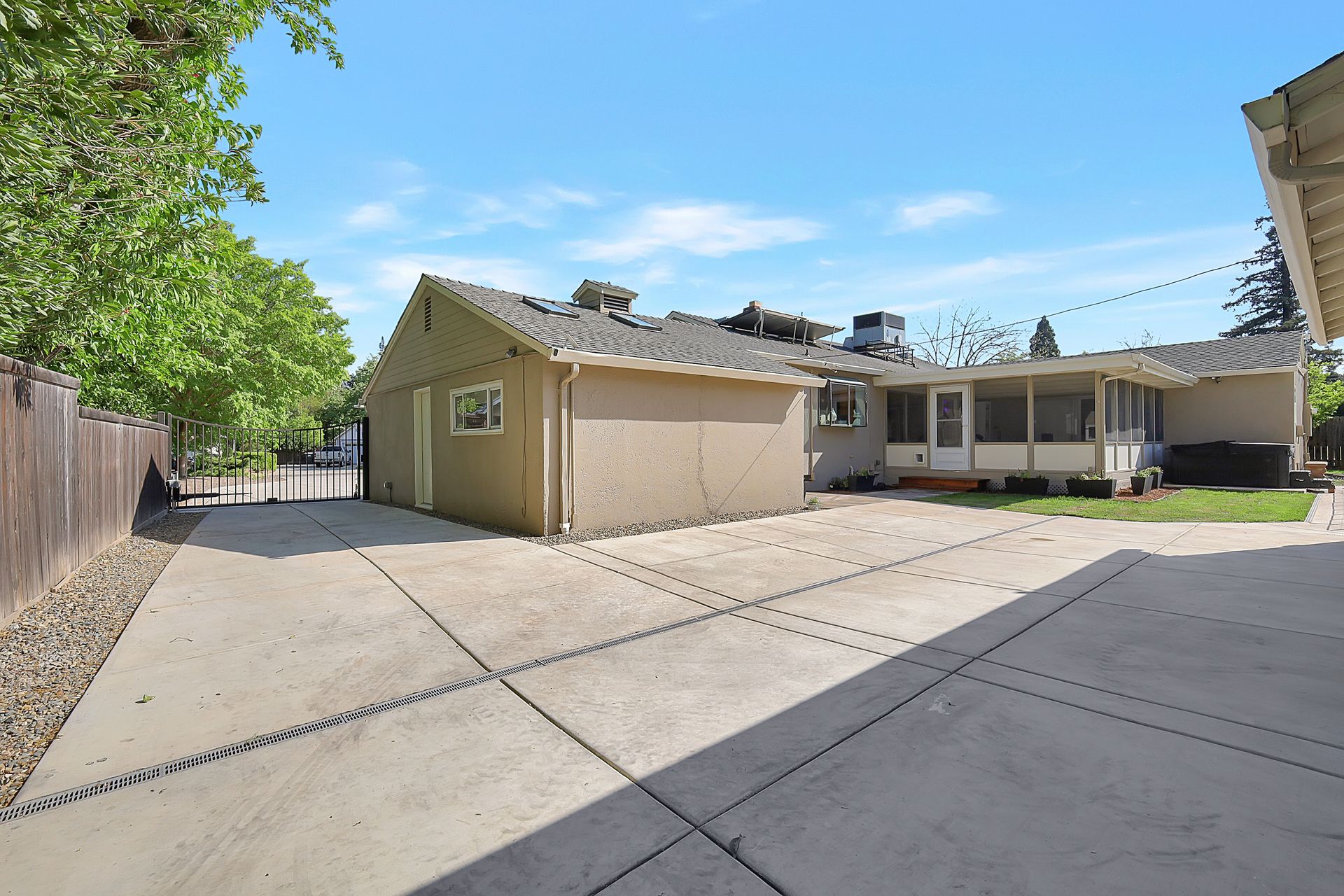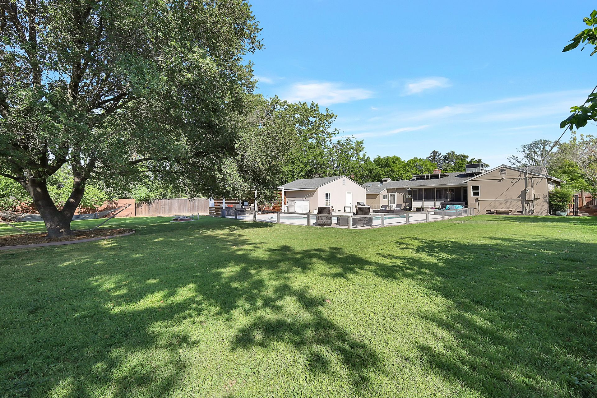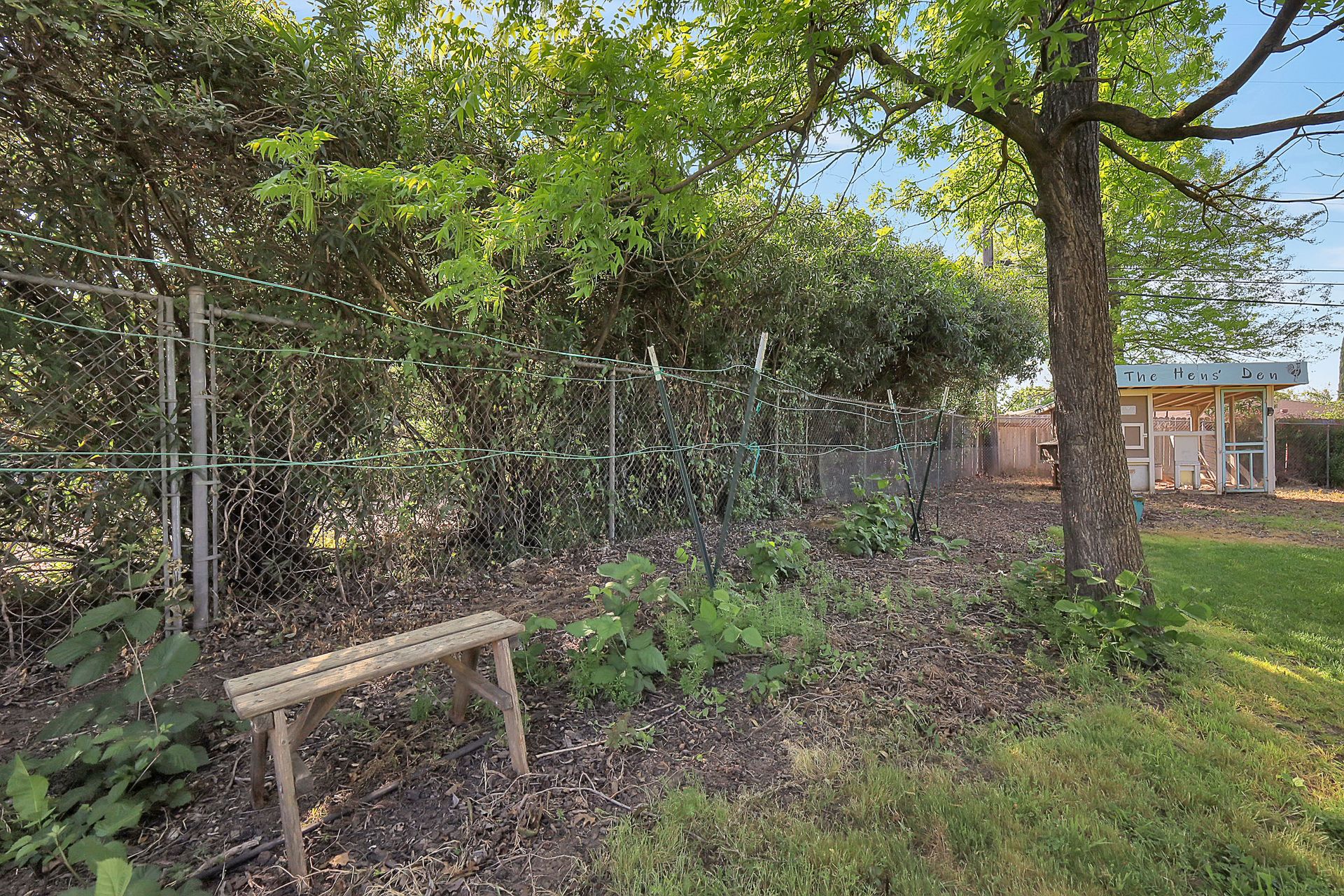 Welcome to urban homesteading in Arden Park on approximately 0.76 acres, one of the larger parcels in the neighborhood, tucked on a peaceful interior street. This property features four bedrooms and three full bathrooms across approximately 2,206 square feet, including a primary suite and a separate junior primary suite with an attached bath, ideal for guests or a secondary livable space. Interior features include white oak hardwood flooring, a classic and charming living room with a wood-burning fireplace and built-in cabinetry, and a kitchen with stainless steel appliances, Corian countertops, and ample workspace. The primary suite is newly remodeled with heated tile floors, a soaking tub, and a separate shower, and all bathrooms have been recently updated. A screened-in porch off the dining area offers additional functional space for living and dining, not included in the square footage, with direct access to the backyard and pool. The grounds offer a park-like setting with a pool and newly installed decking, 14 garden boxes, 21 fruit trees and vines, RV parking, a detached two-car garage, gated rear access, and generous front parking. The lot provides space ideal for additional improvements including an ADU or sport court, subject to buyer verification. Arden Park is known for its strong sense of community, neighborhood parks, recreation programs, and nearby highly rated schools.